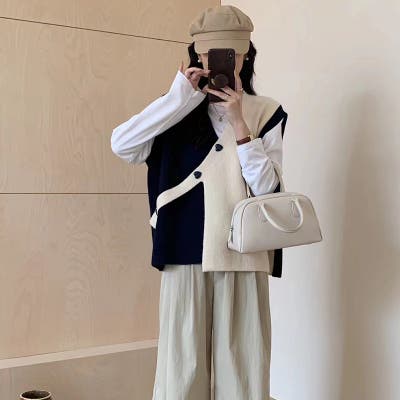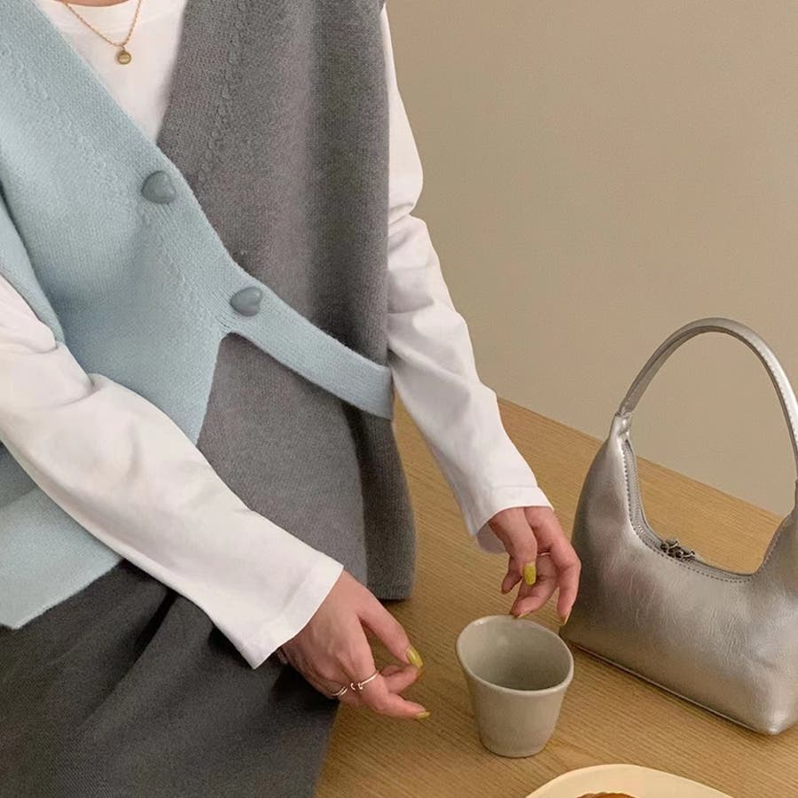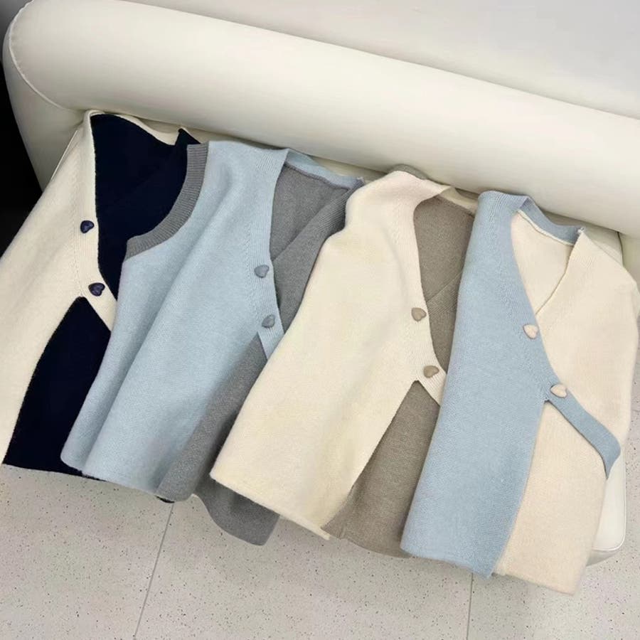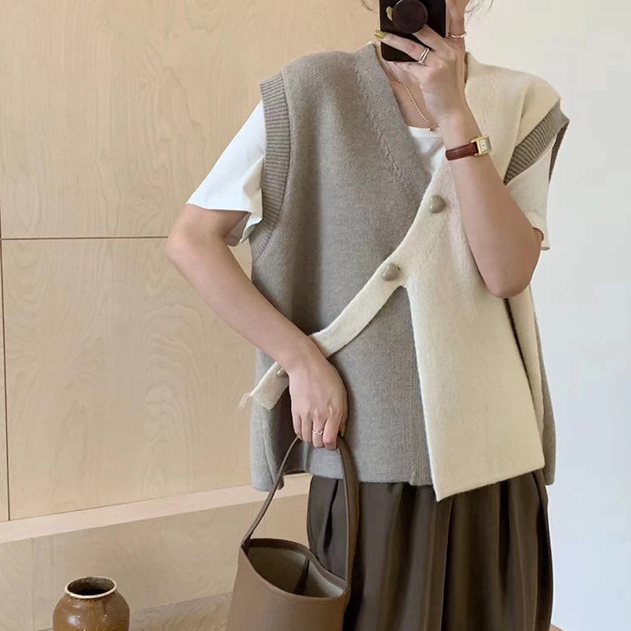【SHOPLIST限定】大人っぽい斜めボタンVネックベストカーディガン