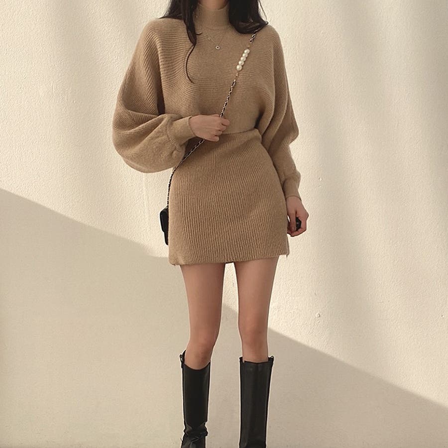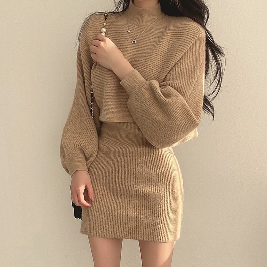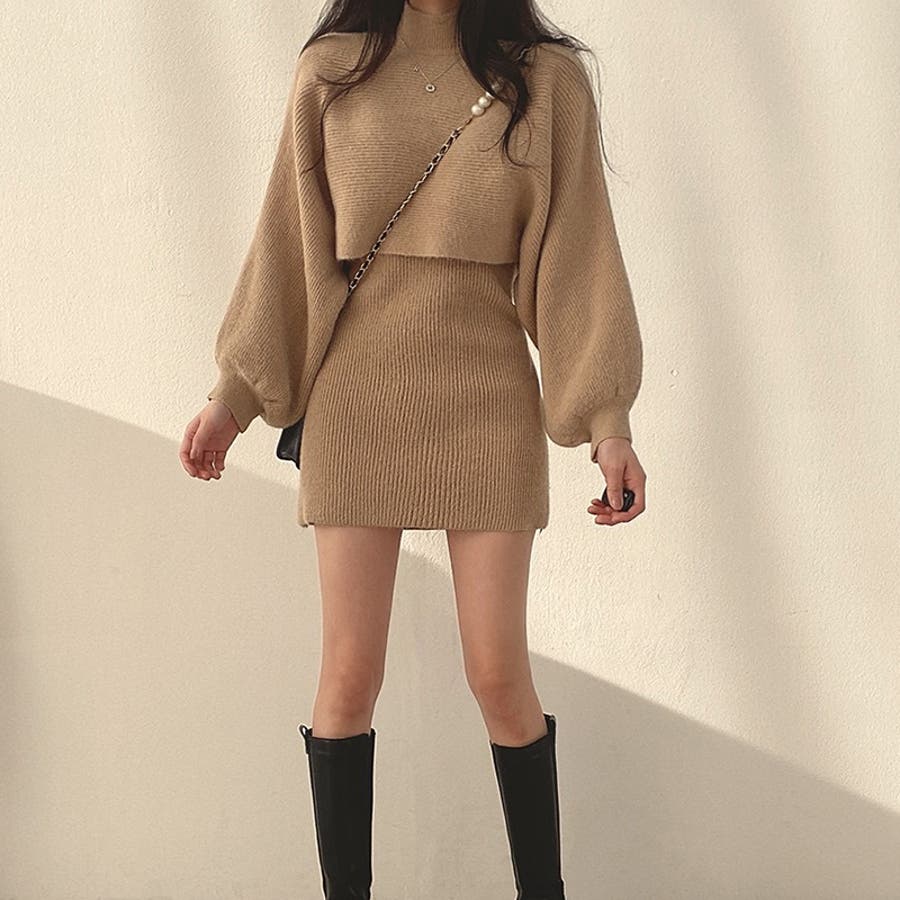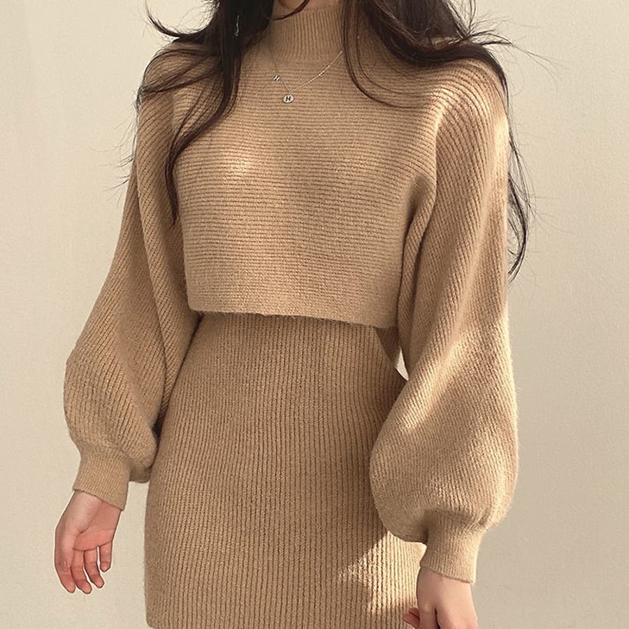 【SHOPLIST限定】ランタンスリーブのニットセーターとショート丈のノースリー…