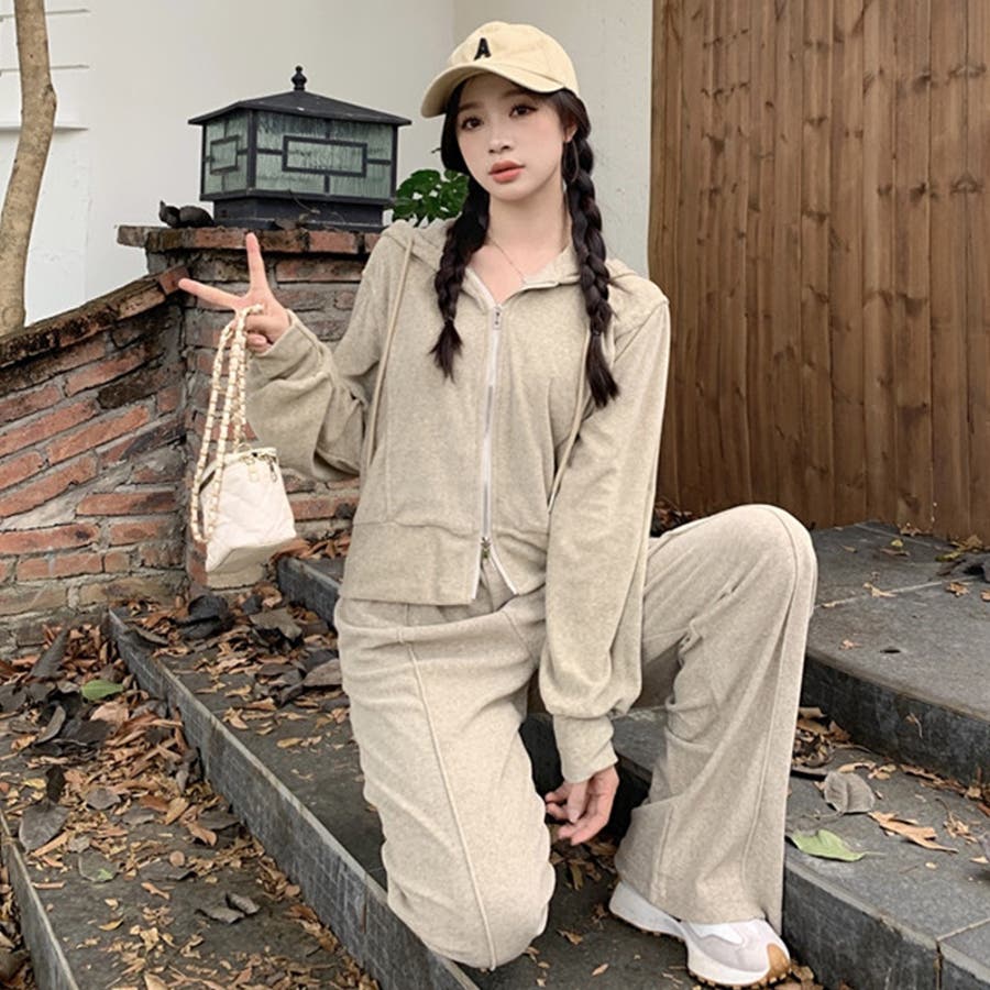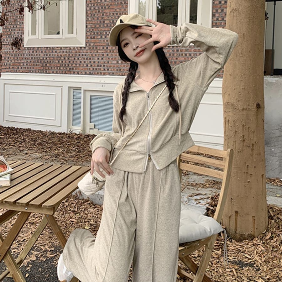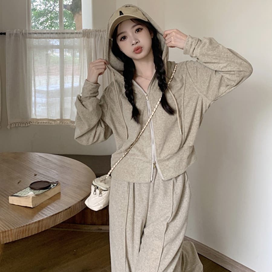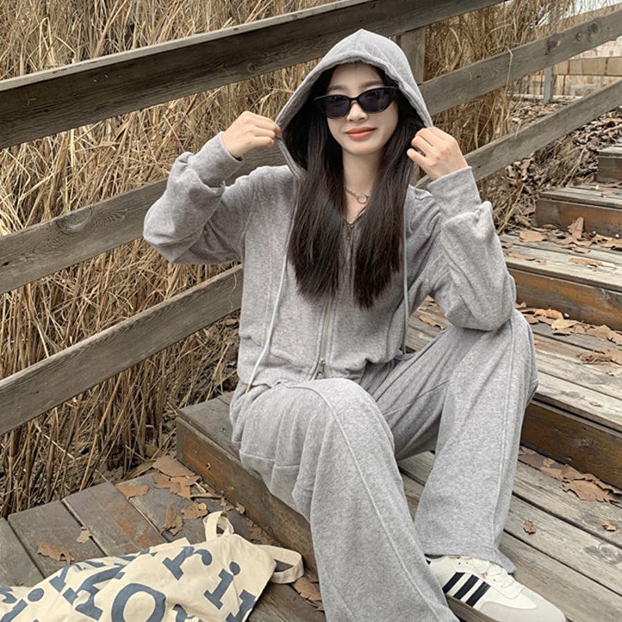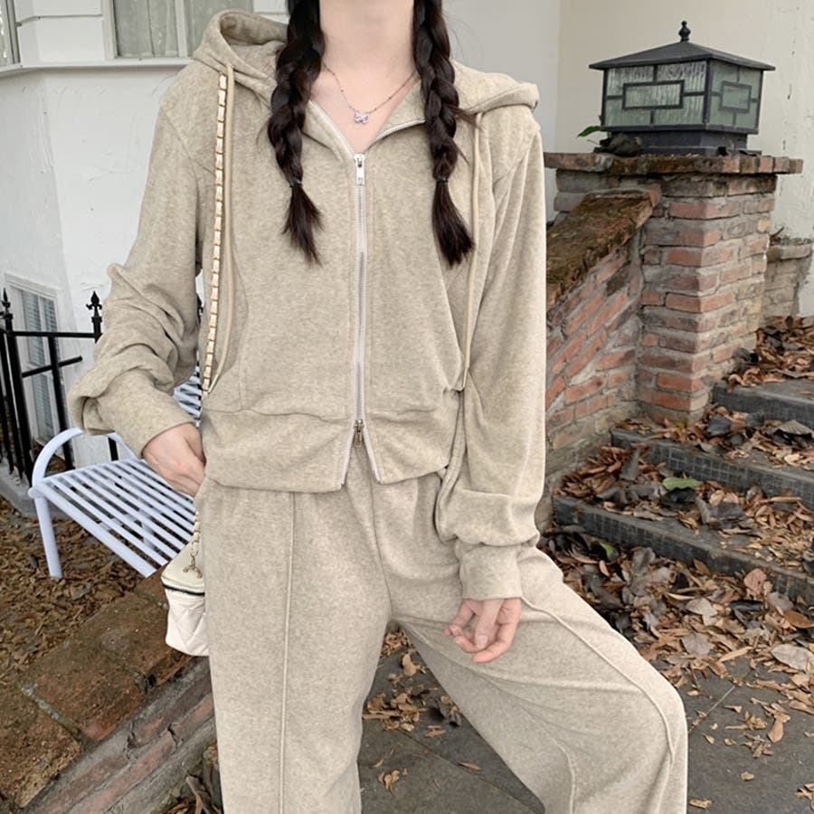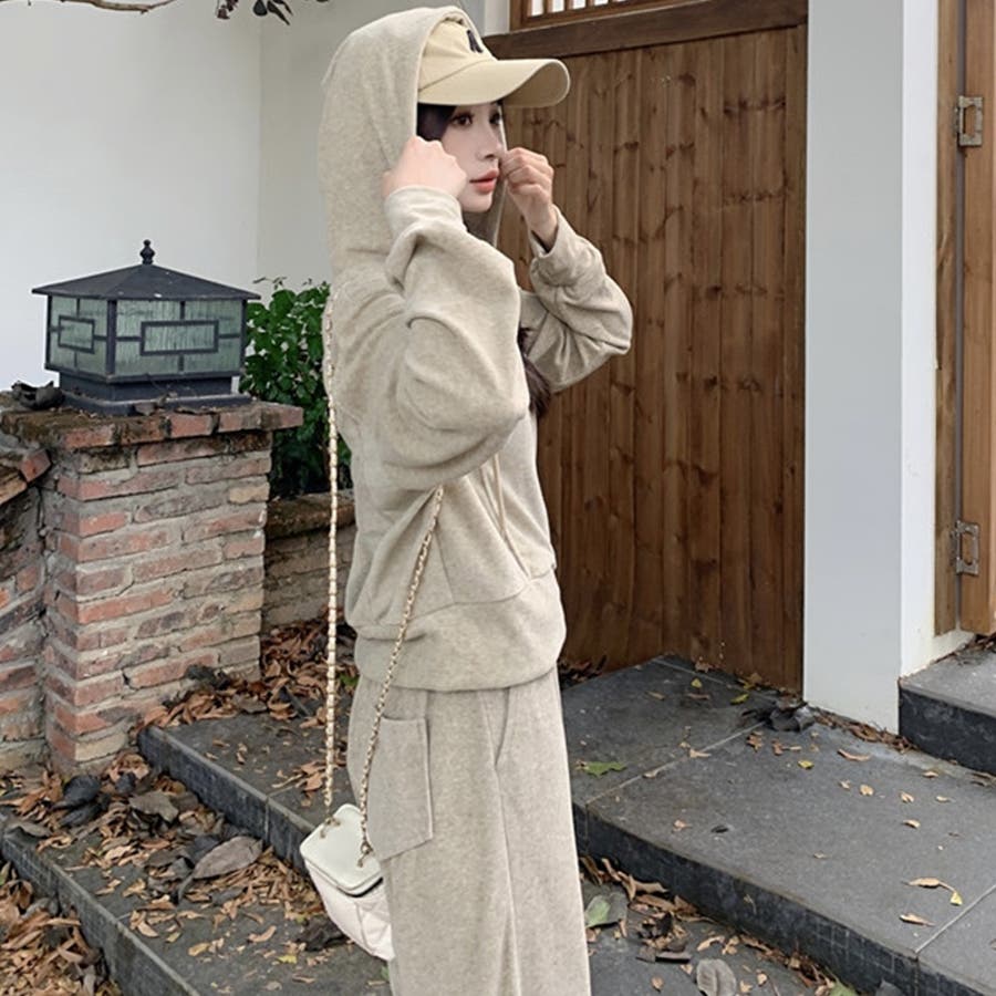 【SHOPLIST限定】ベルベット素材のカジュアルなフード付きスウェットセット
