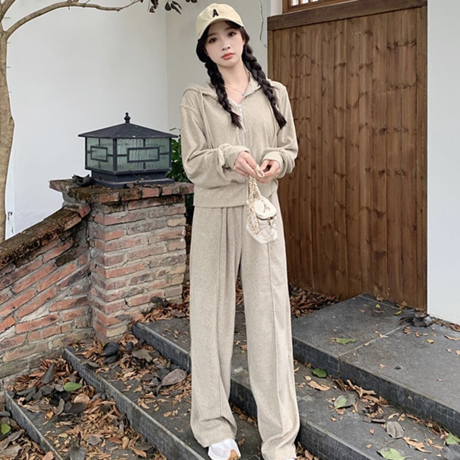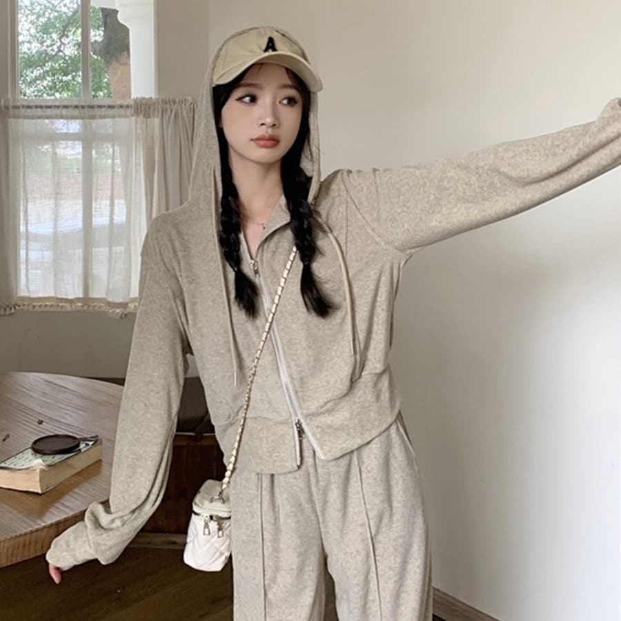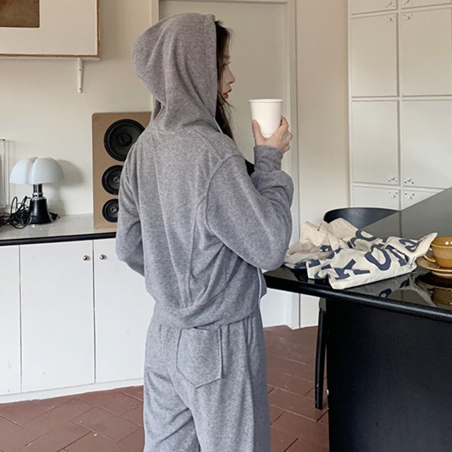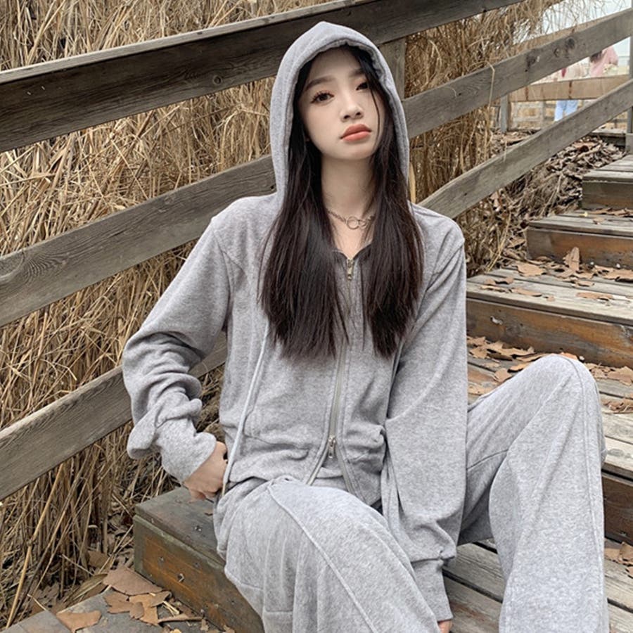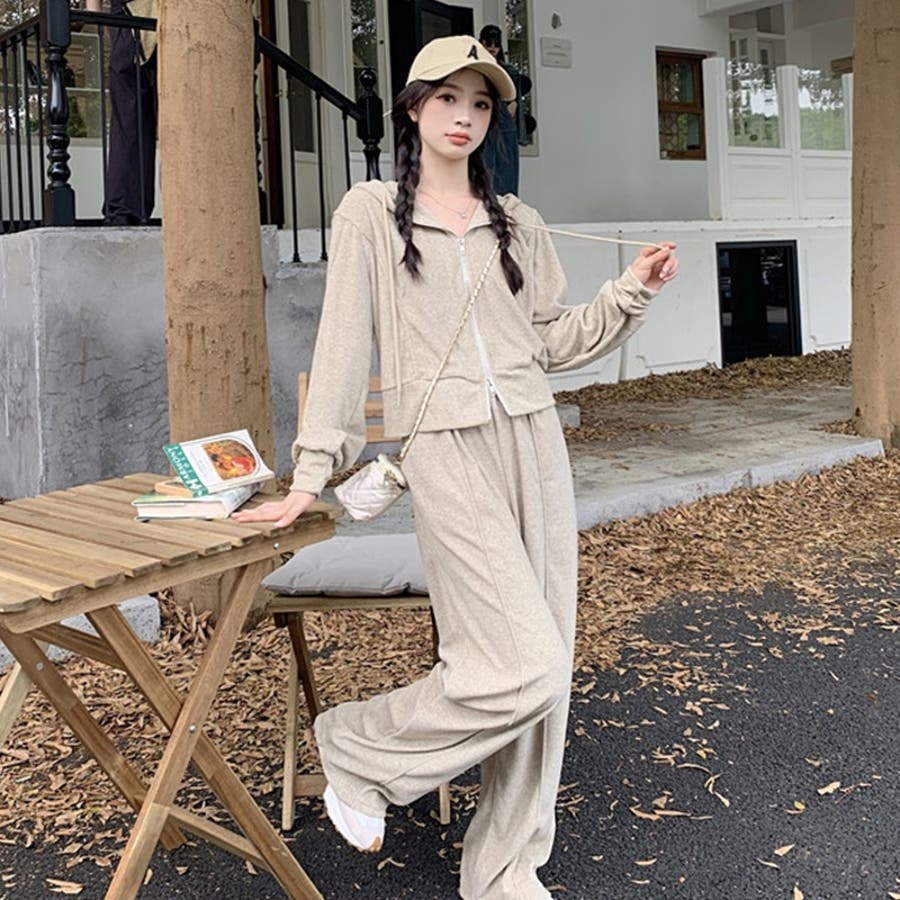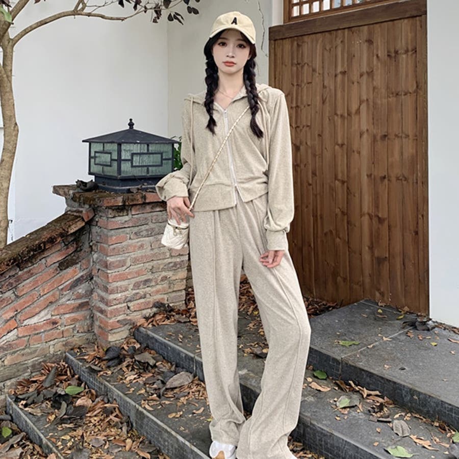 【SHOPLIST限定】ベルベット素材のカジュアルなフード付きスウェットセット