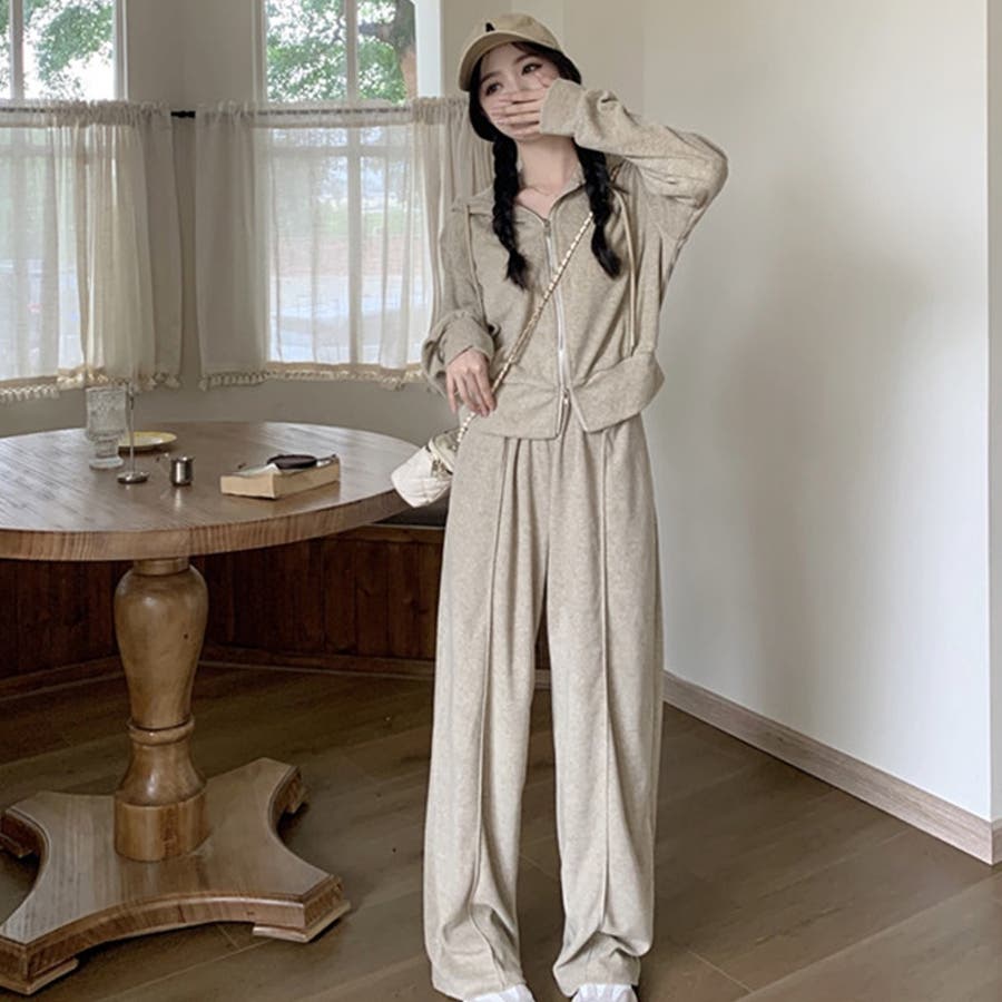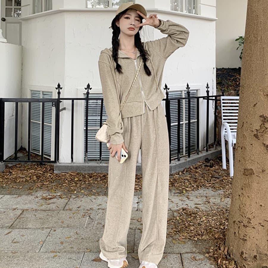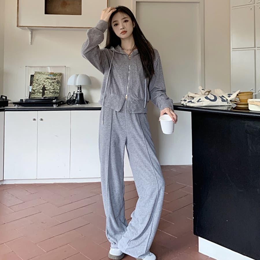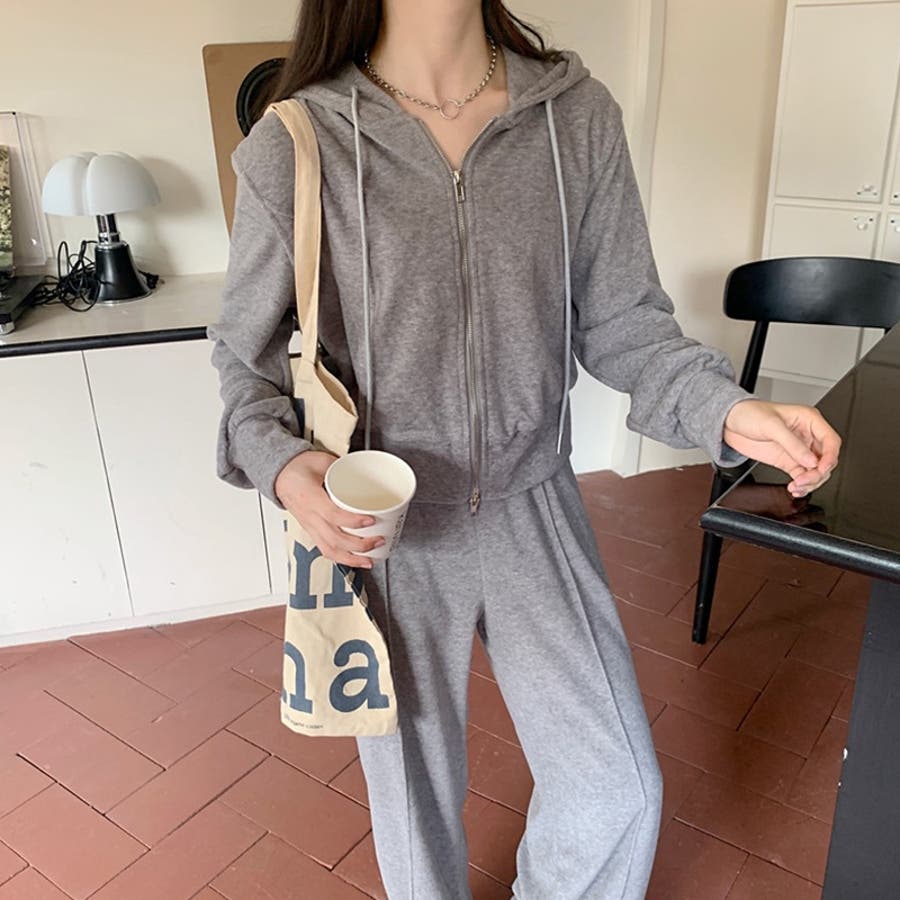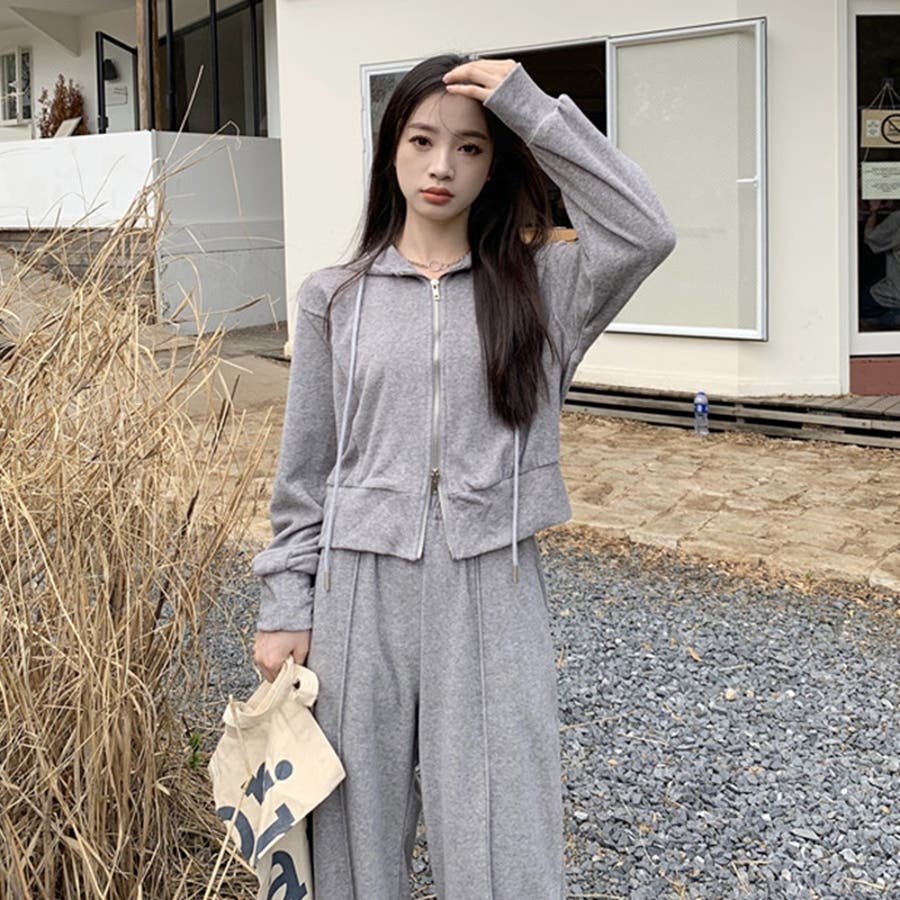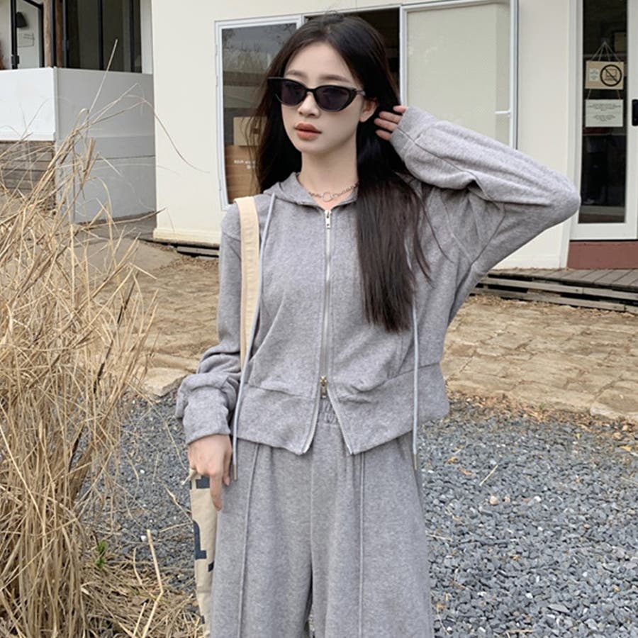 【SHOPLIST限定】ベルベット素材のカジュアルなフード付きスウェットセット