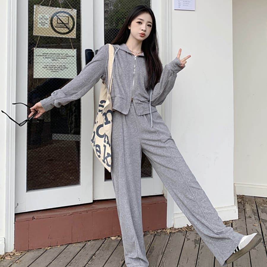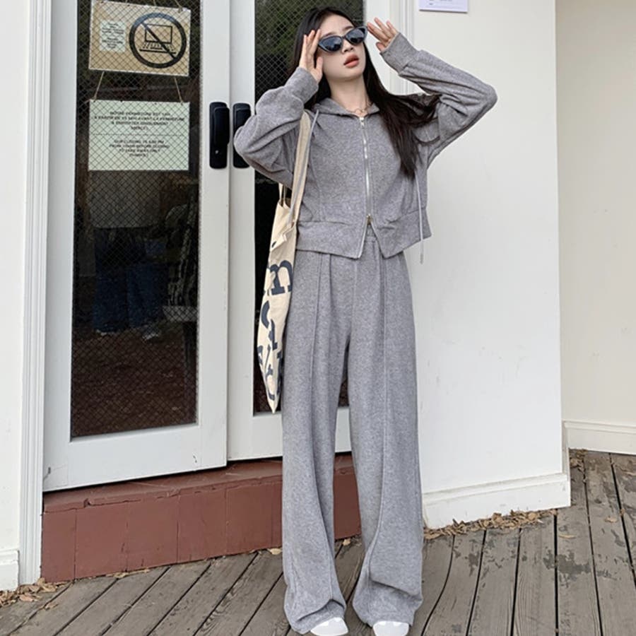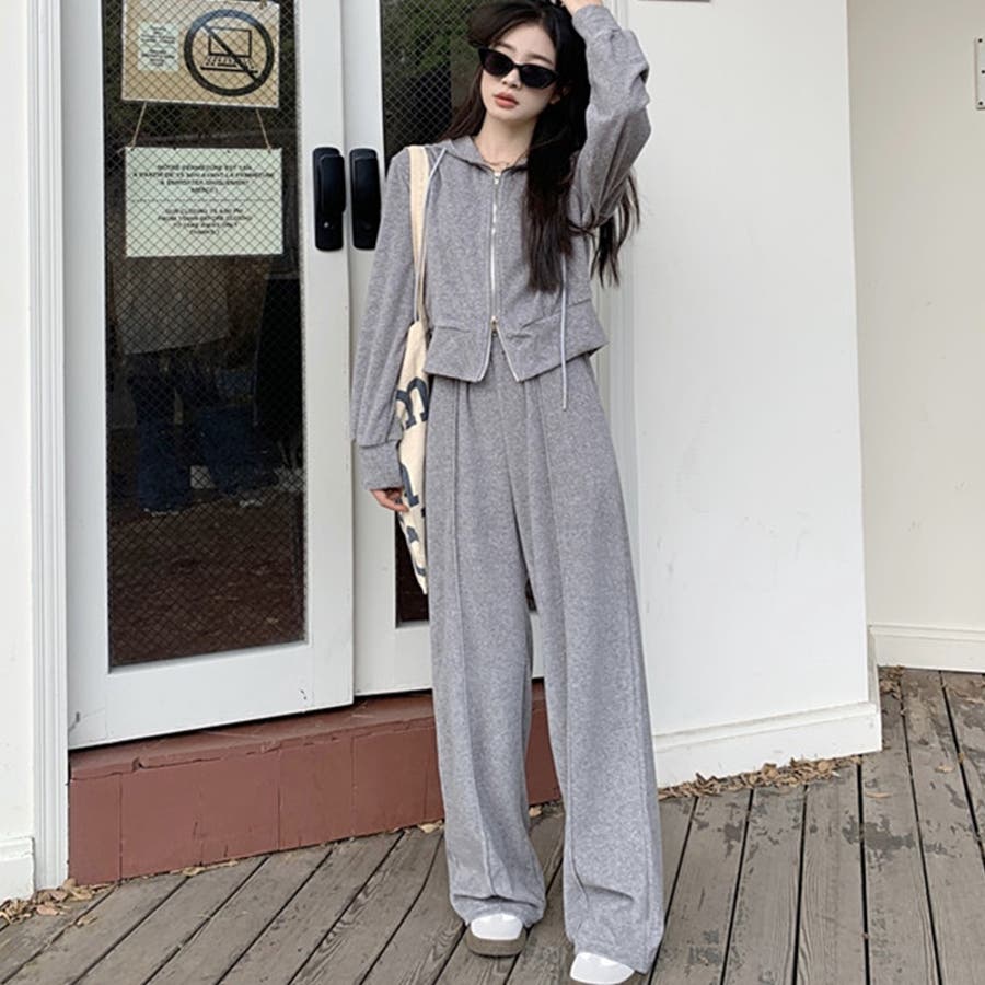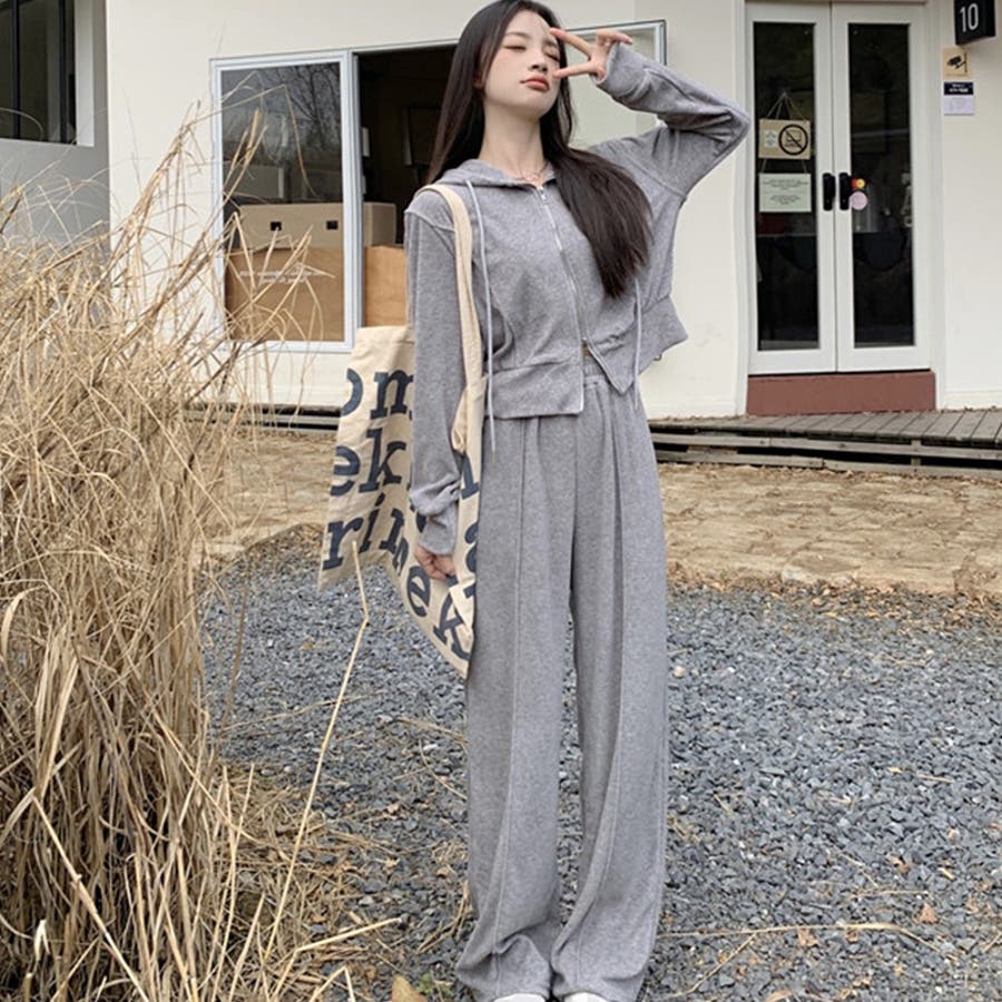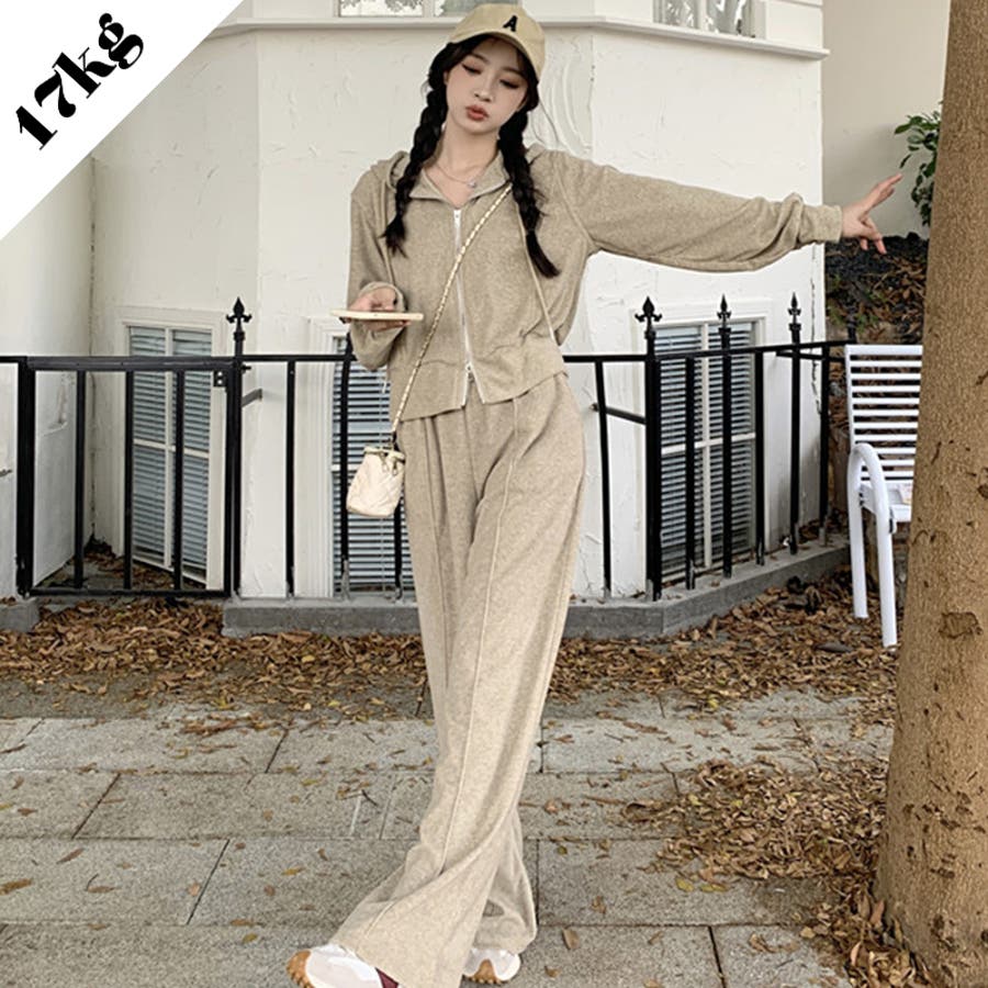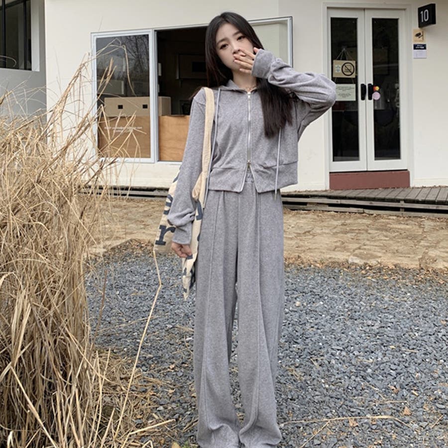 【SHOPLIST限定】ベルベット素材のカジュアルなフード付きスウェットセット