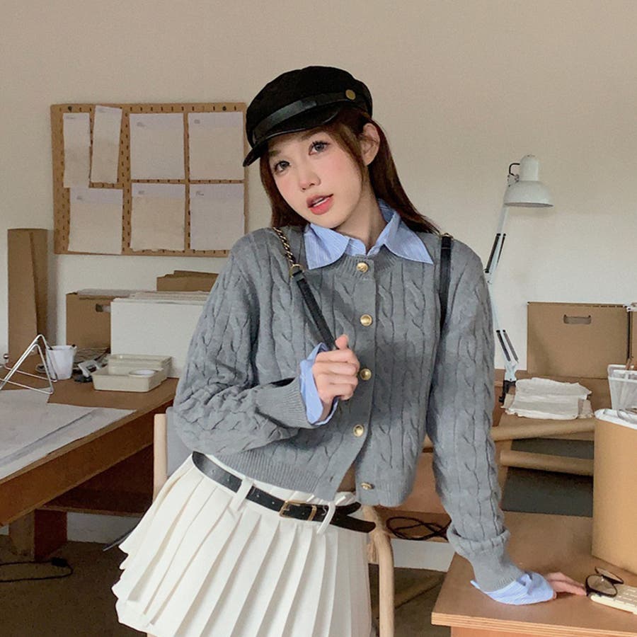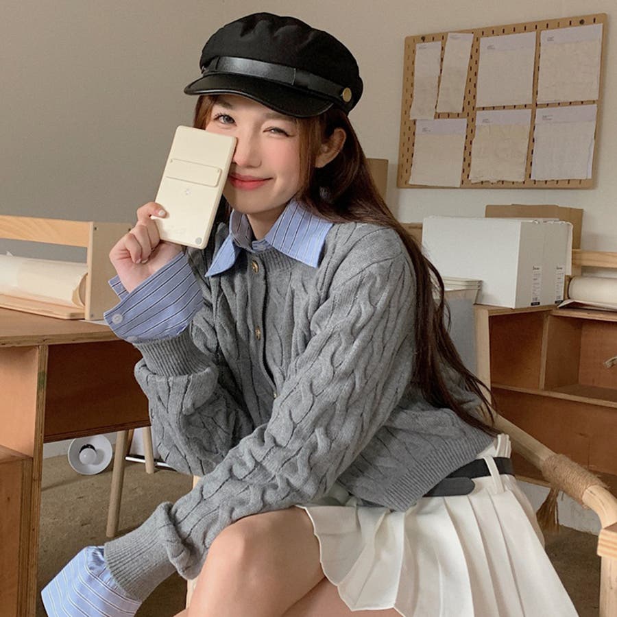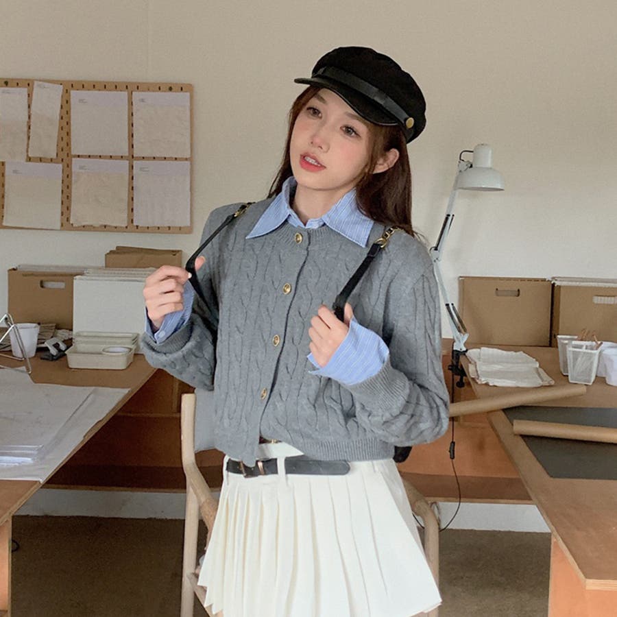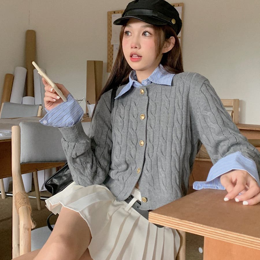 ブルーのシャツにグレーのカーディガンがぴったりで、とってもかわいいです!トレンド感も出てとってもおすすめです!