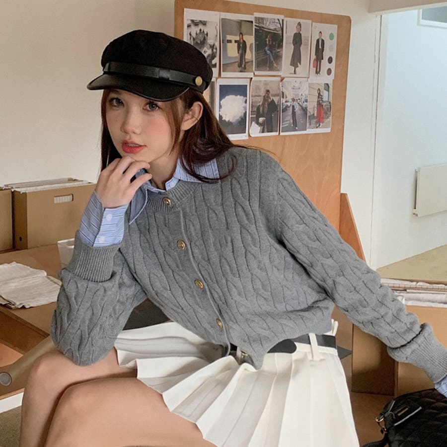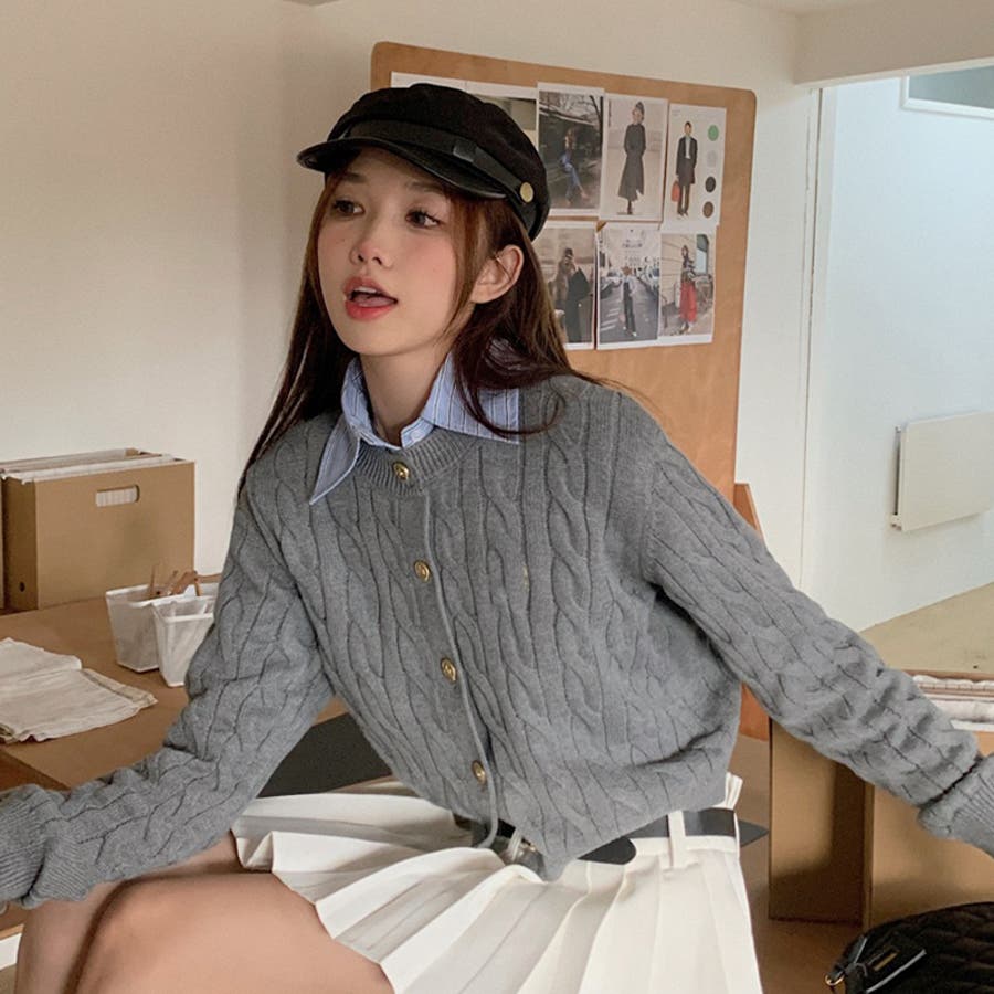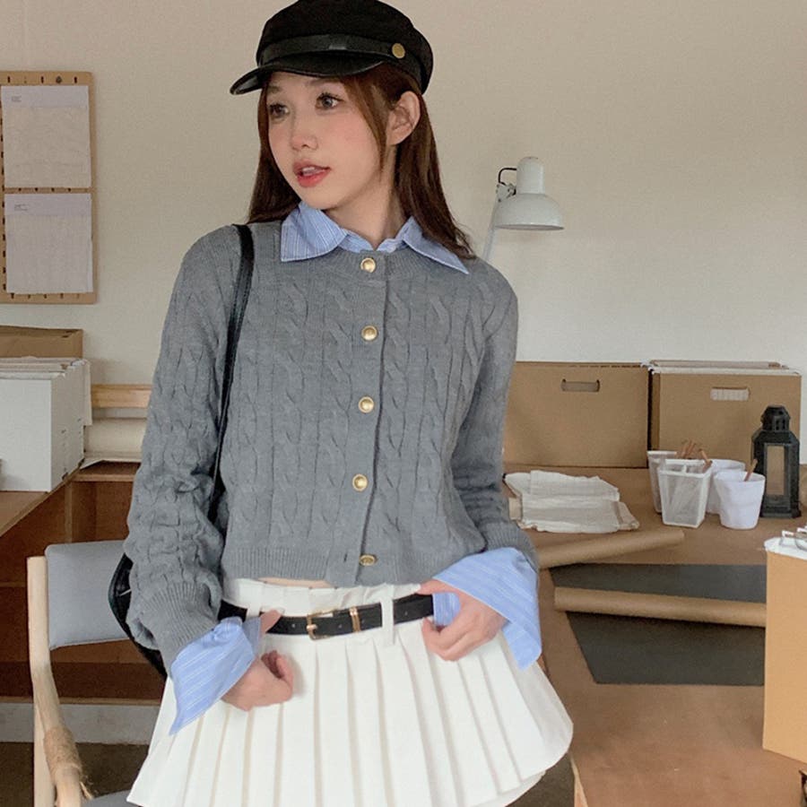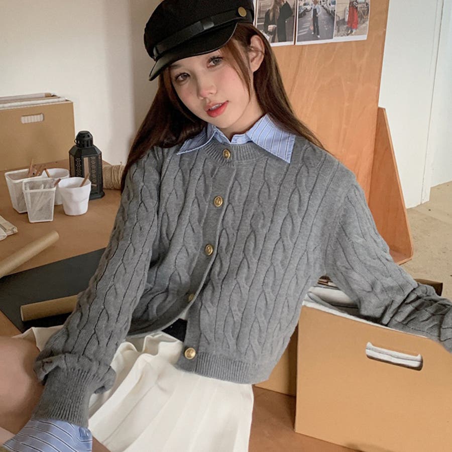 ブルーのシャツにグレーのカーディガンがぴったりで、とってもかわいいです!トレンド感も出てとってもおすすめです!