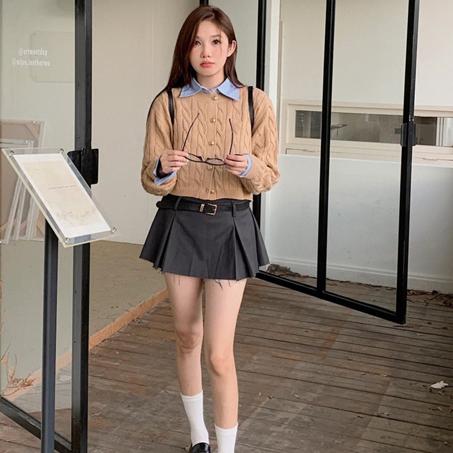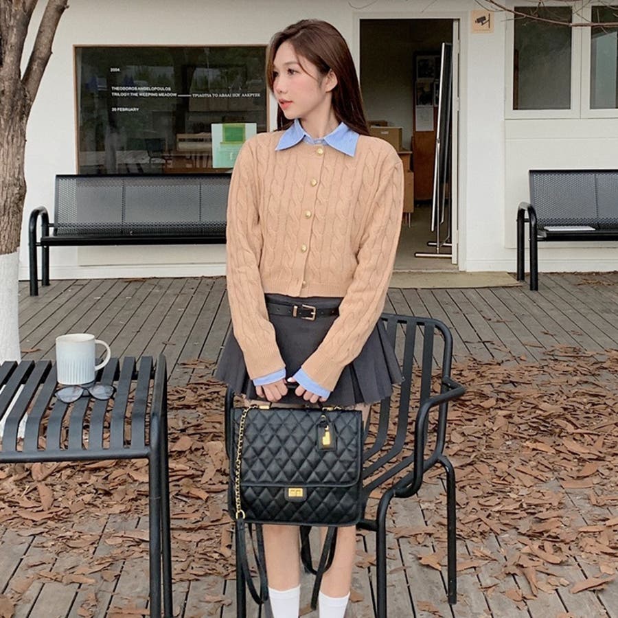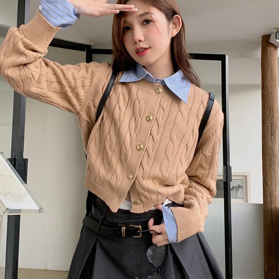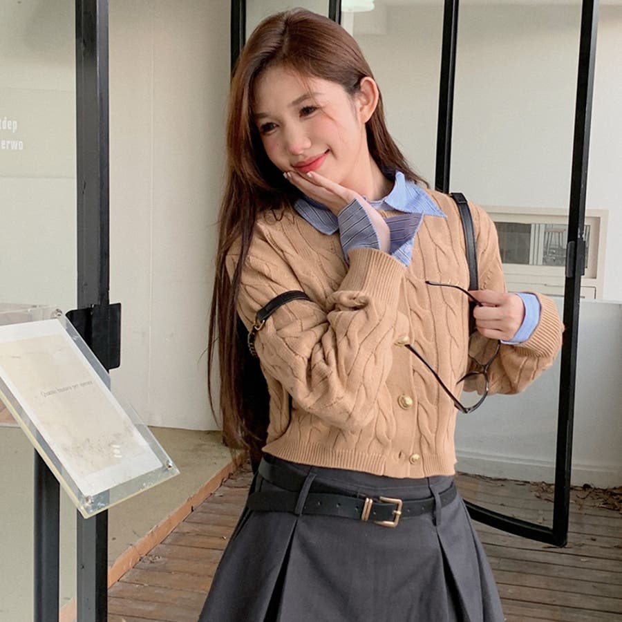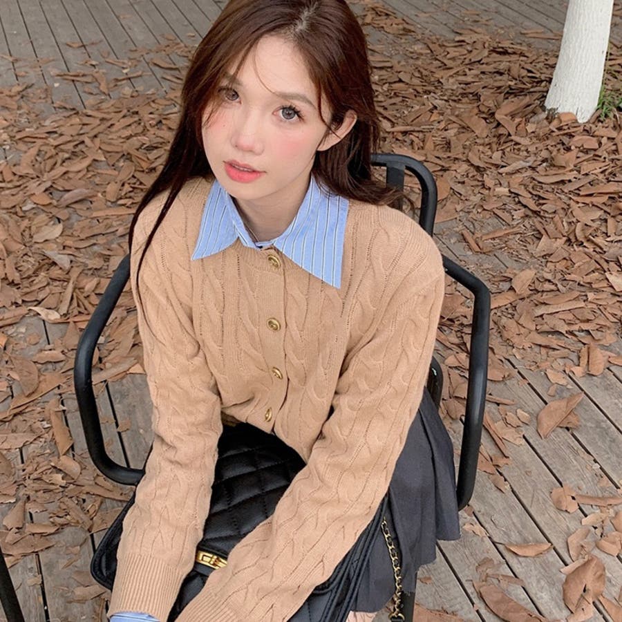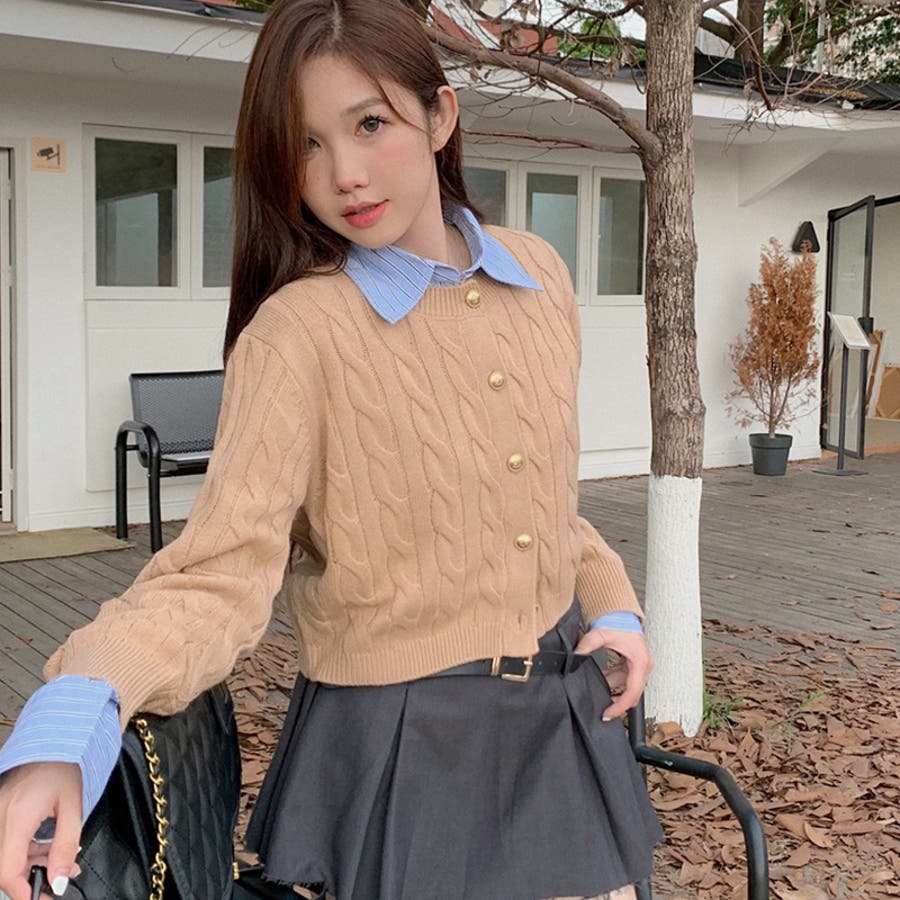 【SHOPLIST限定】学院風丸襟ショート丈編みセーターニットカーディガン