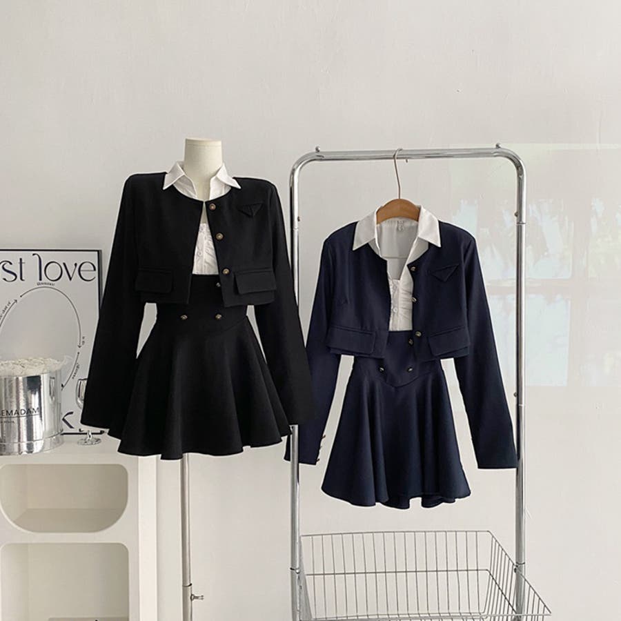 | カラー | ブルージャケット / ブルーサロワンピース / ブラックジャケット / ブラックサロワンピース / ホワイトシャツ |