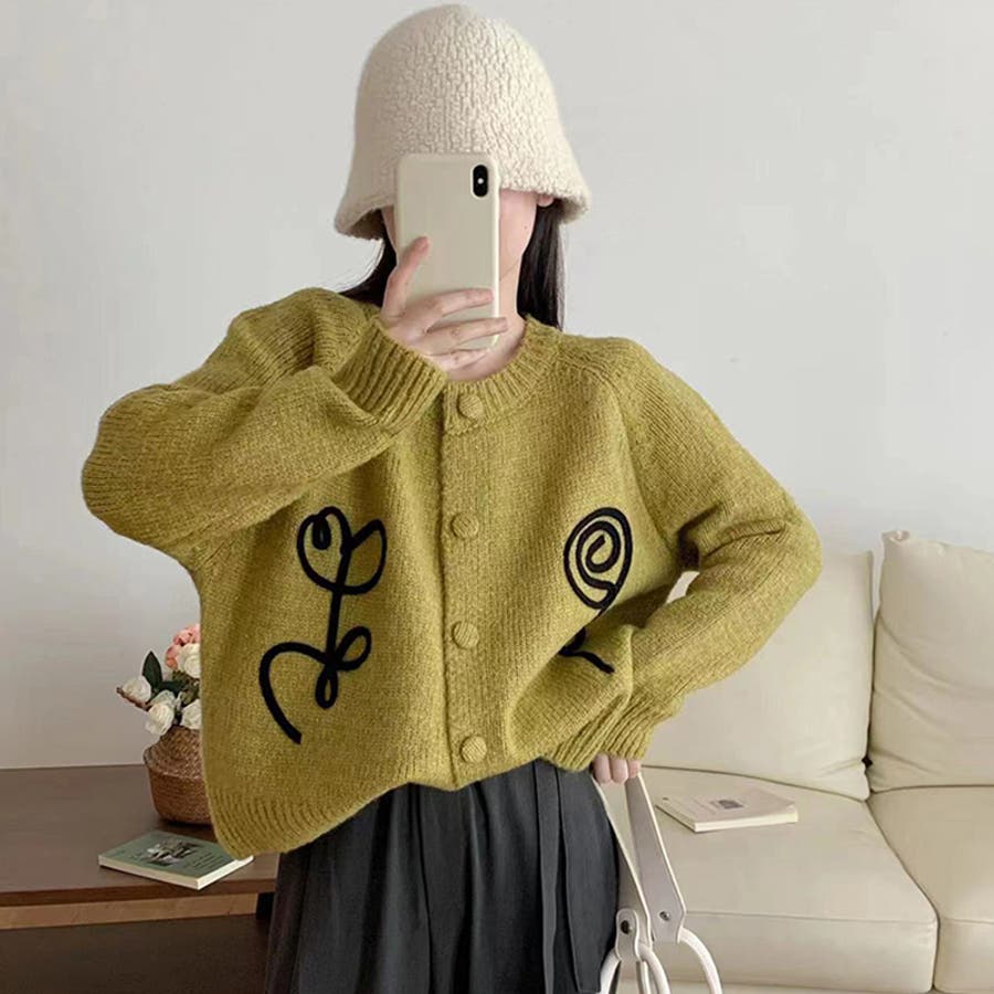 【SHOPLIST限定】ボタン掛け刺繍の花柄ニットカーディガン