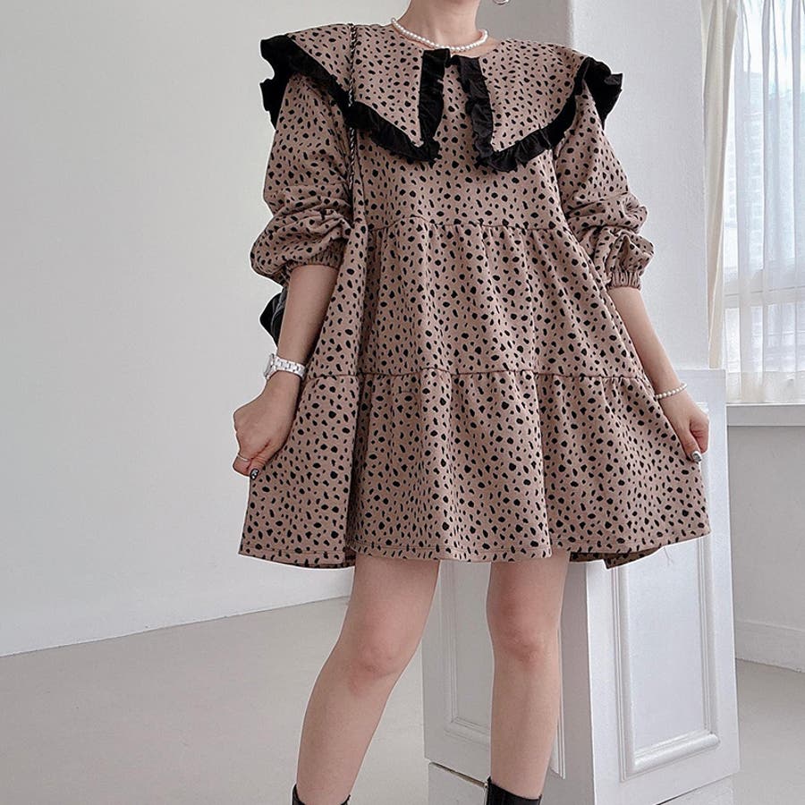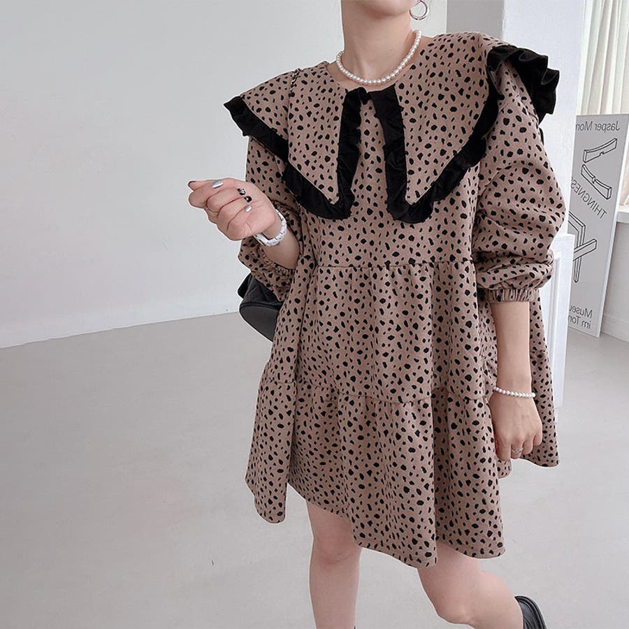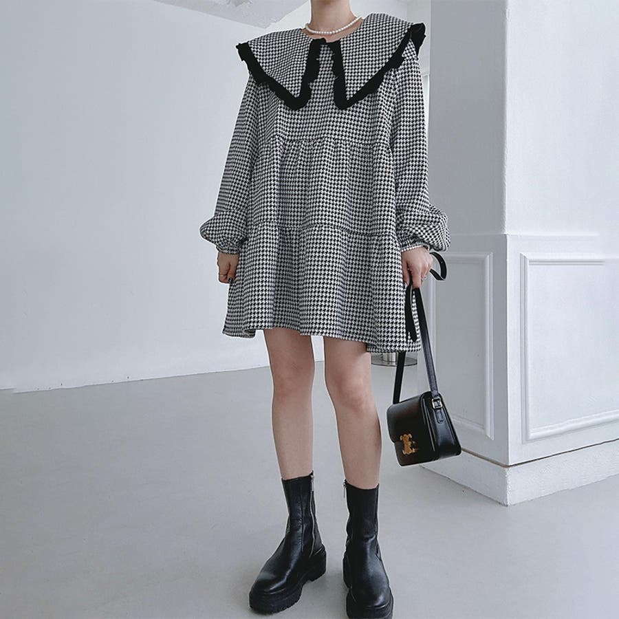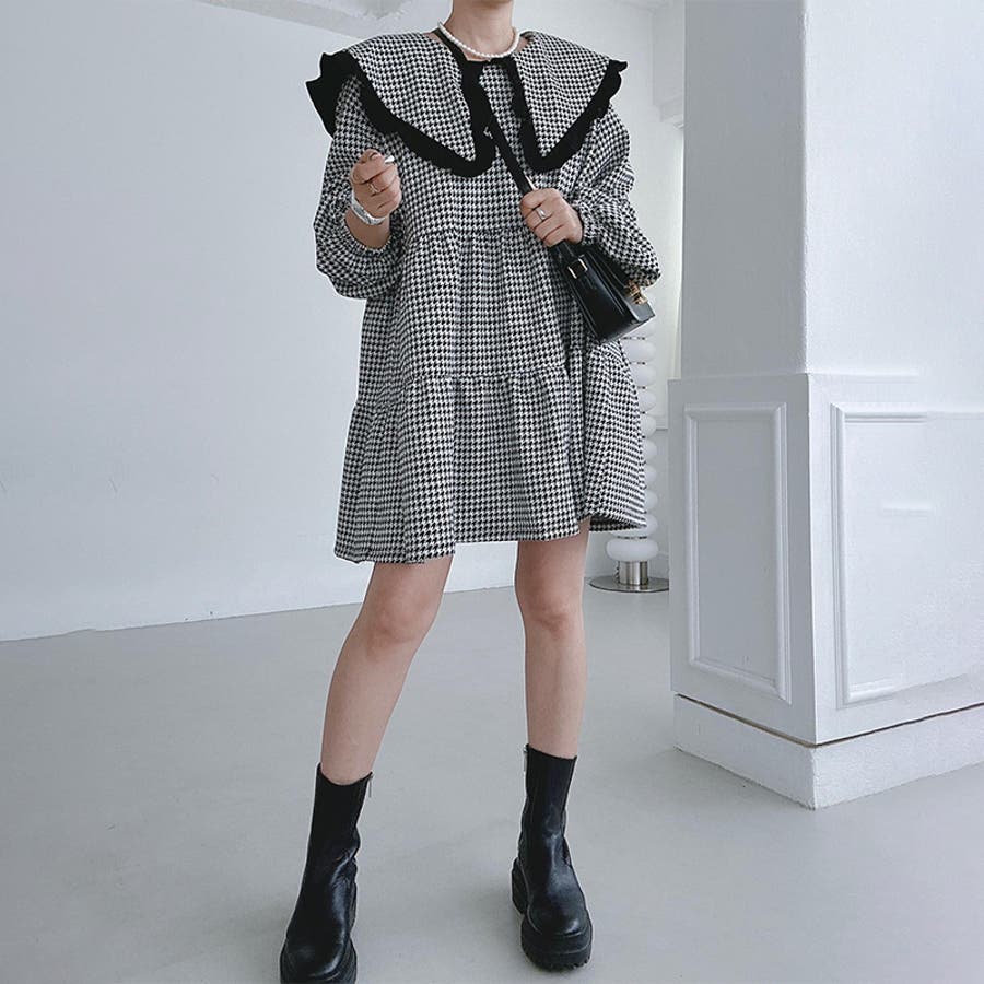 【SHOPLIST限定】おしゃれで洗練された大きな襟元のヒョウOR千鳥格子のワン…