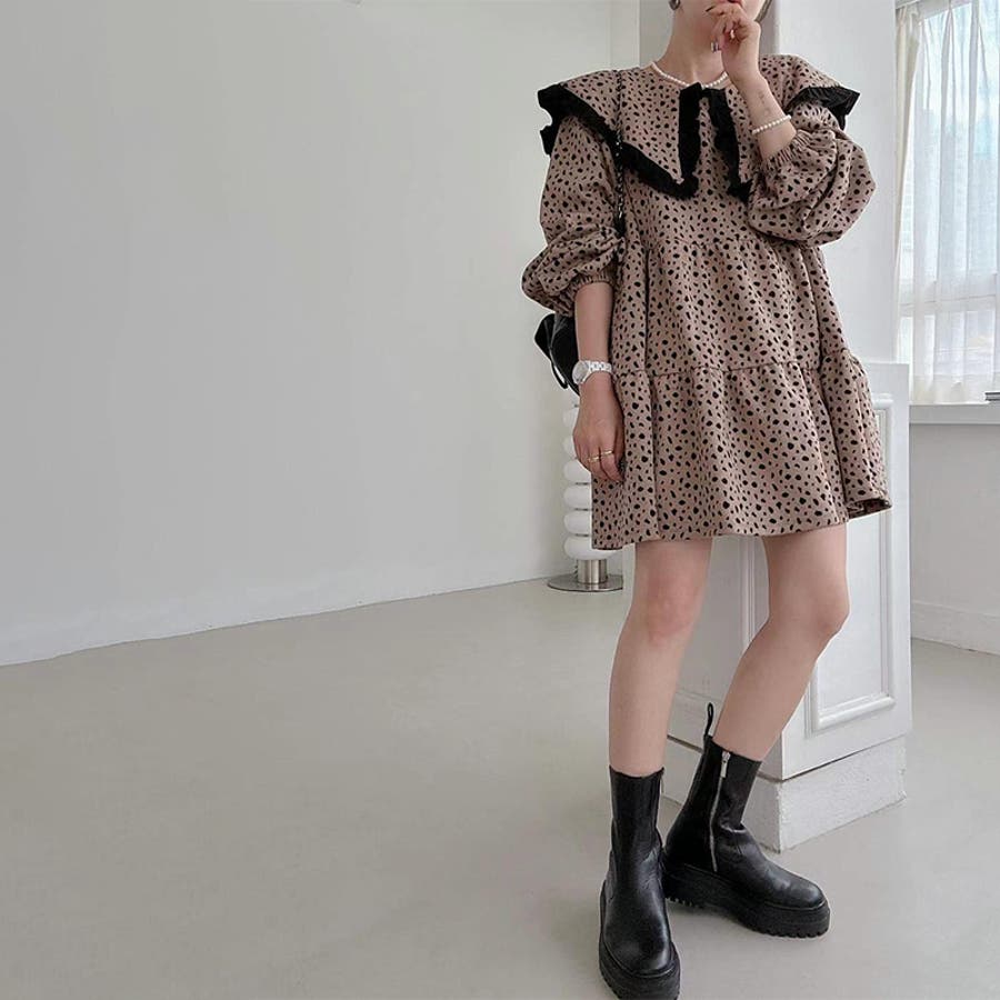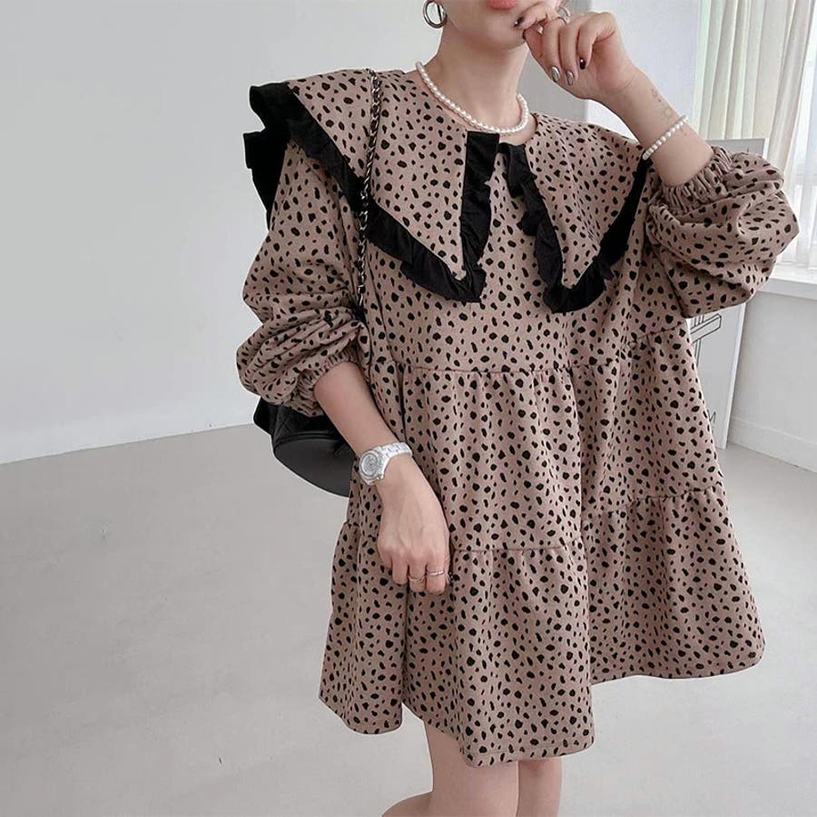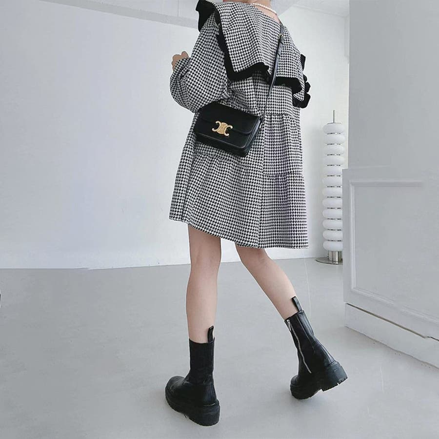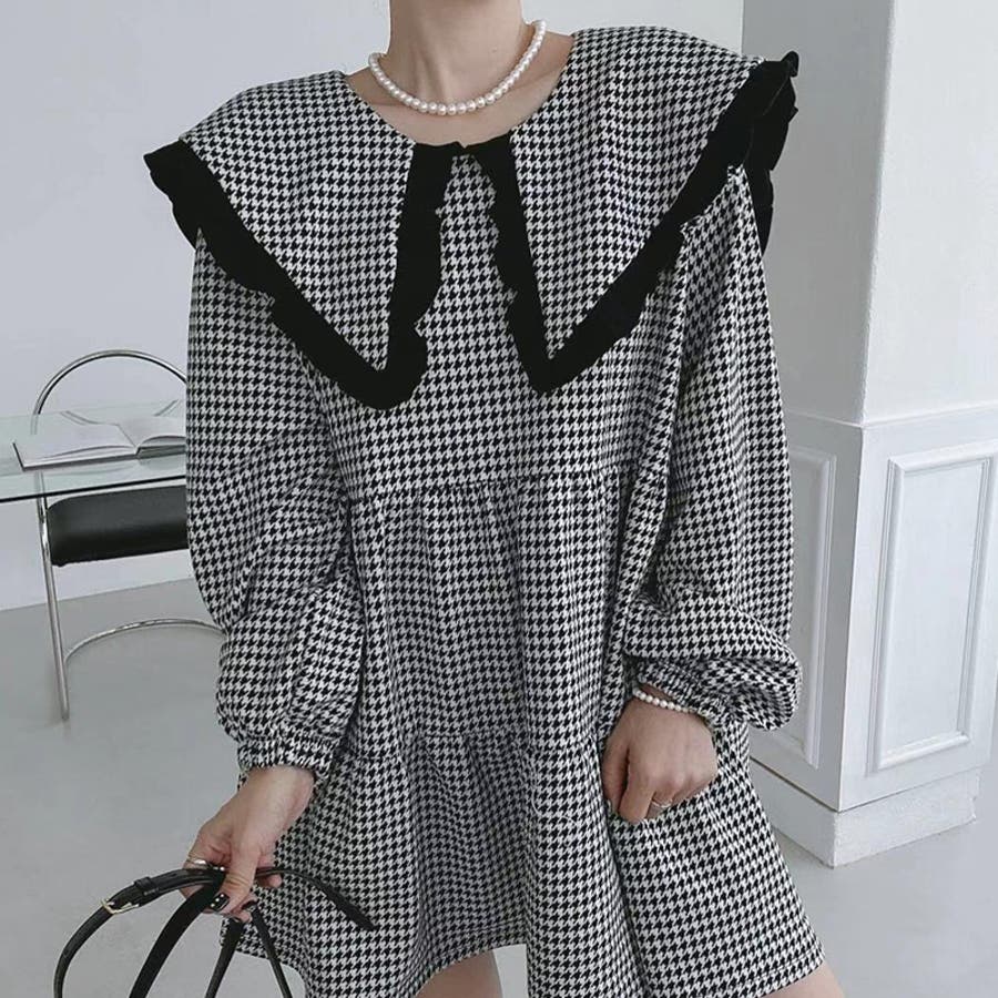 【SHOPLIST限定】おしゃれで洗練された大きな襟元のヒョウOR千鳥格子のワン…