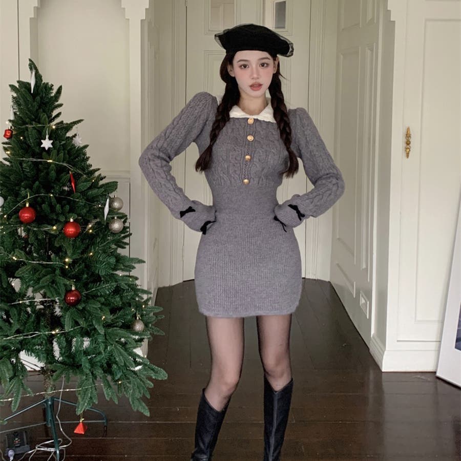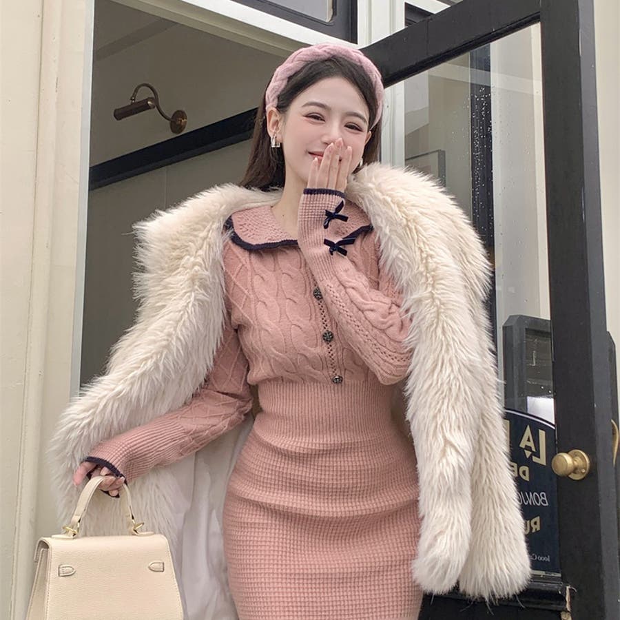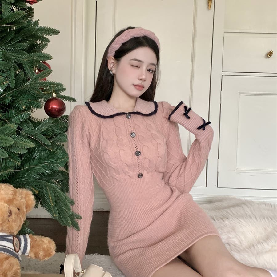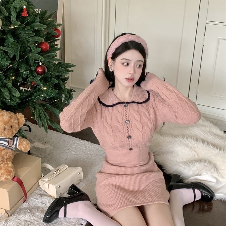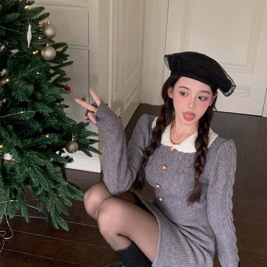 【SHOPLIST限定】韓国風シックな秋新作バイカラーニットタイトワンピース