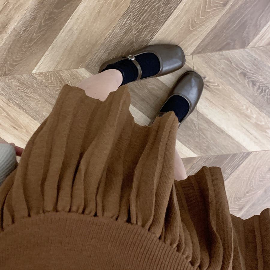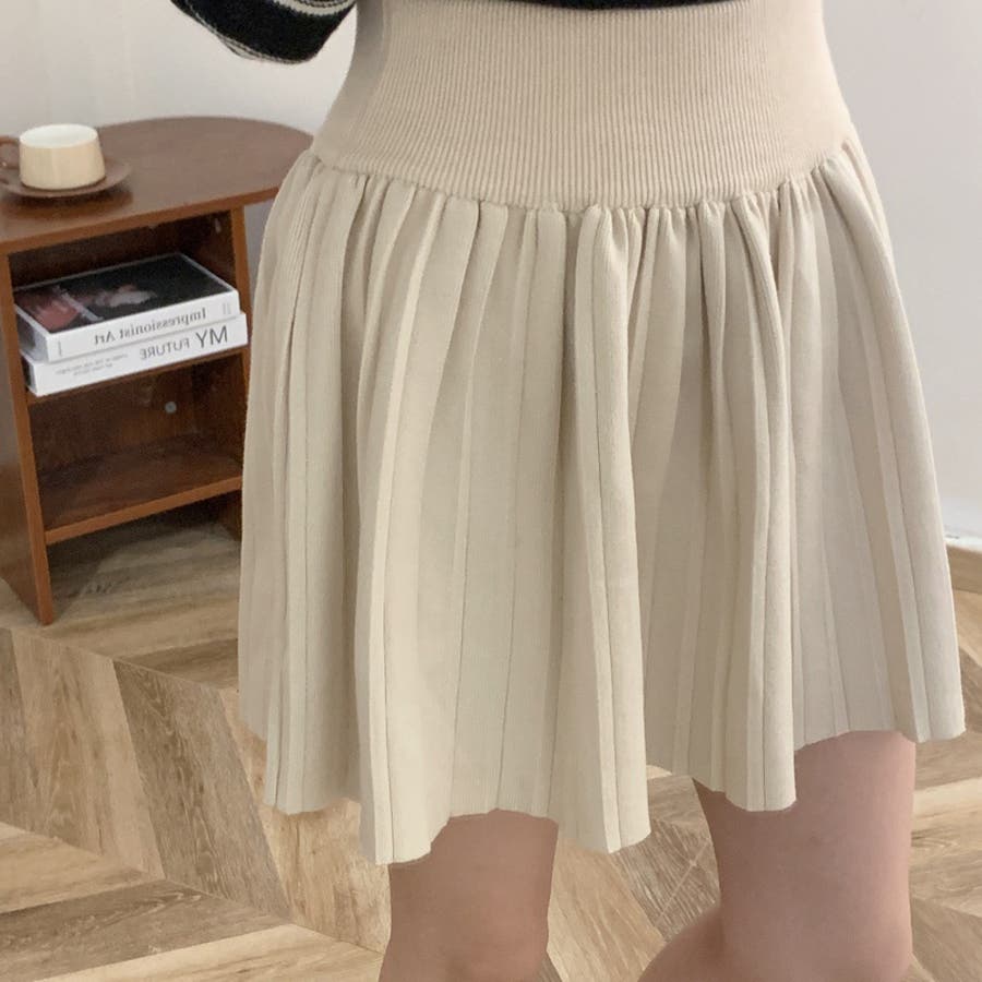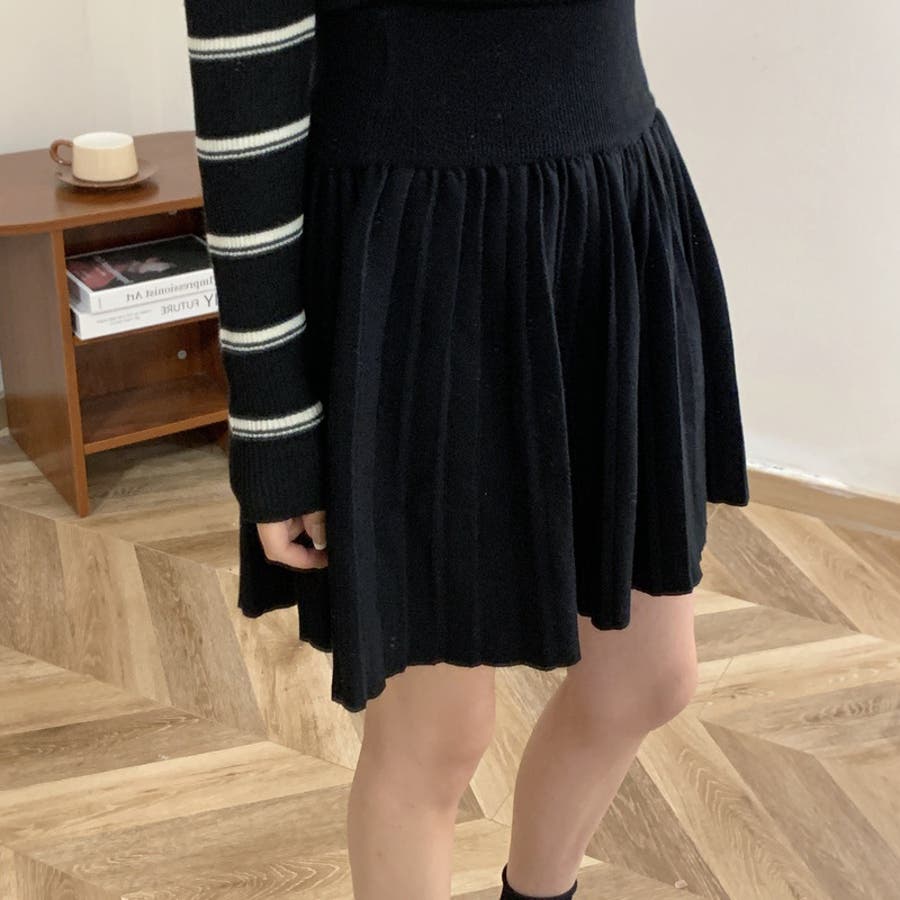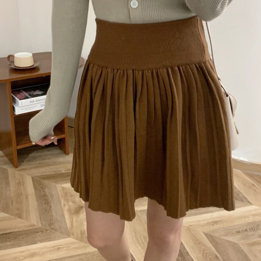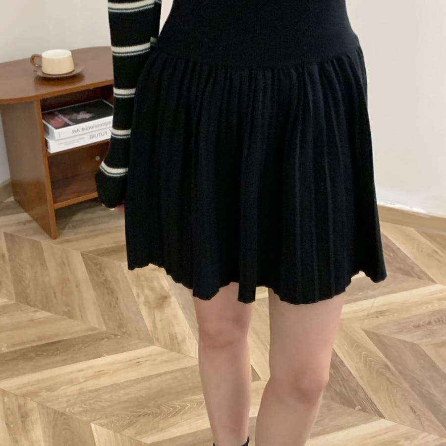 【SHOPLIST限定】韓国風シックな秋新作ハイウェストプリーツスカートニット