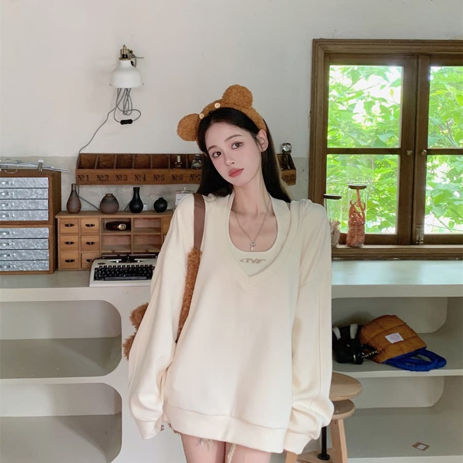 アメリカンホリックホルターネックショートキャミ+Vネック長袖スウェット2点セット…