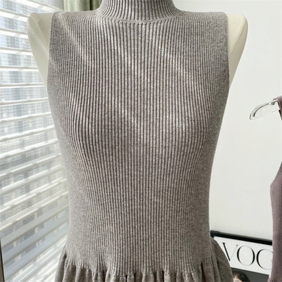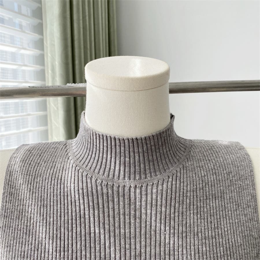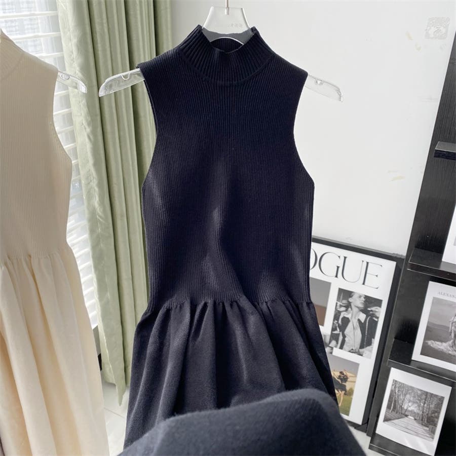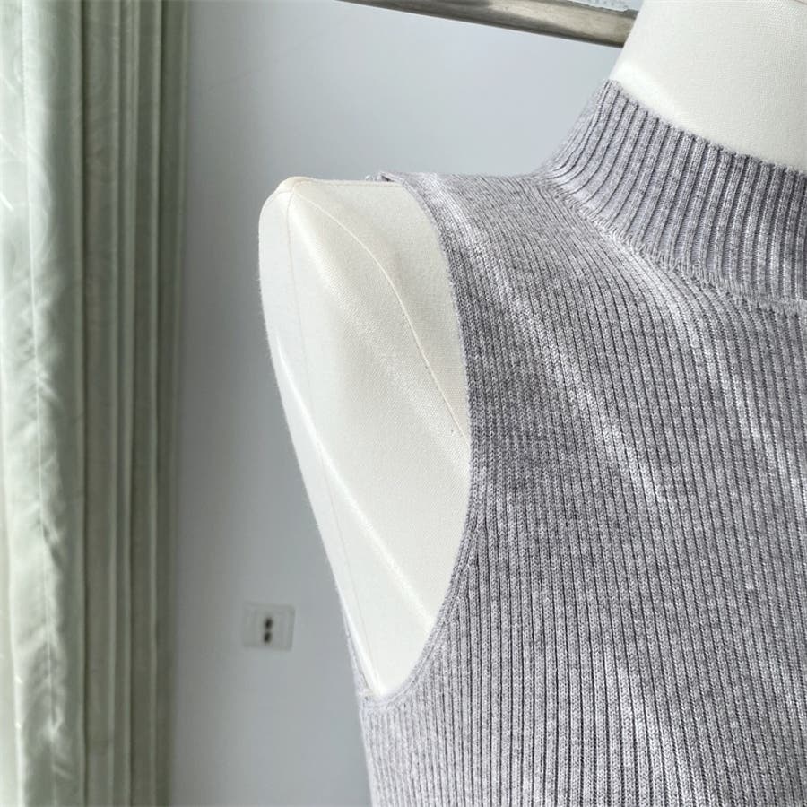 【SHOPLIST限定】韓国ファッション大人スタイル優しいスリムノースリーブニッ…
