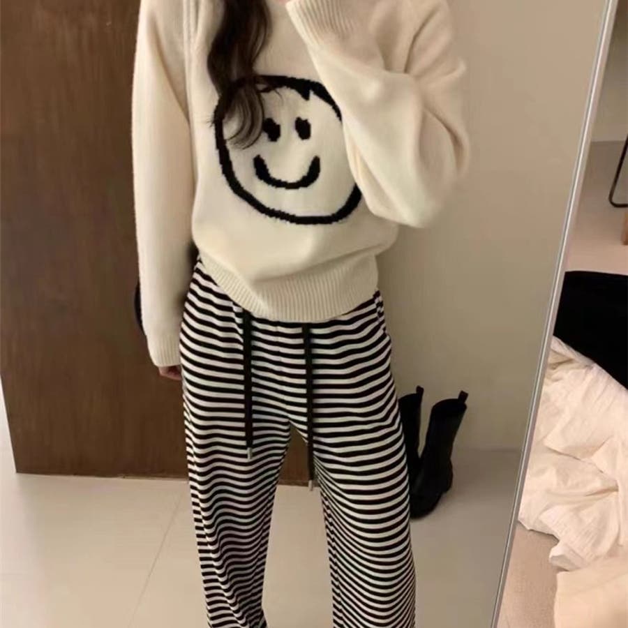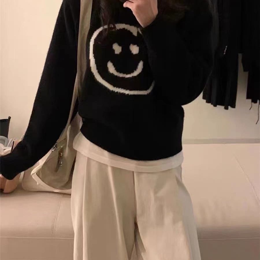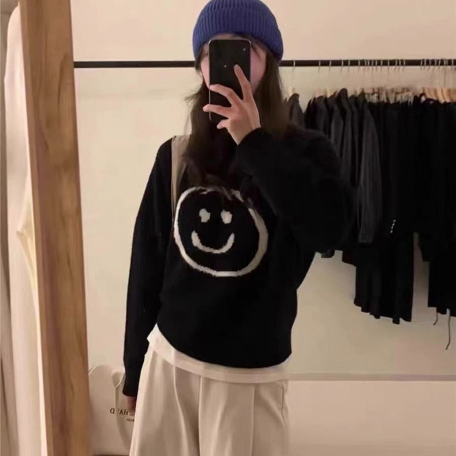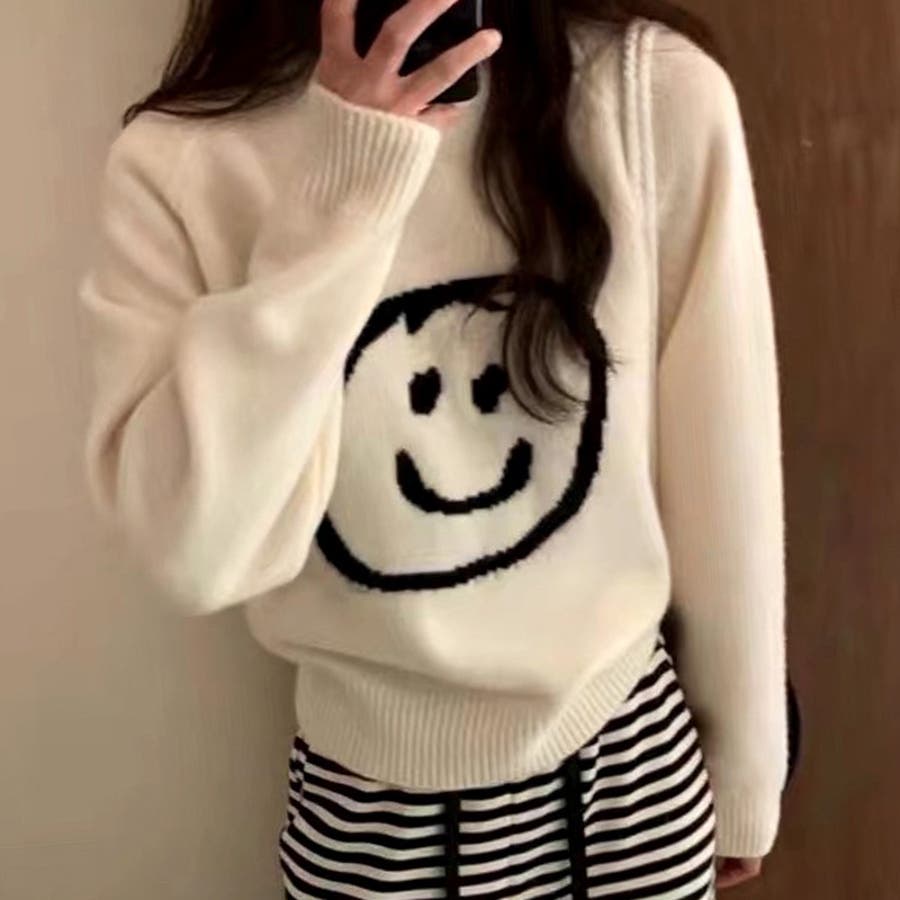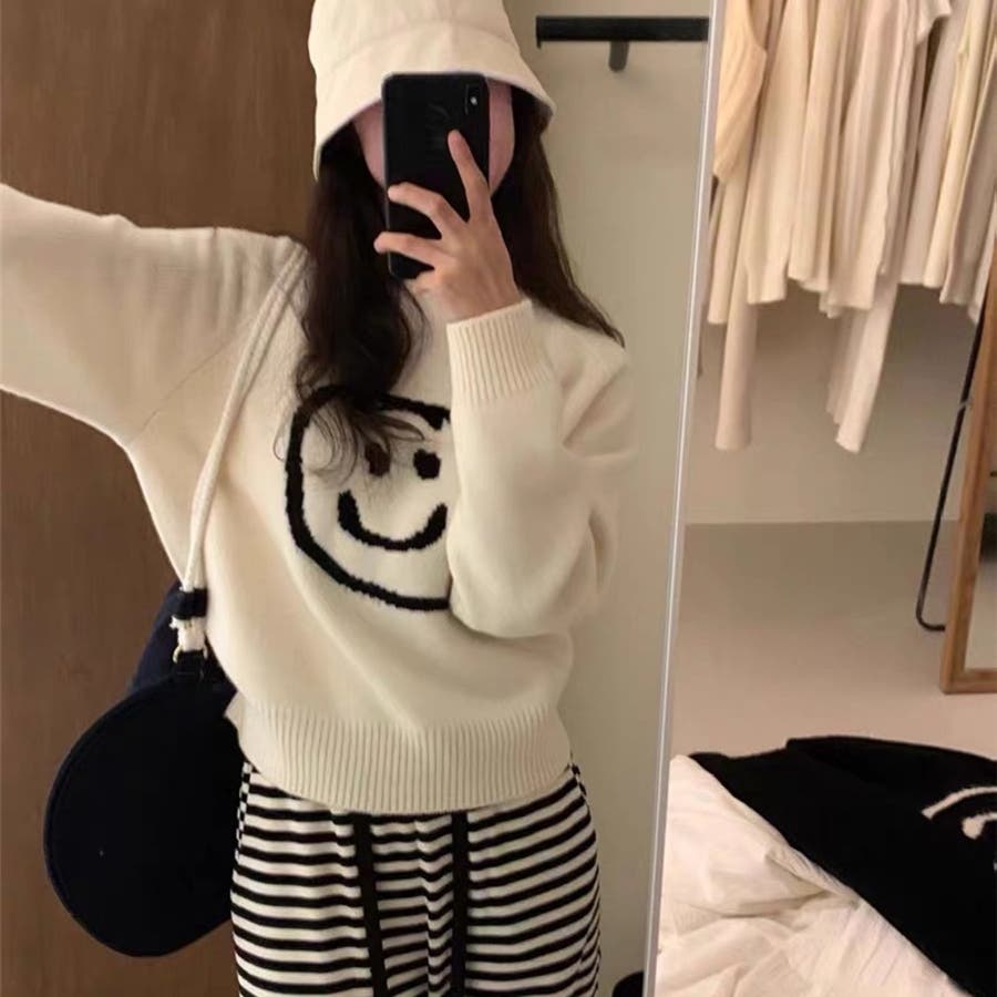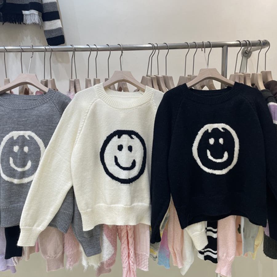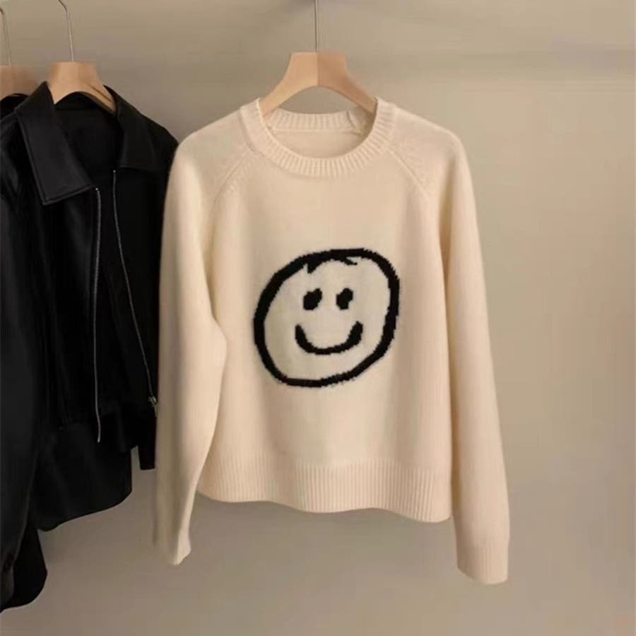 【SHOPLIST限定】韓国風スマイリーフェイスホワイトショートセーター
