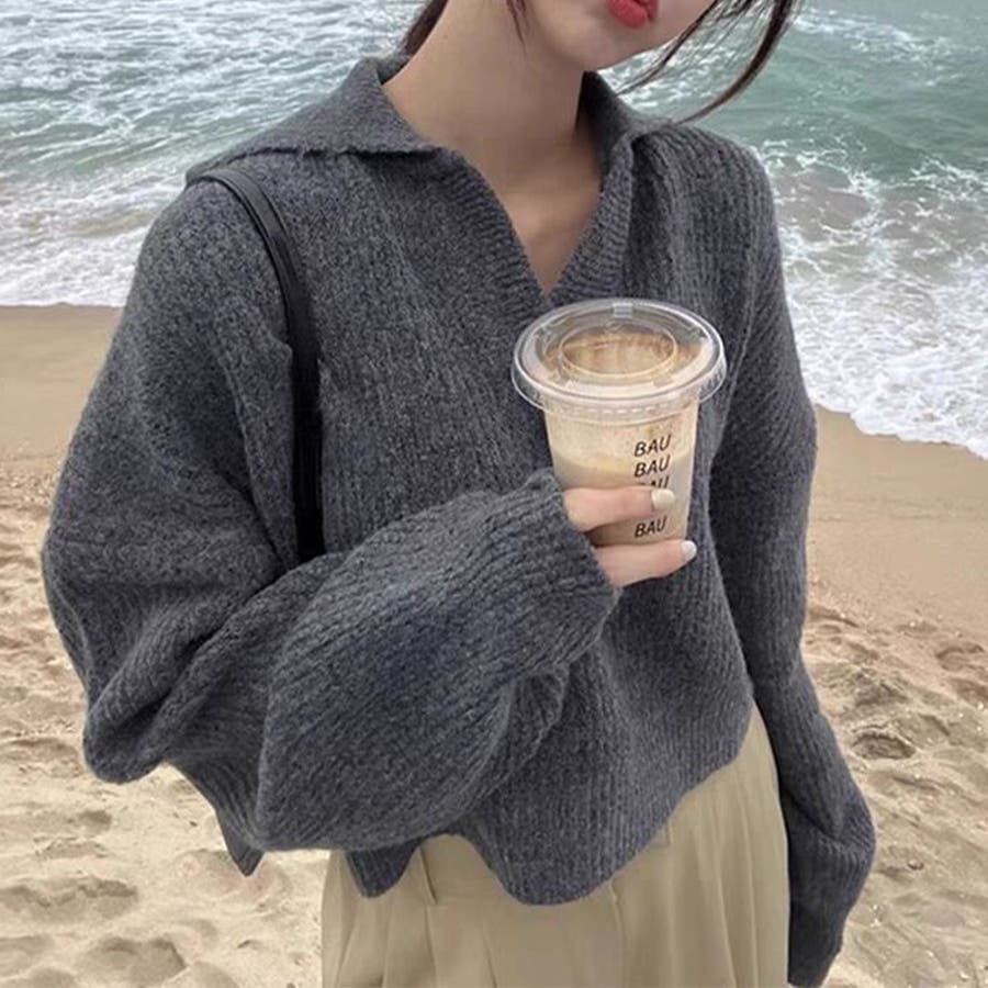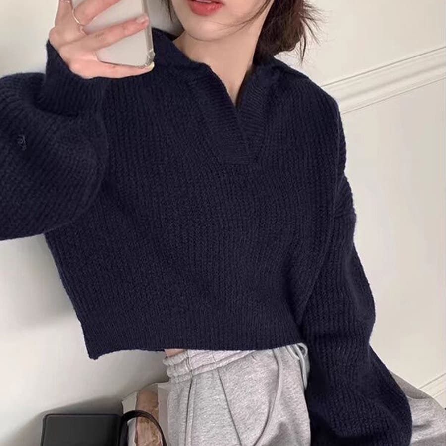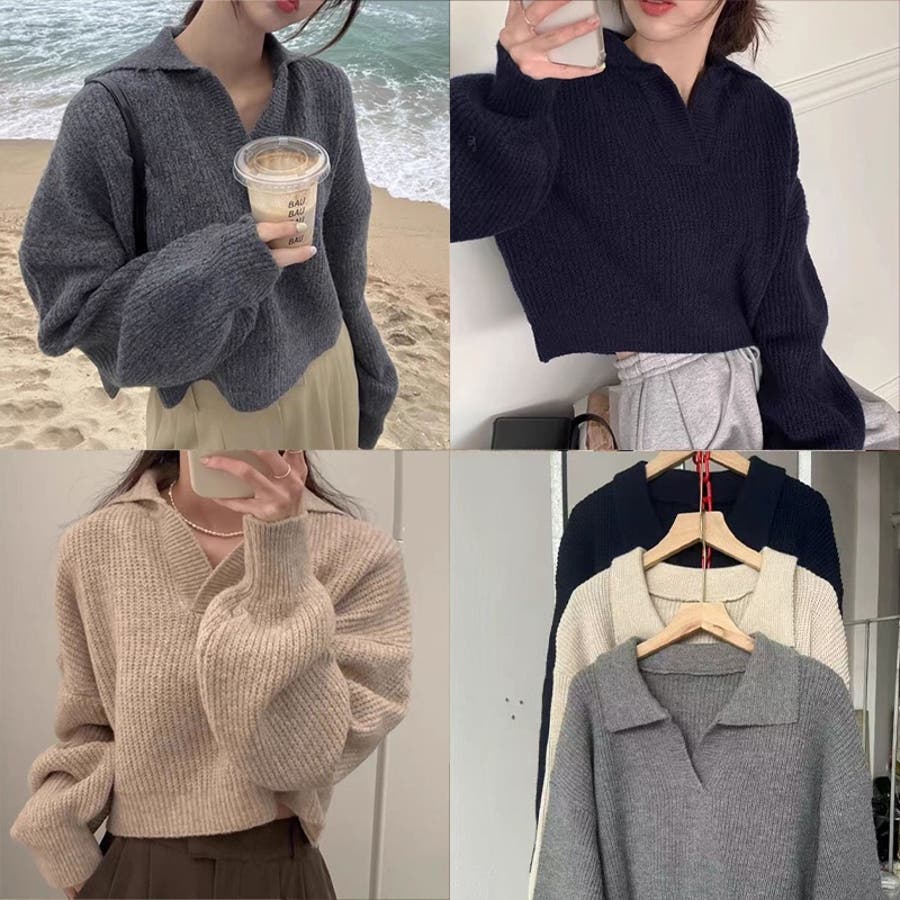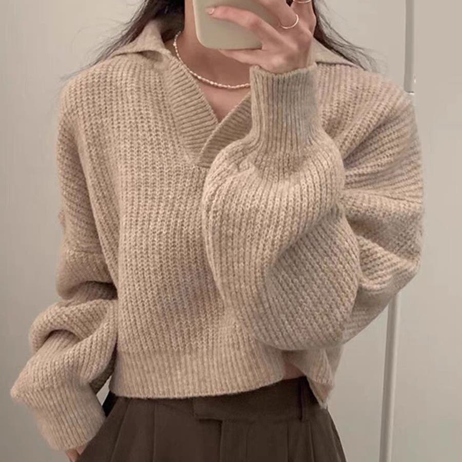 【SHOPLIST限定】セミオープンカラー柔らかい無地ニットセーター