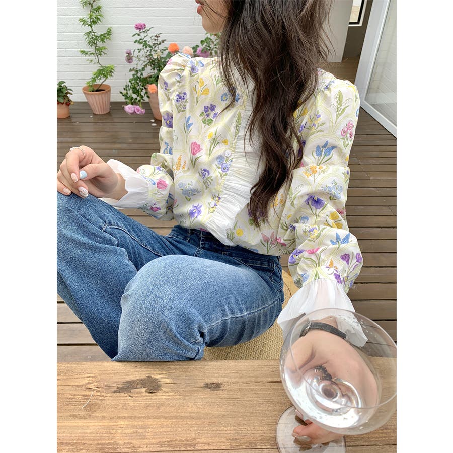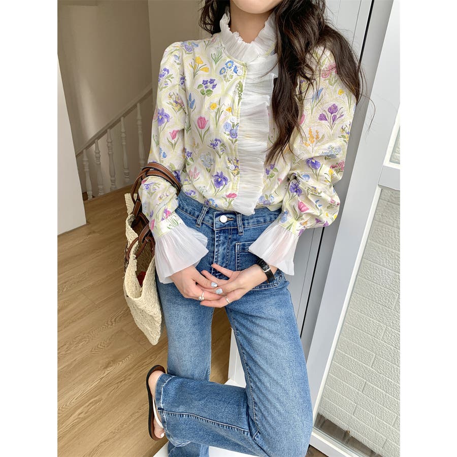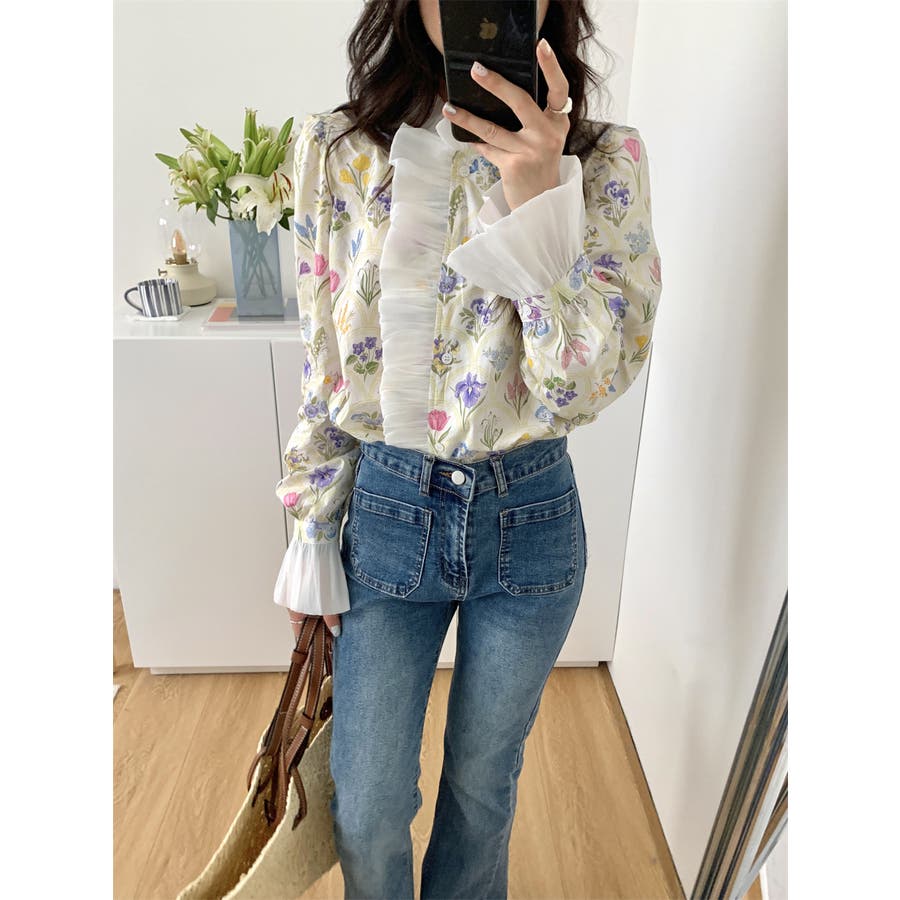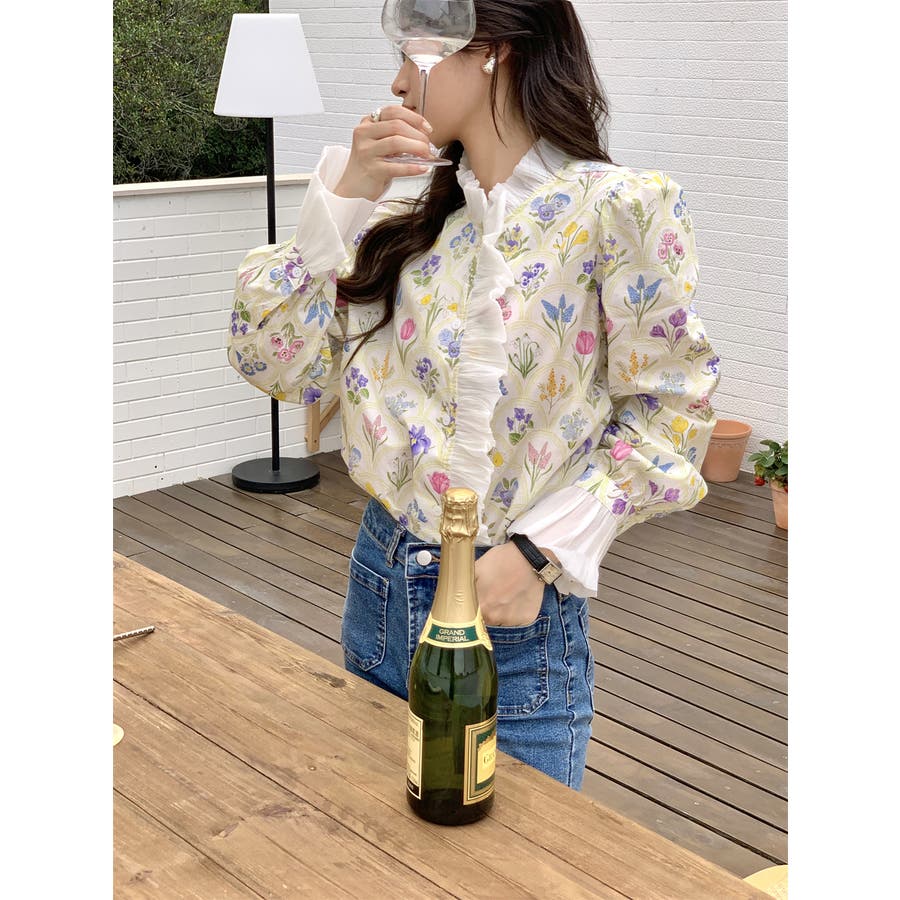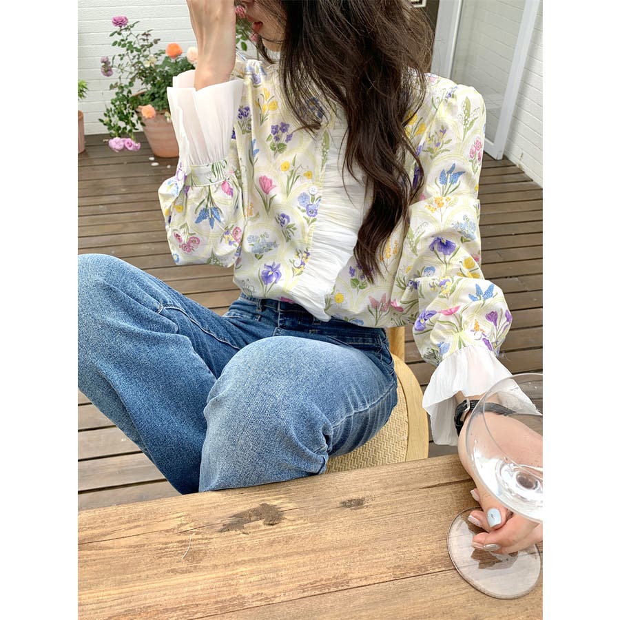 【SHOPLIST限定】春と花に魅せられ!フリル袖ブラウス長袖シャツ