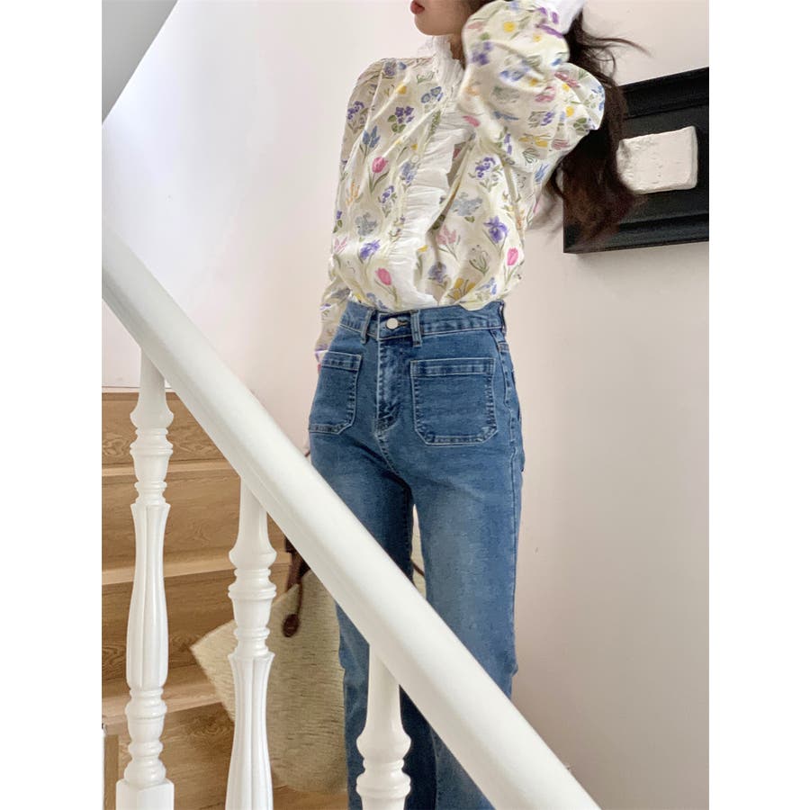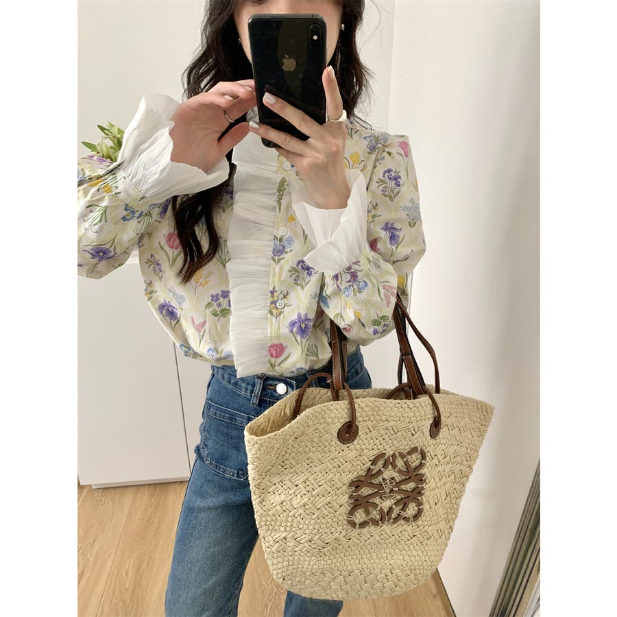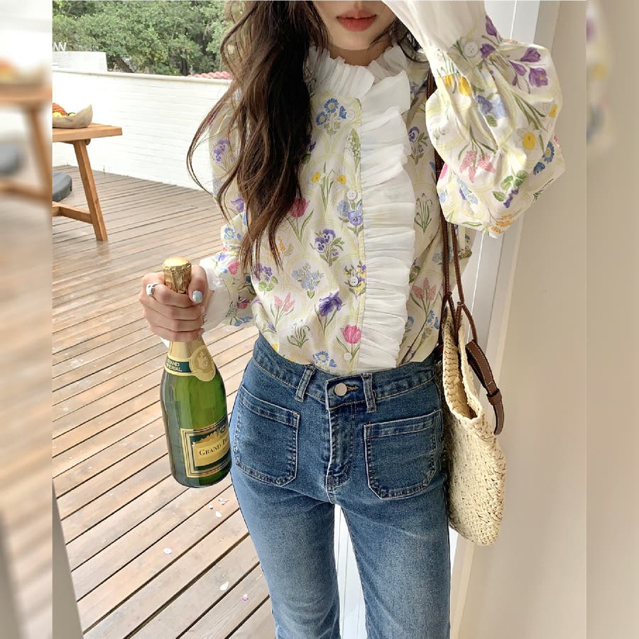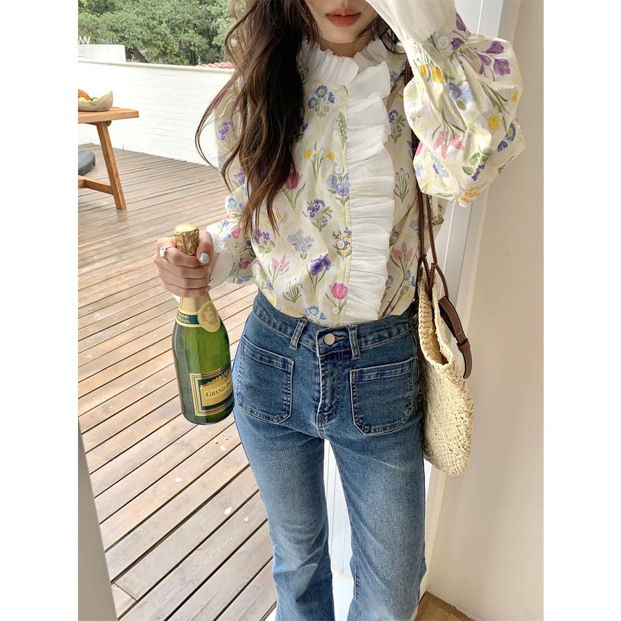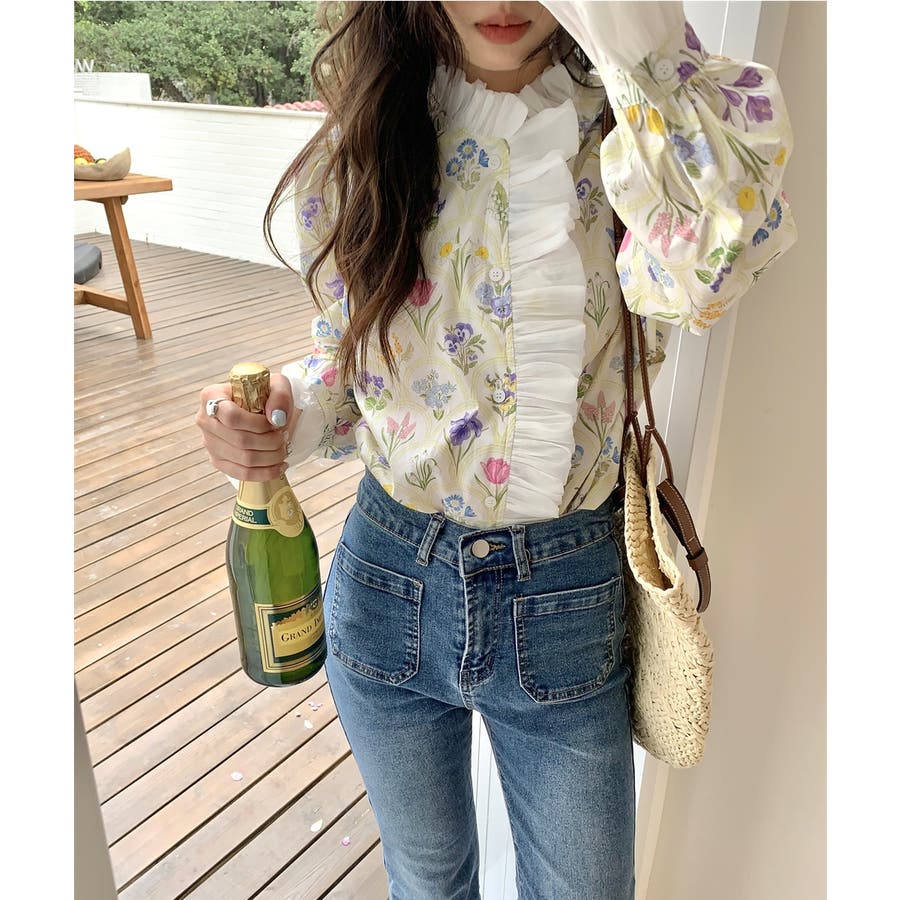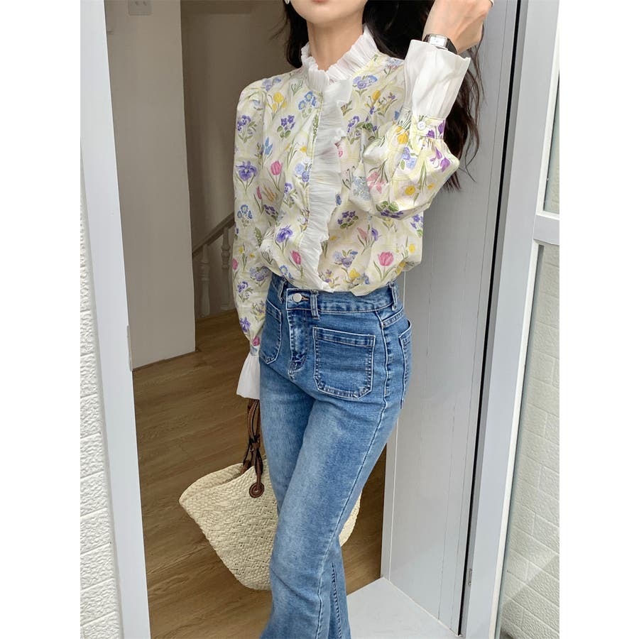 【SHOPLIST限定】春と花に魅せられ!フリル袖ブラウス長袖シャツ