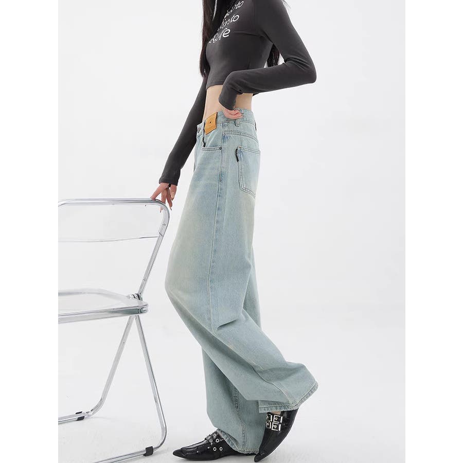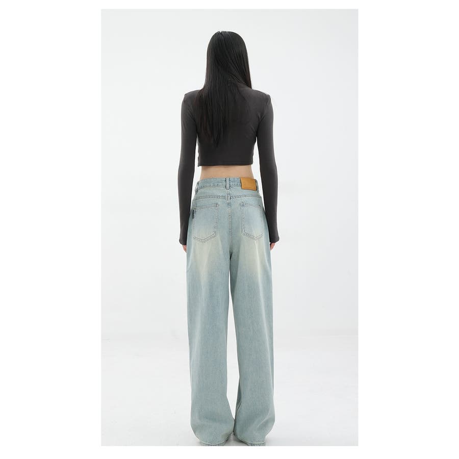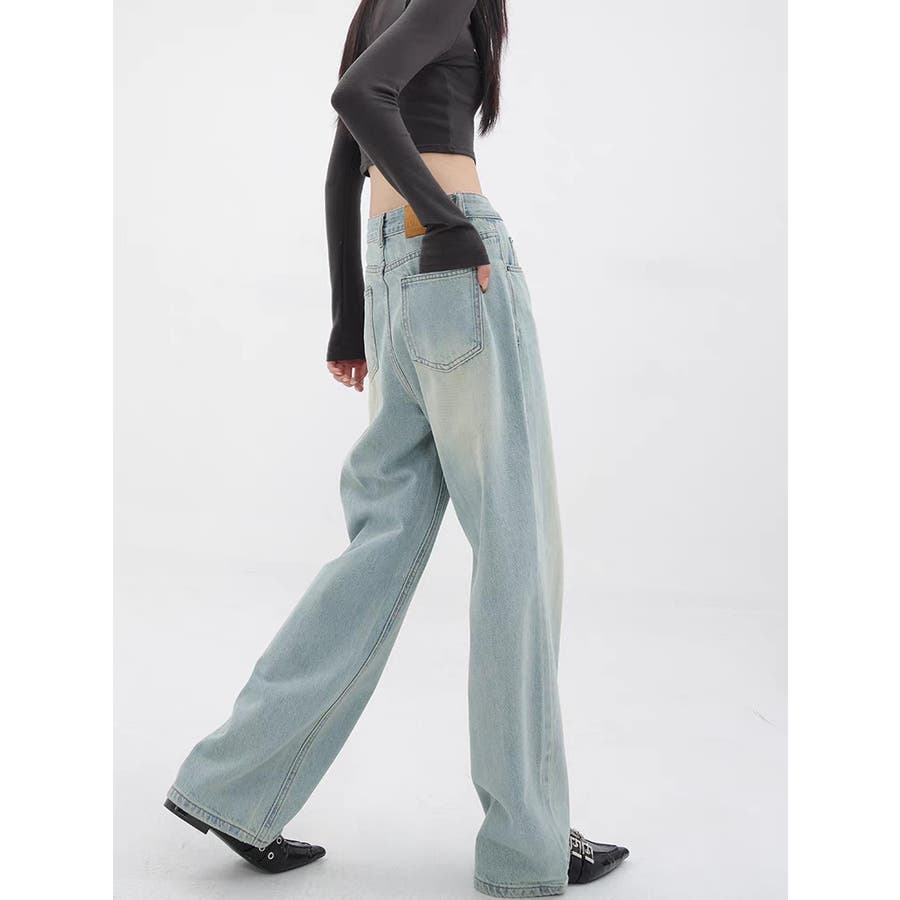 【赤字覚悟!処分セール】ヴィンテージ風水洗い色デニムワイドパンツ