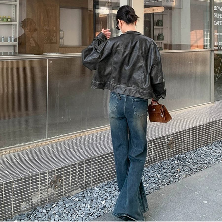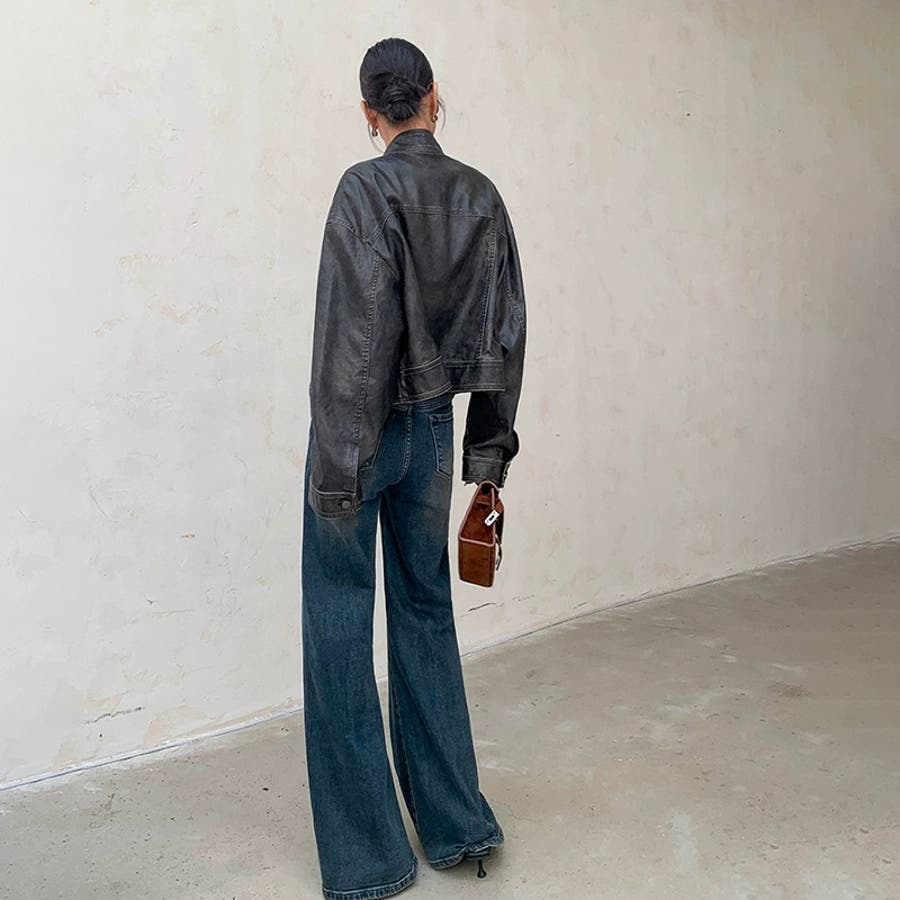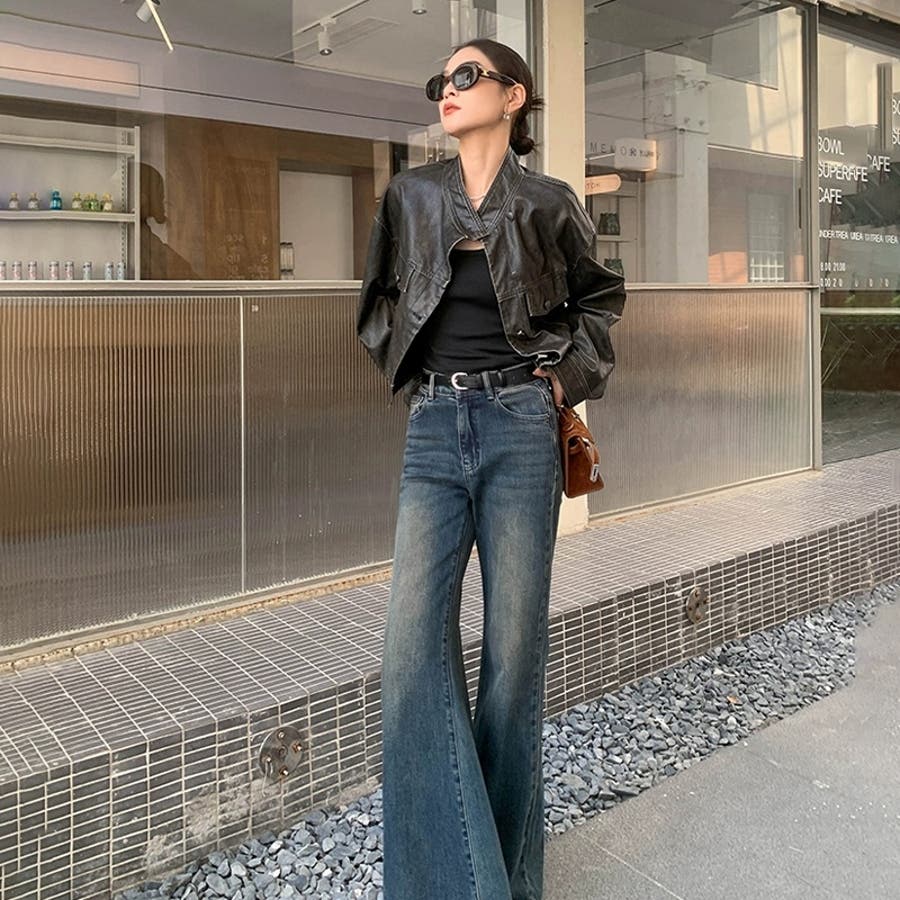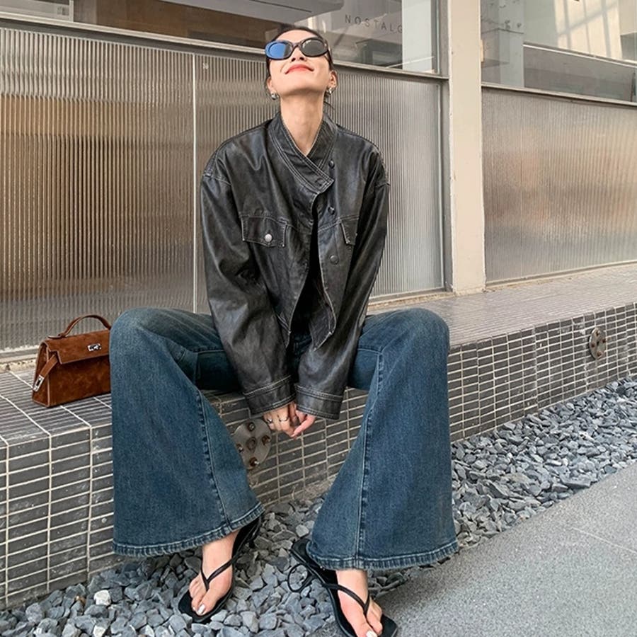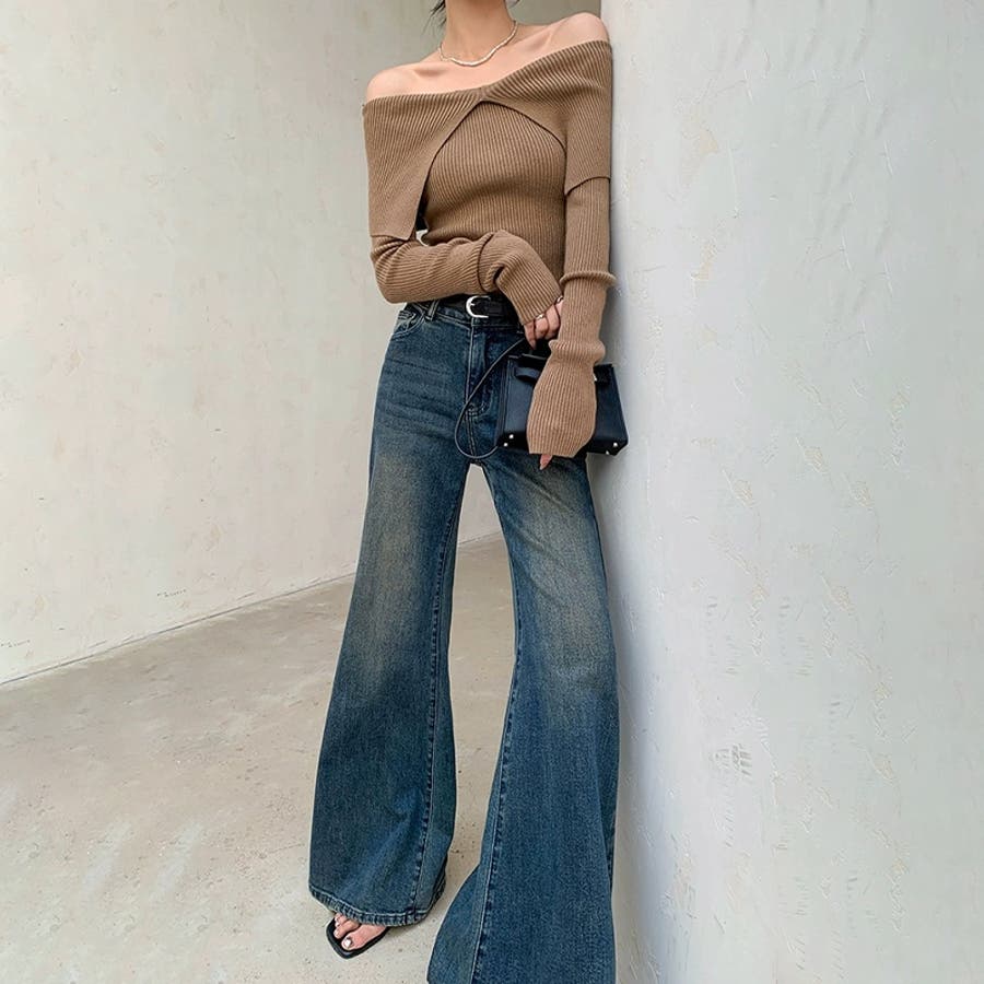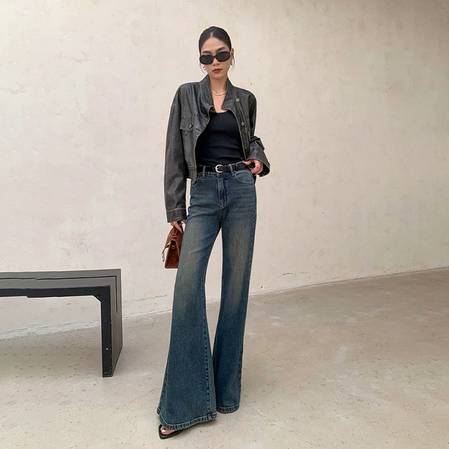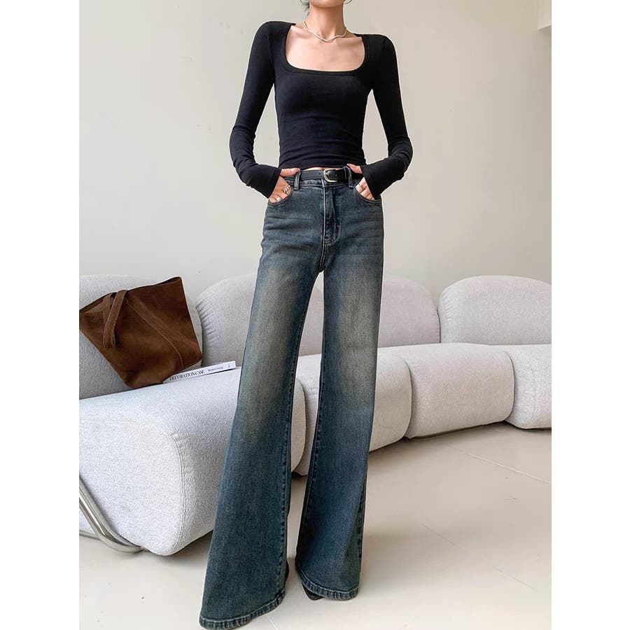 ファッション性と微妙なフレアラインが特徴。フレアワイドレッグデニムパンツ
