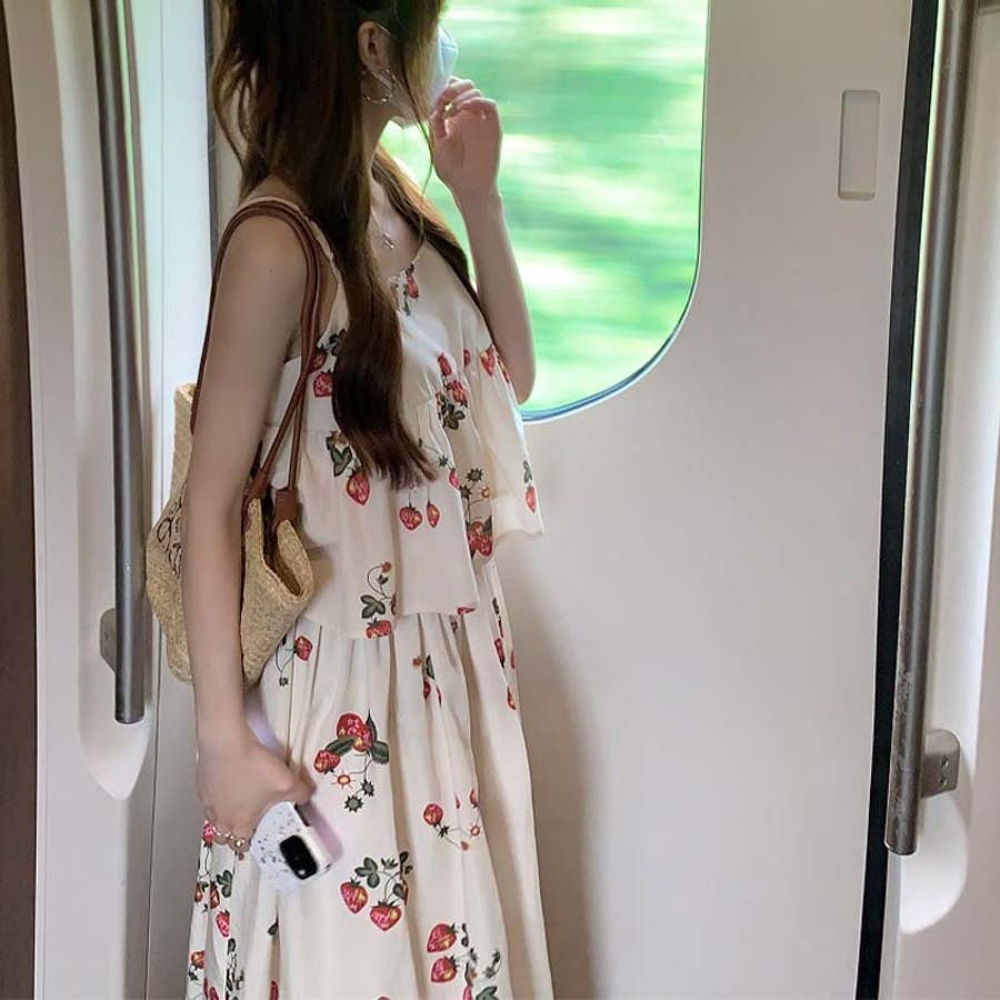 【SHOPLIST限定】慵?でユニークなデザイン。花柄キャミソール+花柄ロングス…