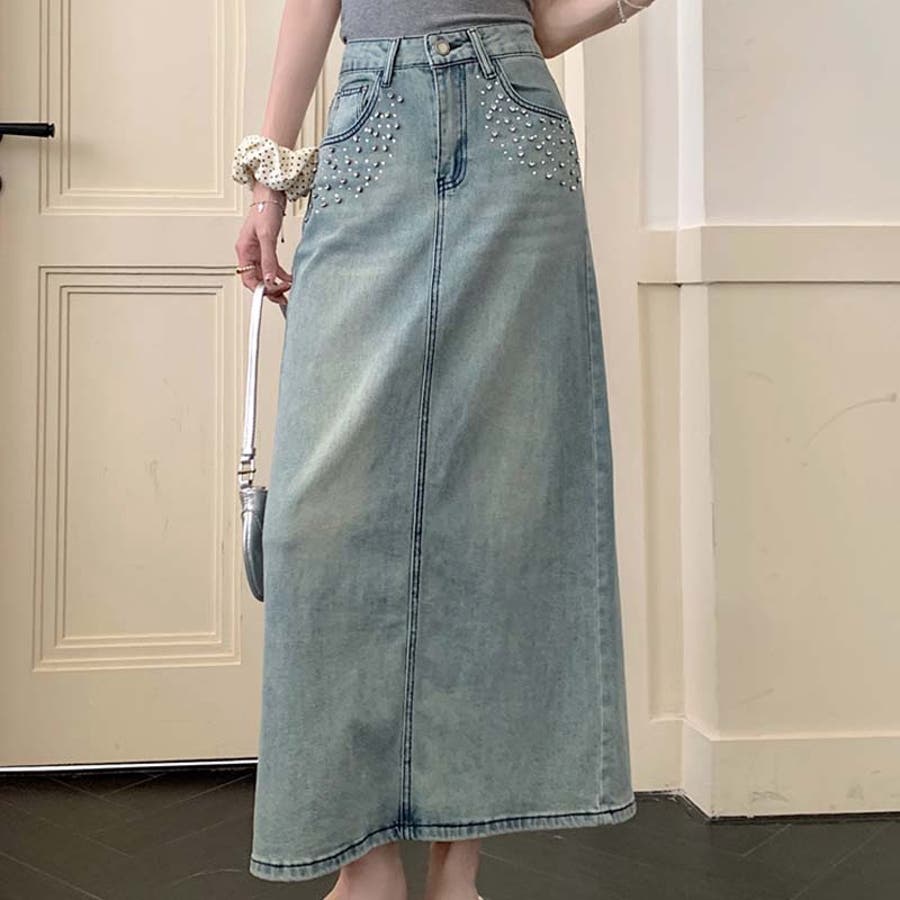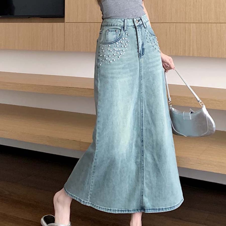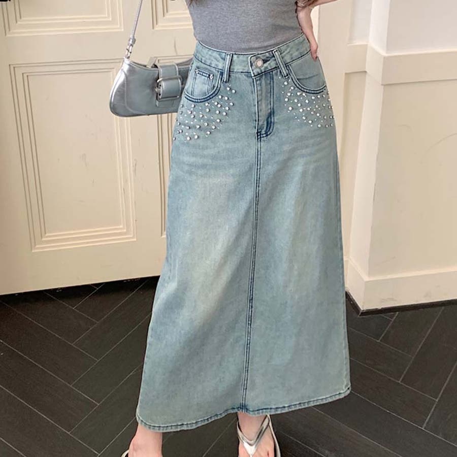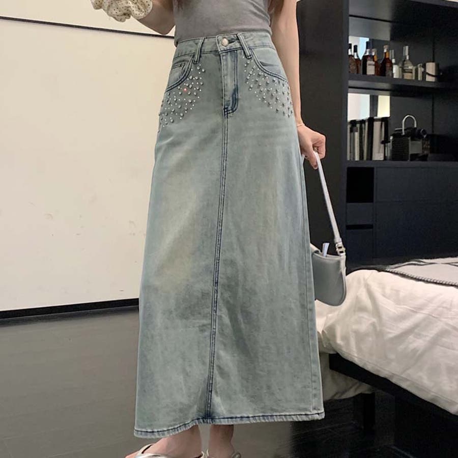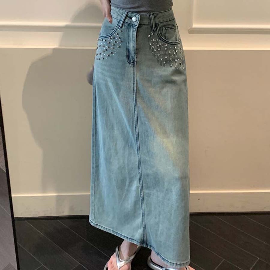 クラシックな魅力を放ち。ラインストーン装飾の付いたハイウエストAラインスカート