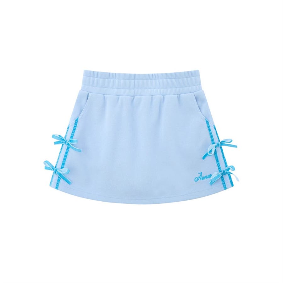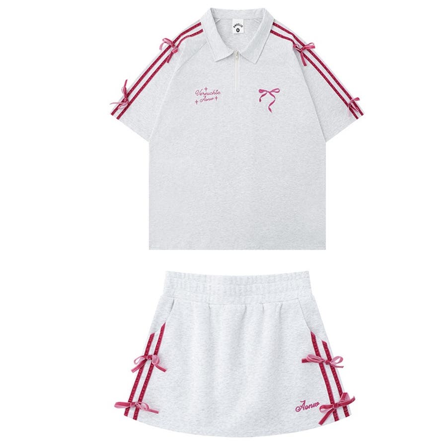 夏のカジュアルスポーツスタイル。蝶結デコレーションの半袖ポロシャツとスカートの2点セット