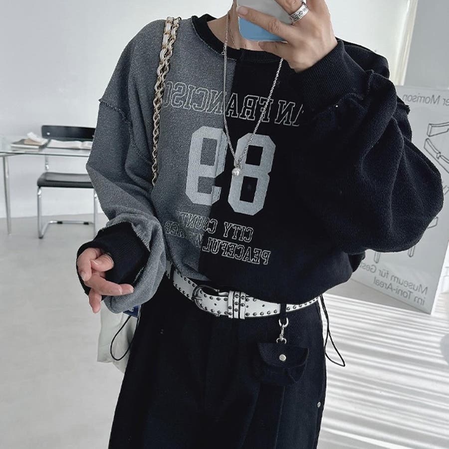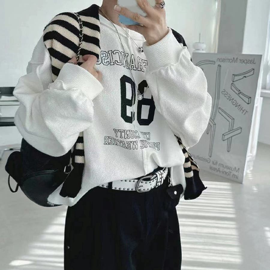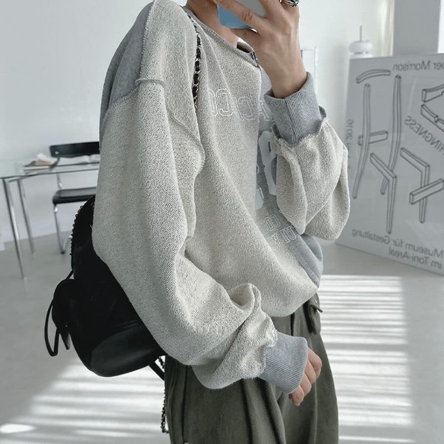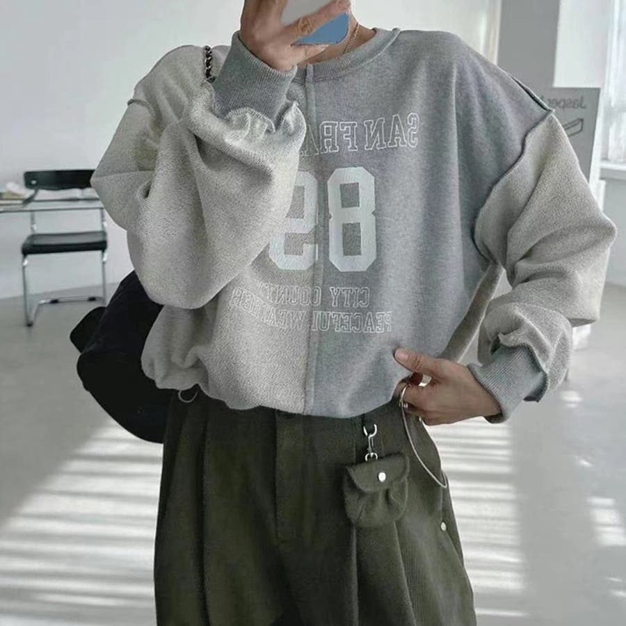 裏側着る視覚差!線条感英字柄トレーナートップス