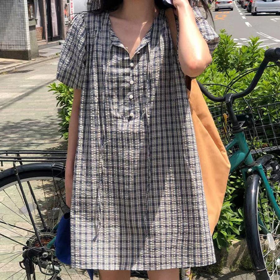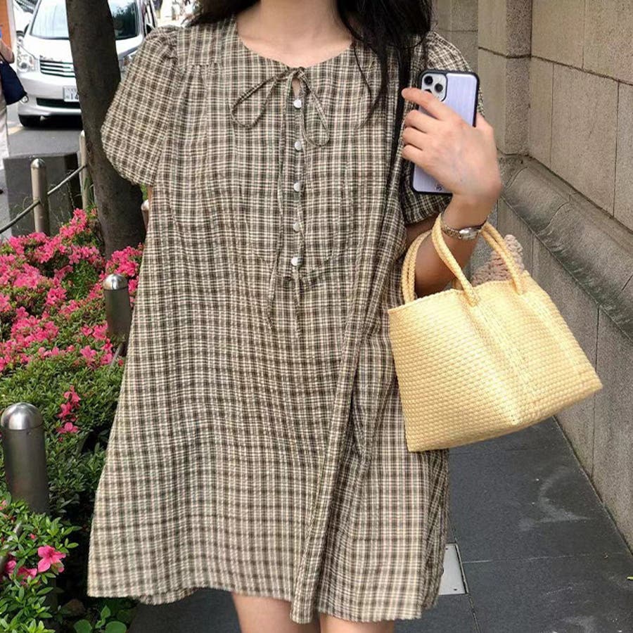 シルエットをスリムに。小柄 アンチエイジング チェックワンピース