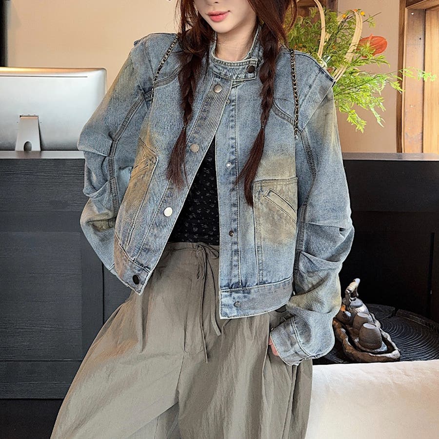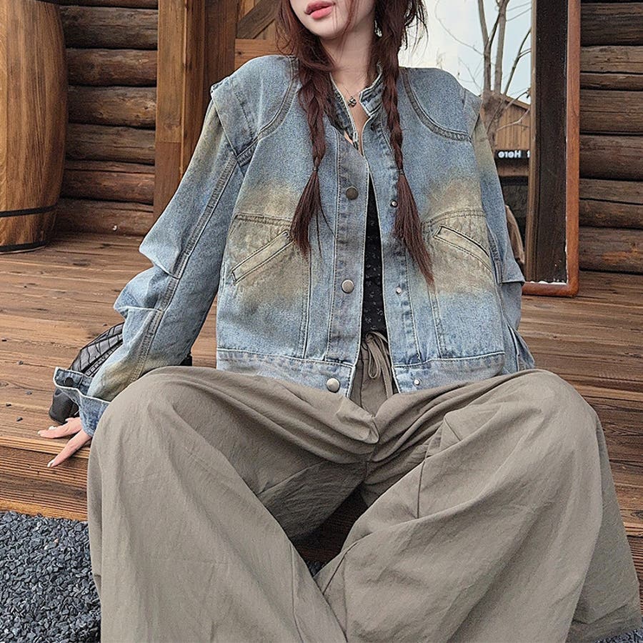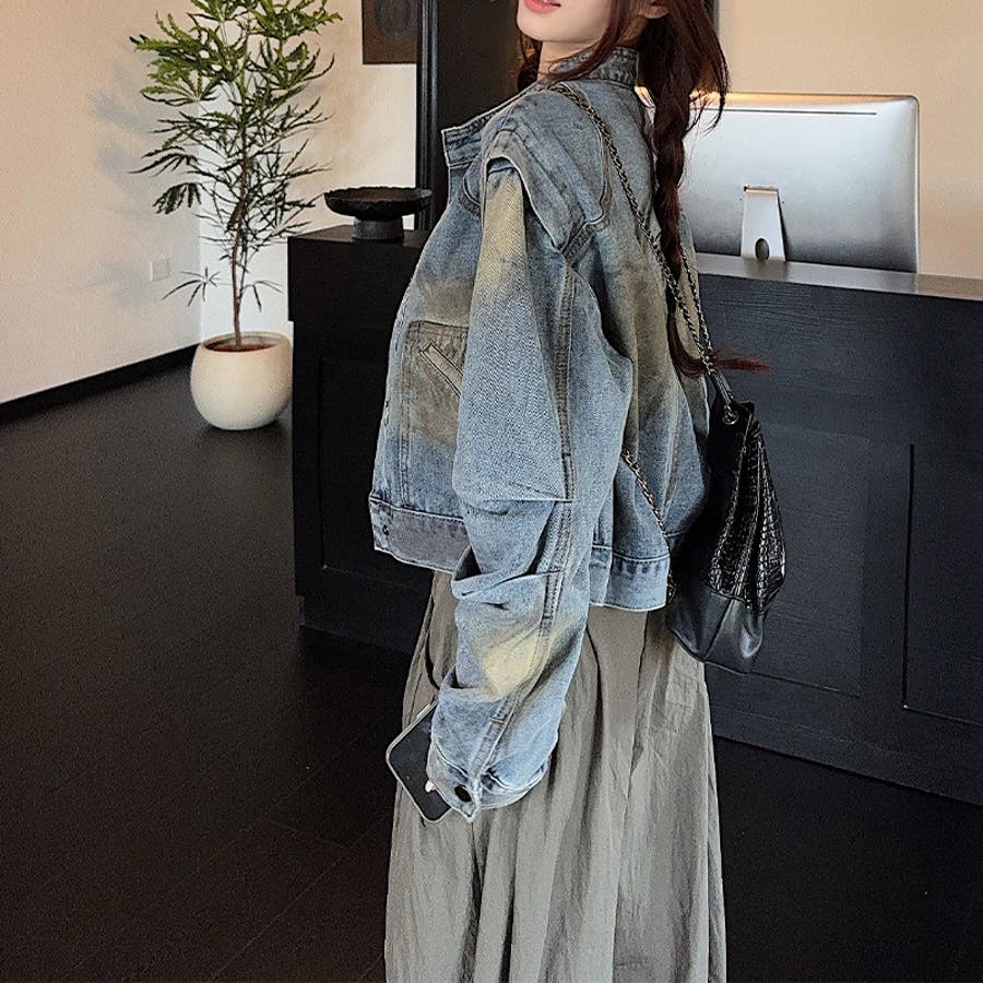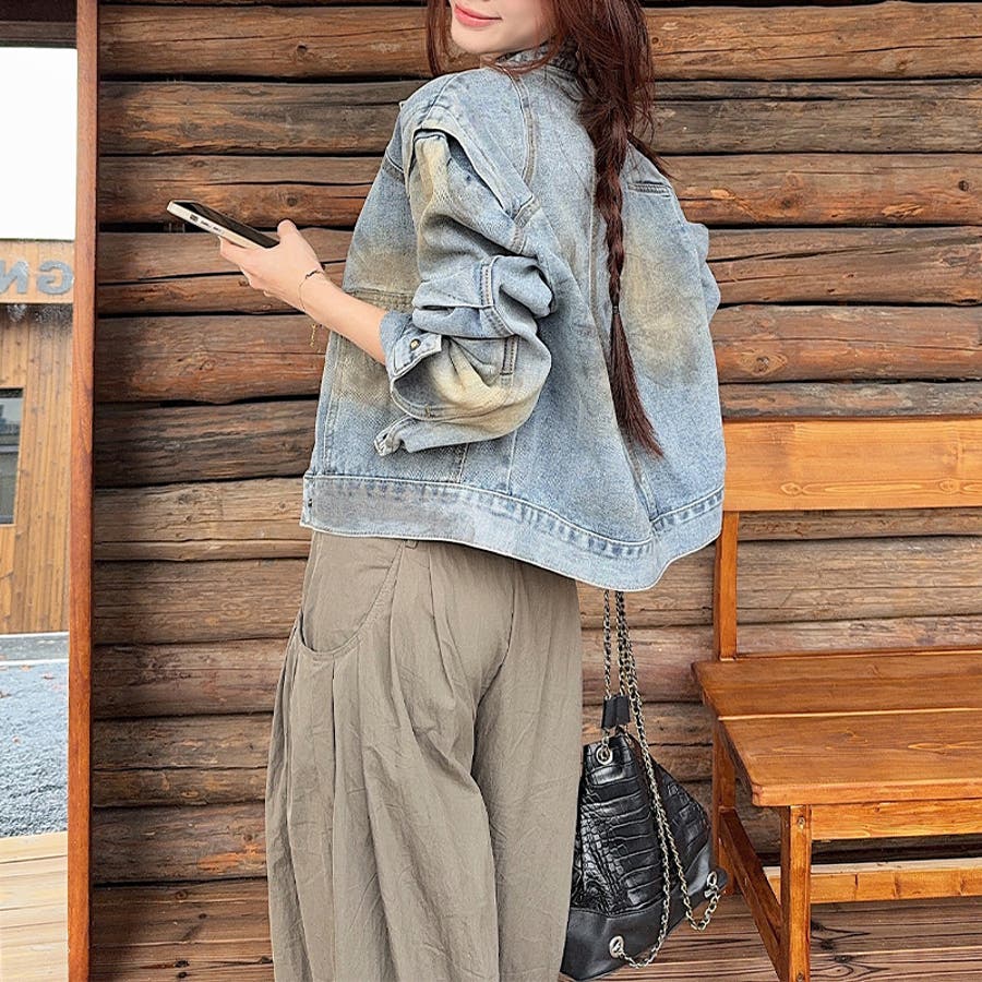 ルーズデニムジャケットヴィンテージ風 ペイント加工【春】気負わず快適
