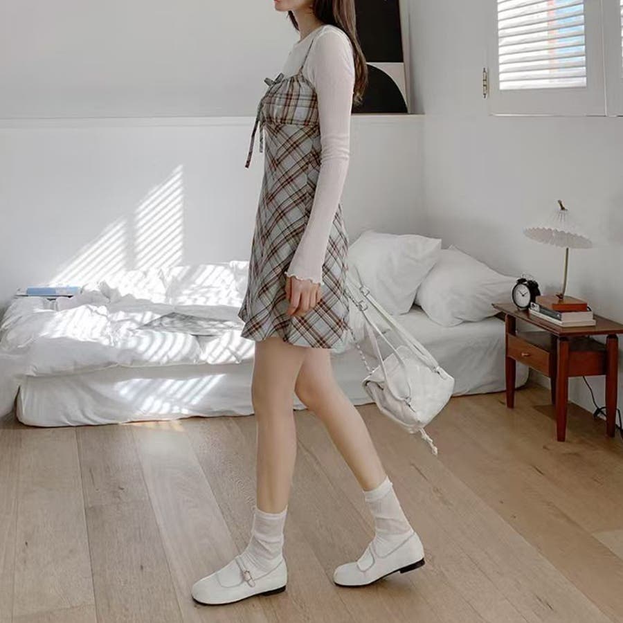 リボン付き ダイヤ柄 キャミソールワンピース