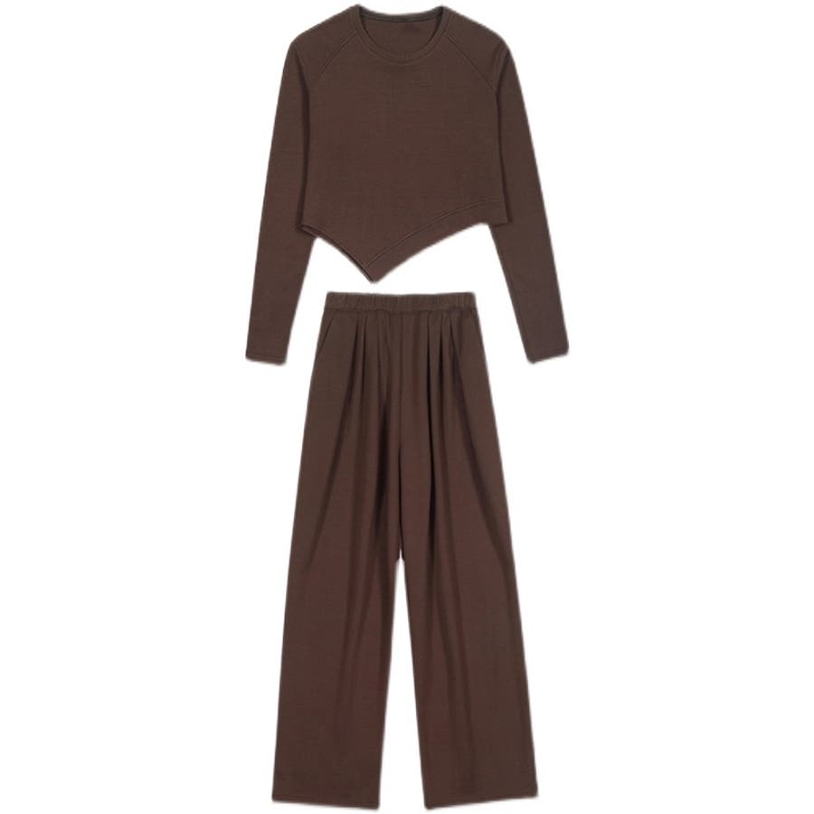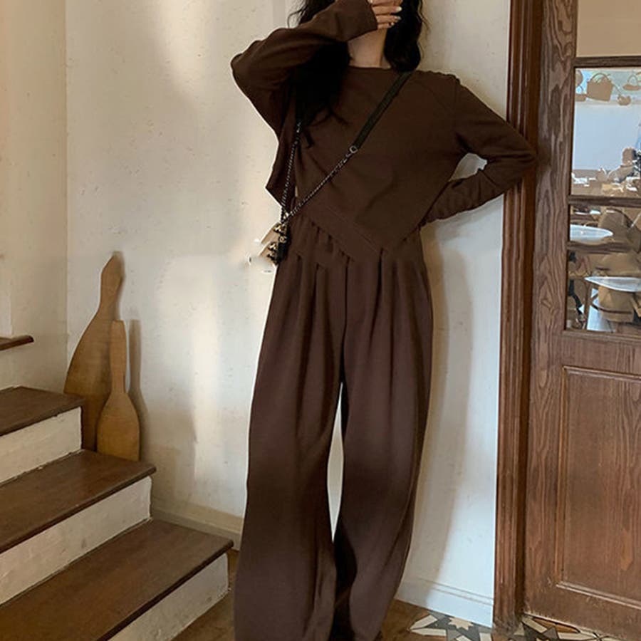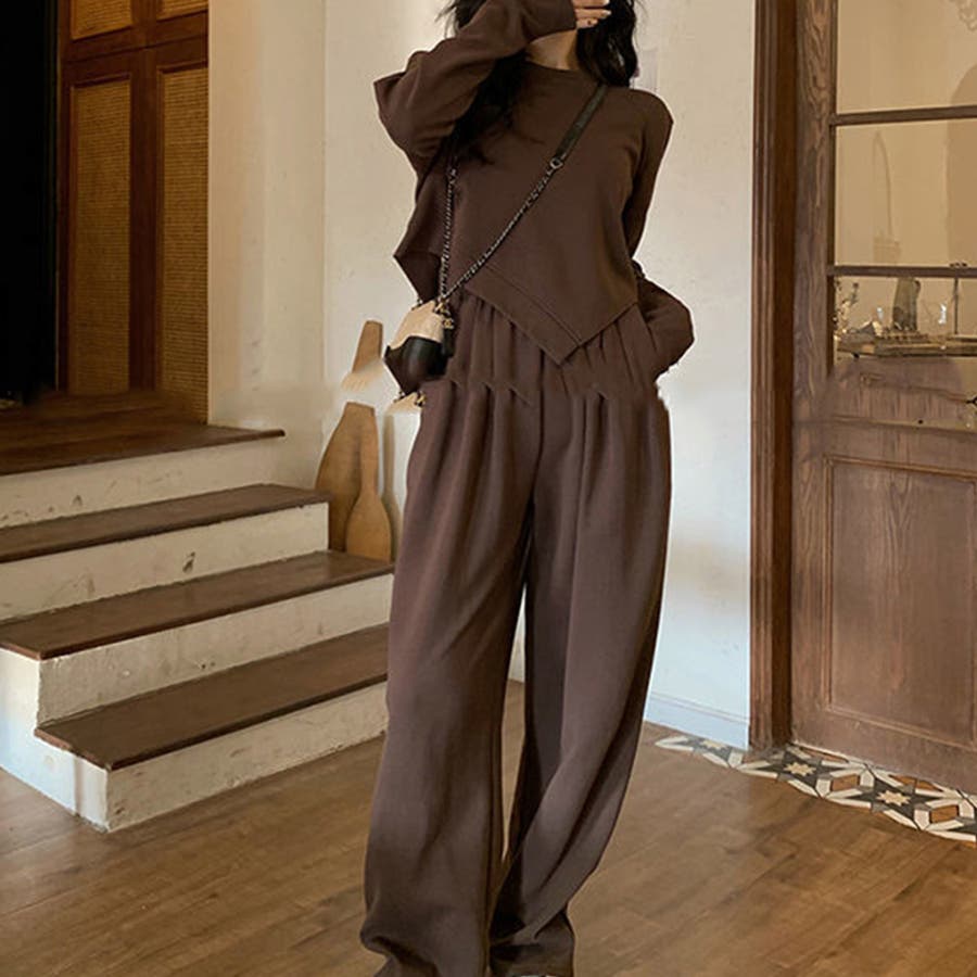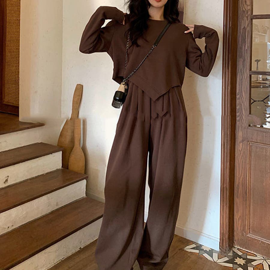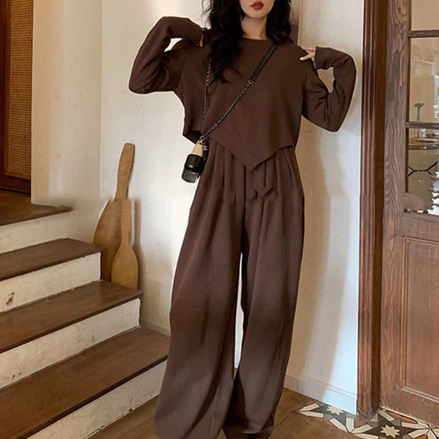 普段使いにぴったりの不規則パーカー&ロングパンツセットアップ