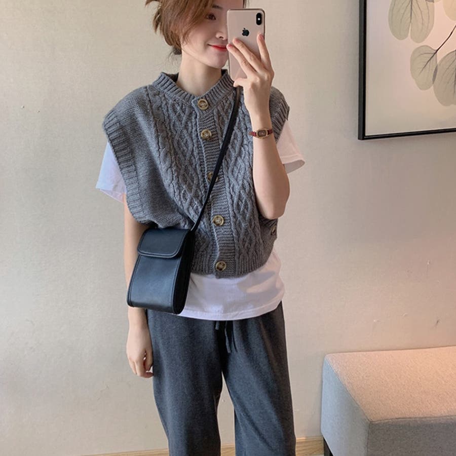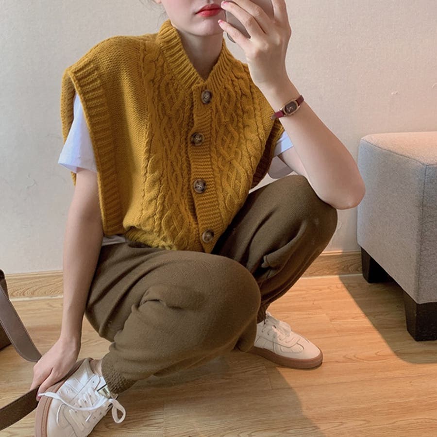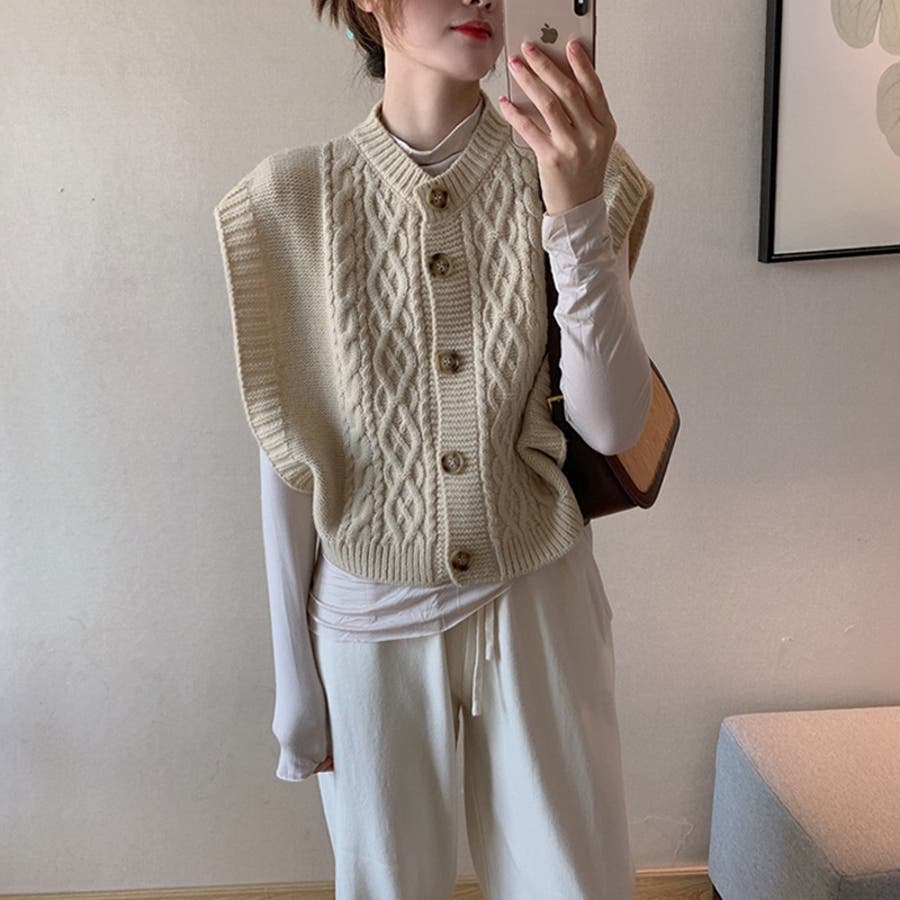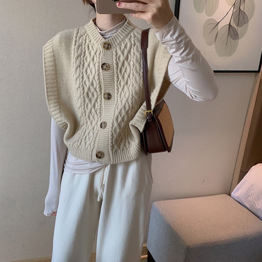 【SHOPLIST限定】使いやすいショート丈のツイスト編みニットベスト