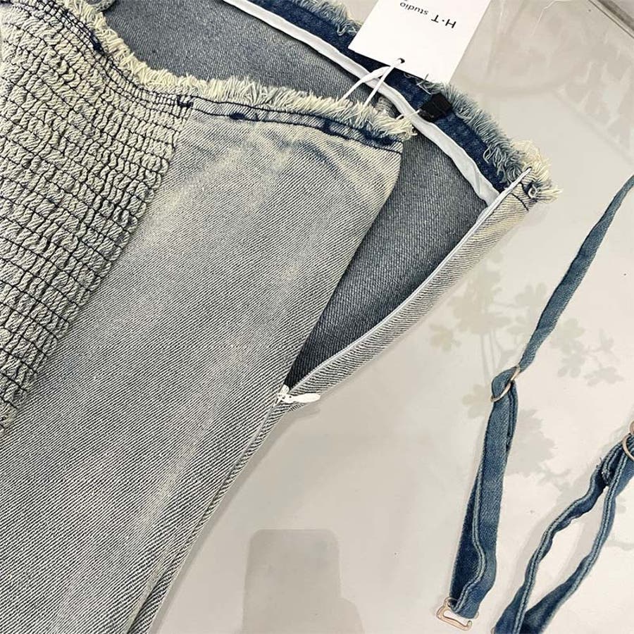【赤字覚悟!処分セール】エレガントな魅力を発揮。2wayデニムサスペンダースカー…