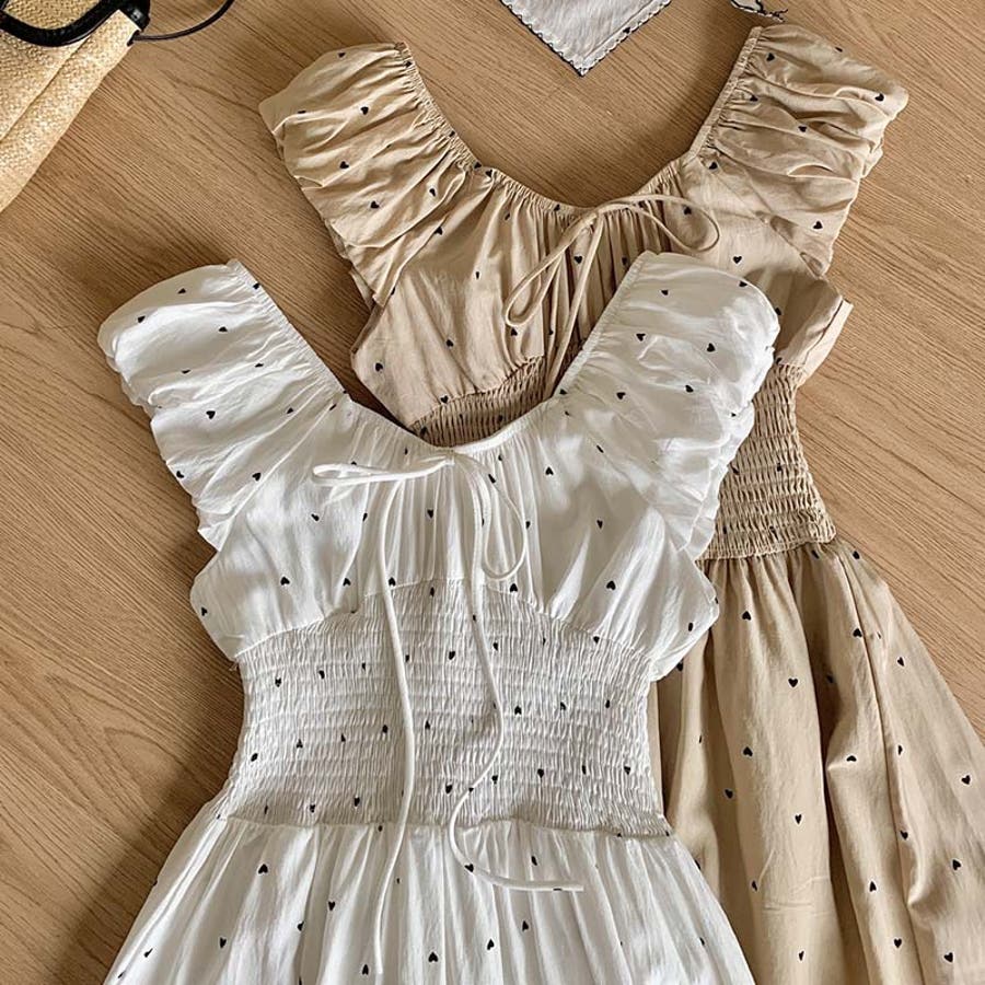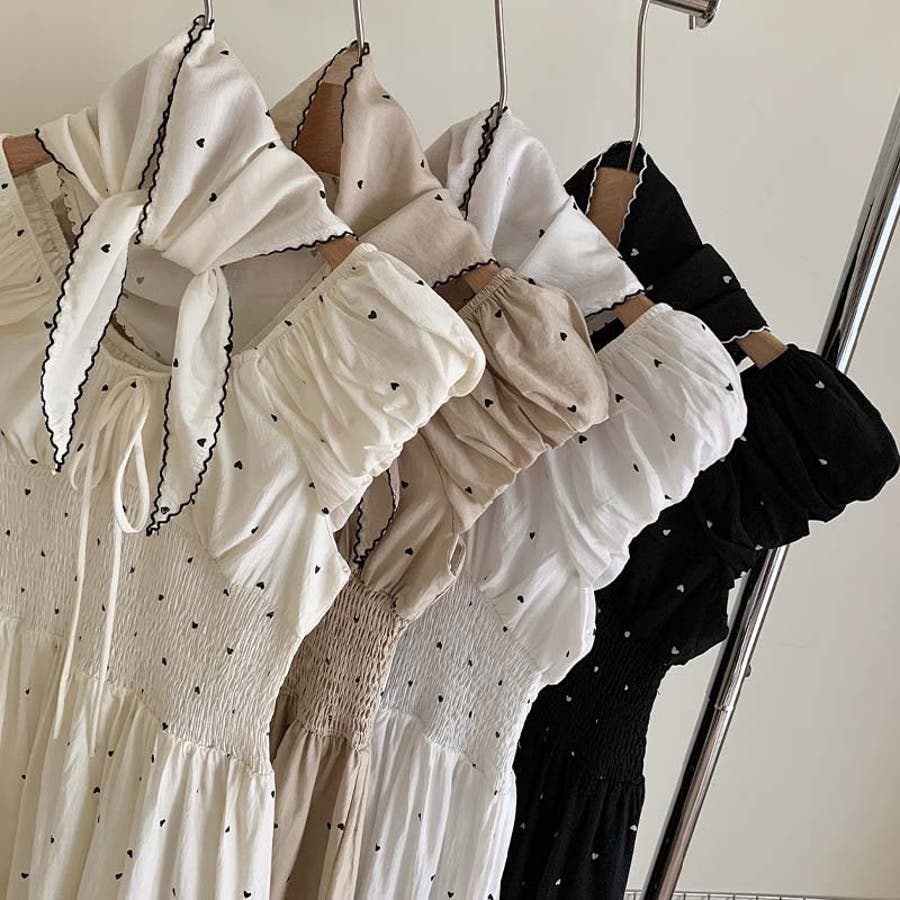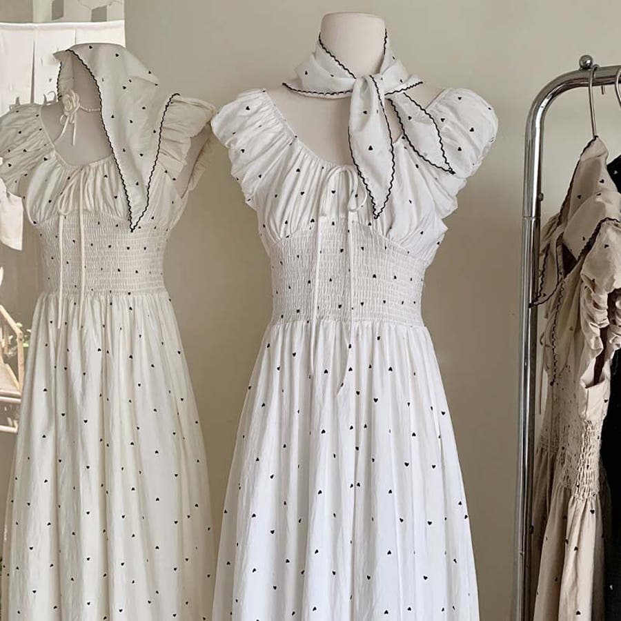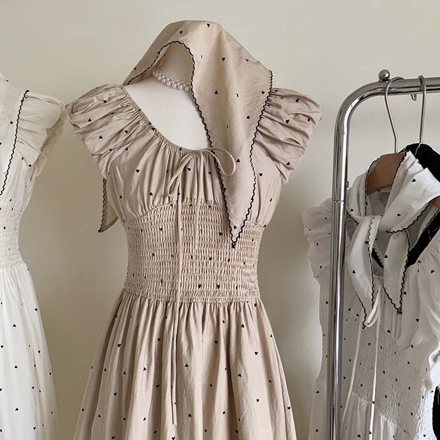 韓国風シックなハート柄とスカーフ付きでエレガント。ユニークな夏のスタイルを演出