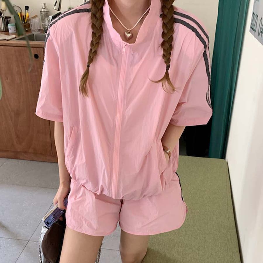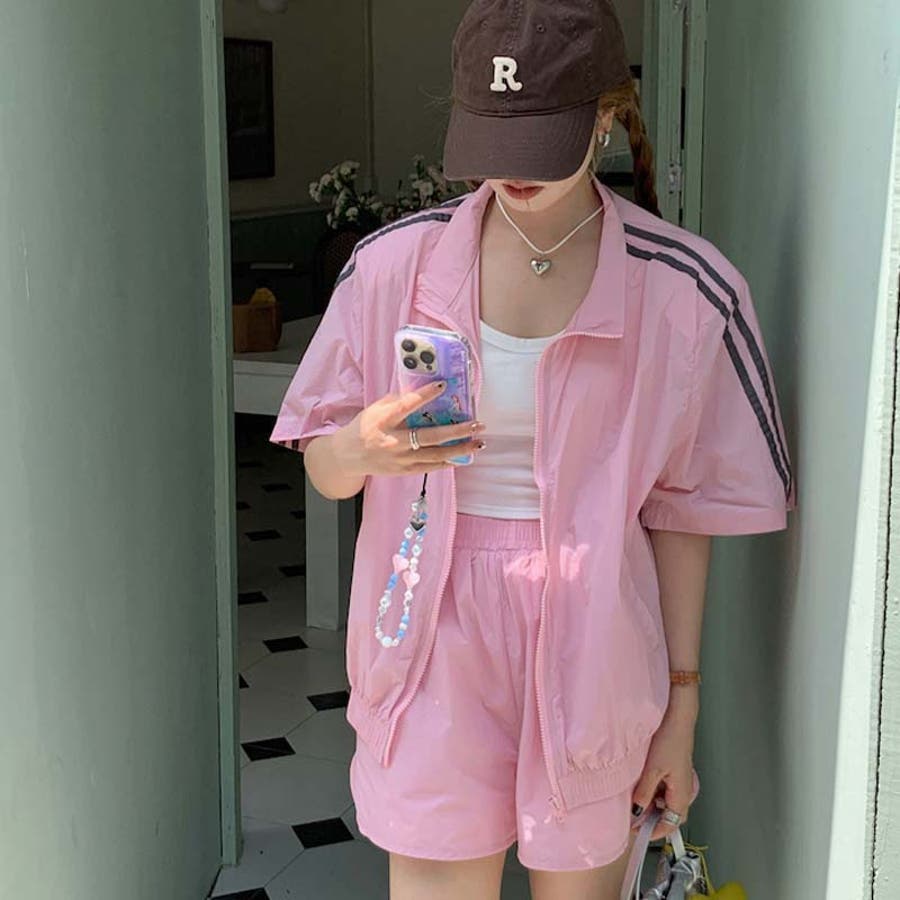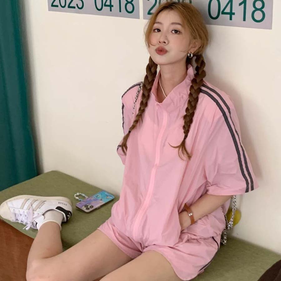 ストライプカジュアルスポーツ風セットアップは、短袖日焼け止めシャツとウエストゴムのショートパンツがセットになっています。軽量で通気性に優れ、最高の着心地を提供します。