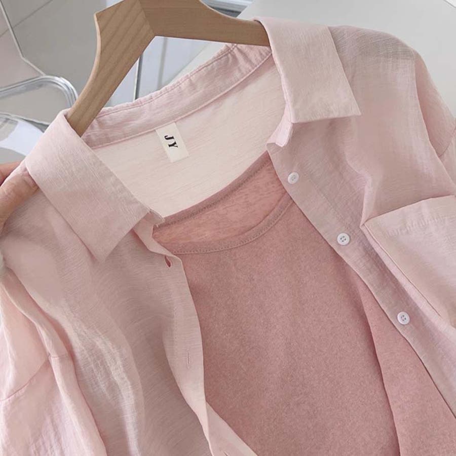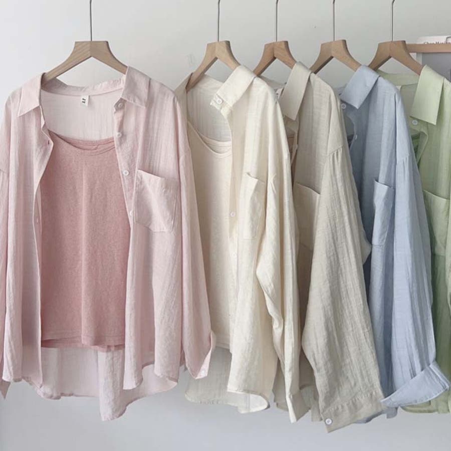 日焼け防止でおしゃれ。韓国風カラーシャツ