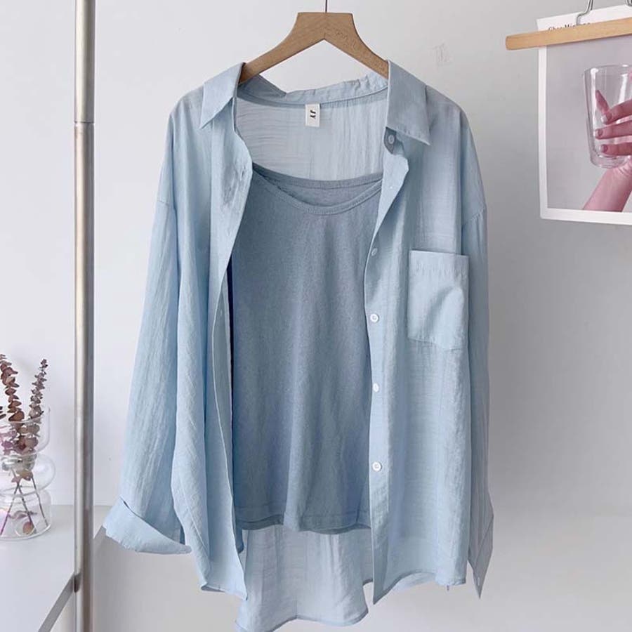 【SHOPLIST限定】日焼け防止でおしゃれ。韓国風カラーシャツ