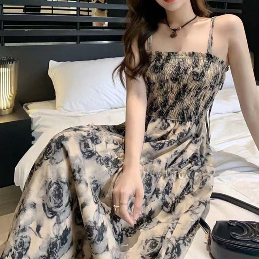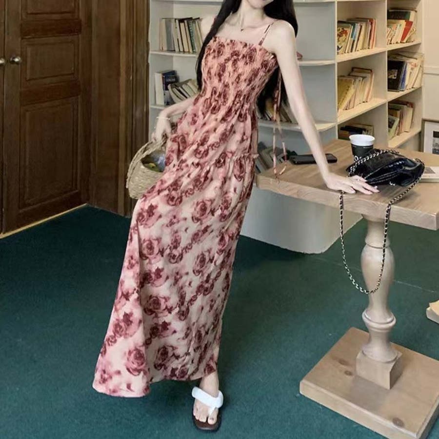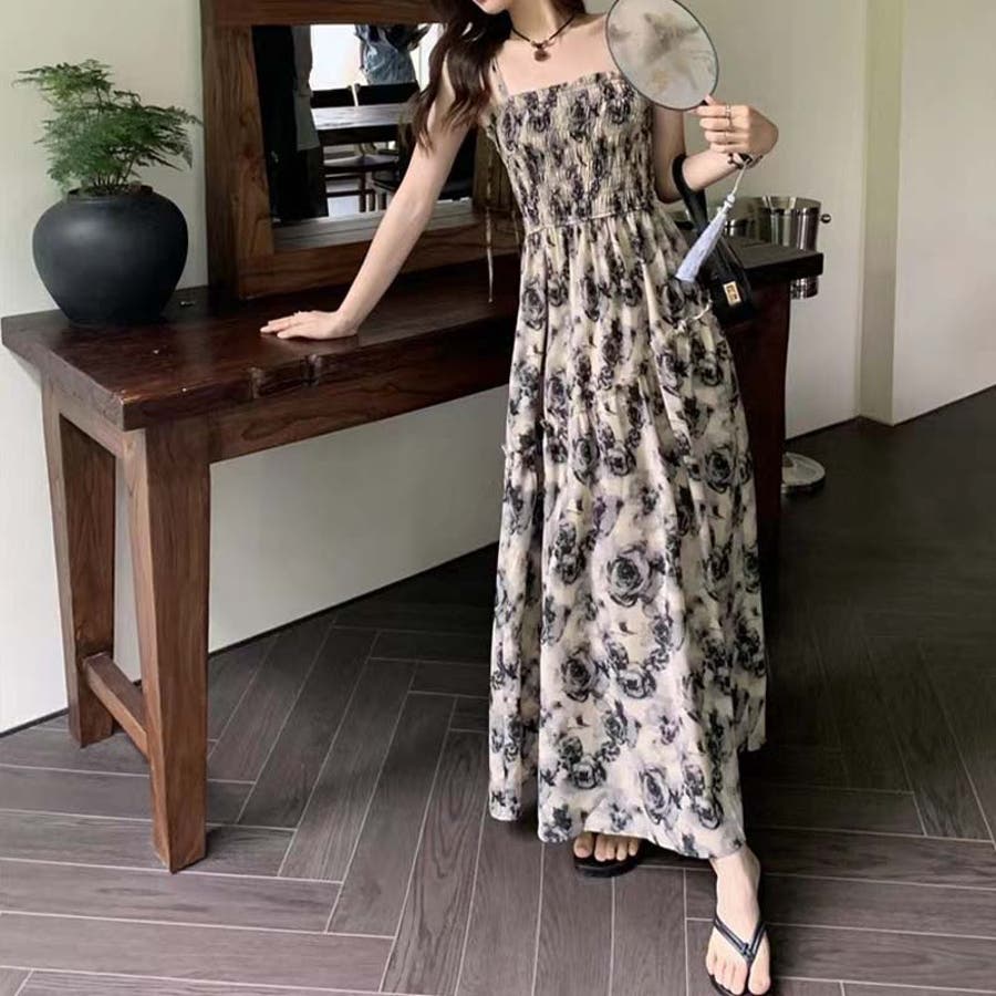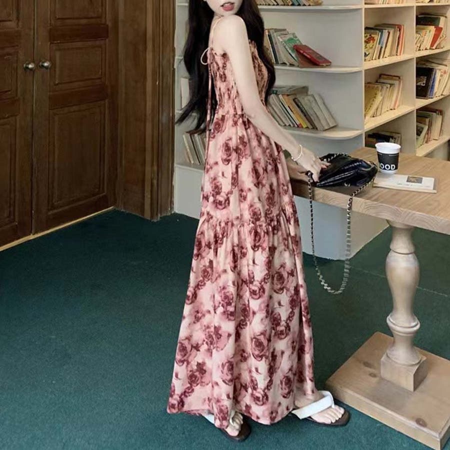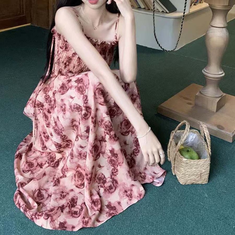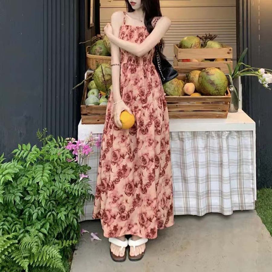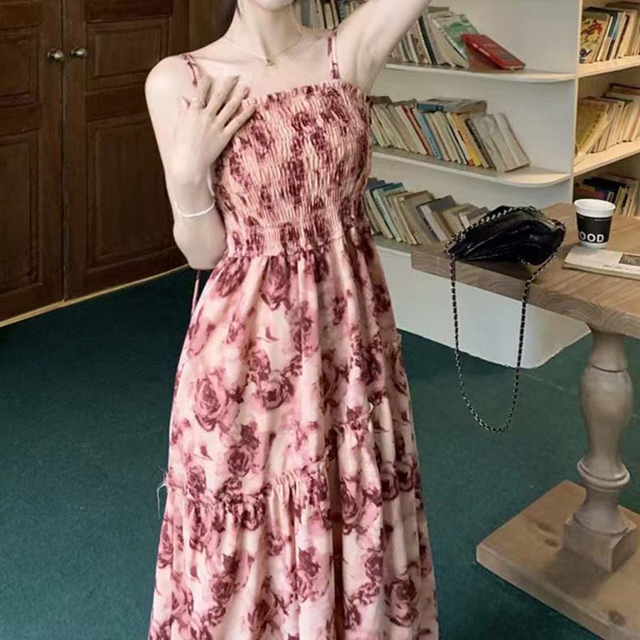 花柄がロマンチックな雰囲気を添え。フリル袖2本キャミソールワンピース
