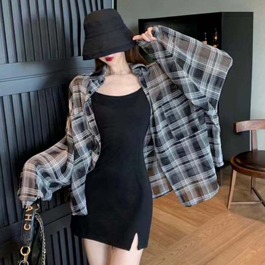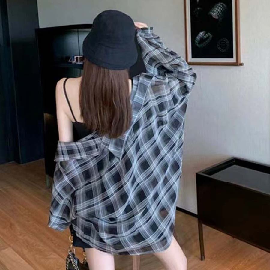 【SHOPLIST限定】日焼け対策に最適!ゆったりしたチェック柄長袖シャツ