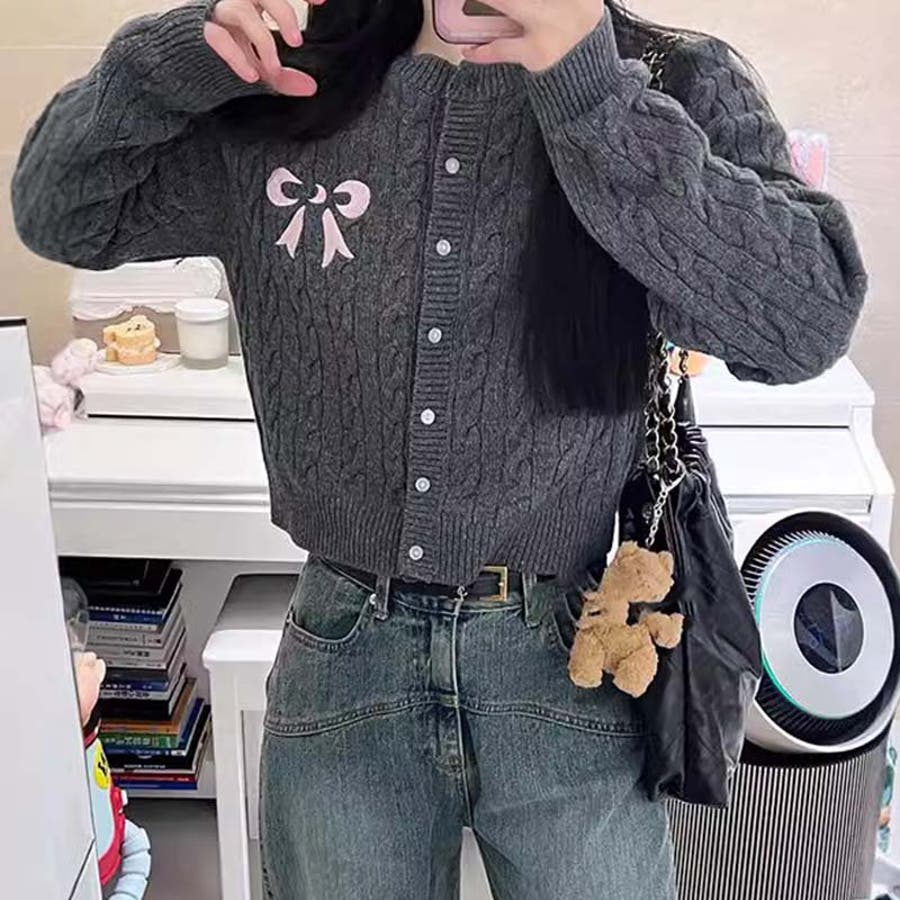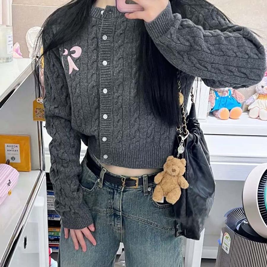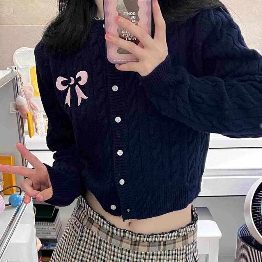 【SHOPLIST限定】スウィートな学院風。ラウンドネックリボンカーディガン