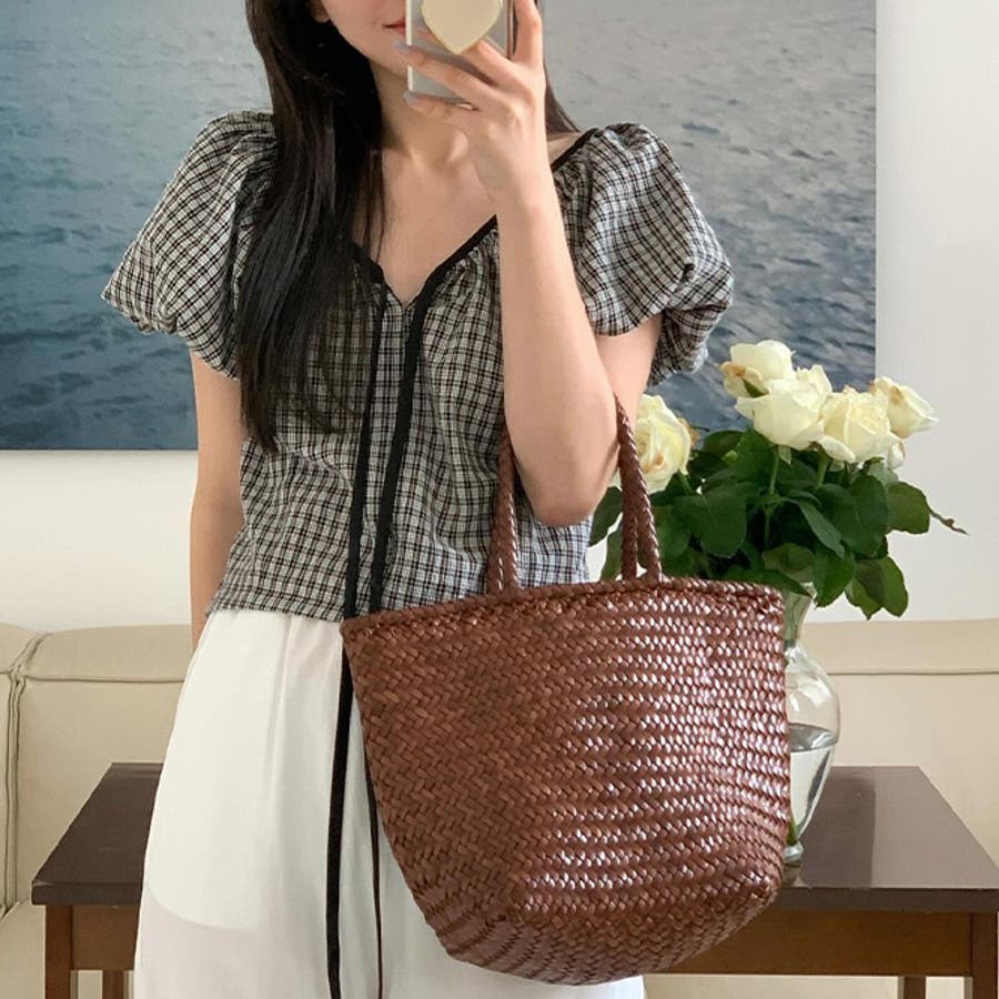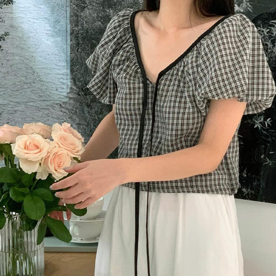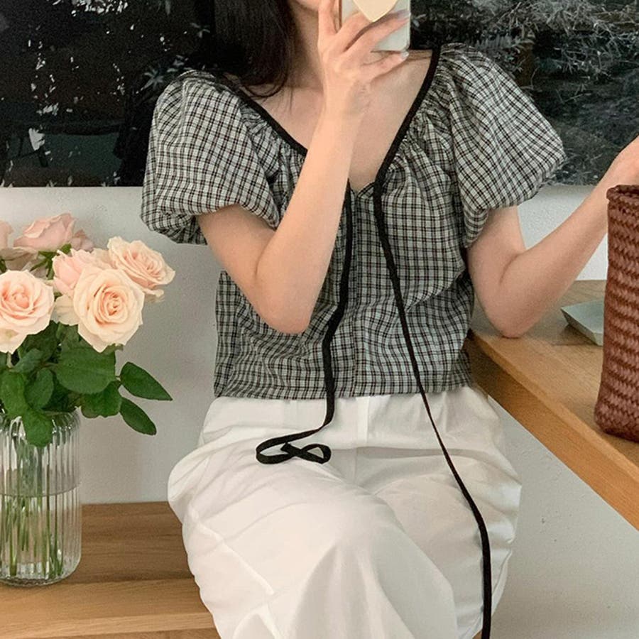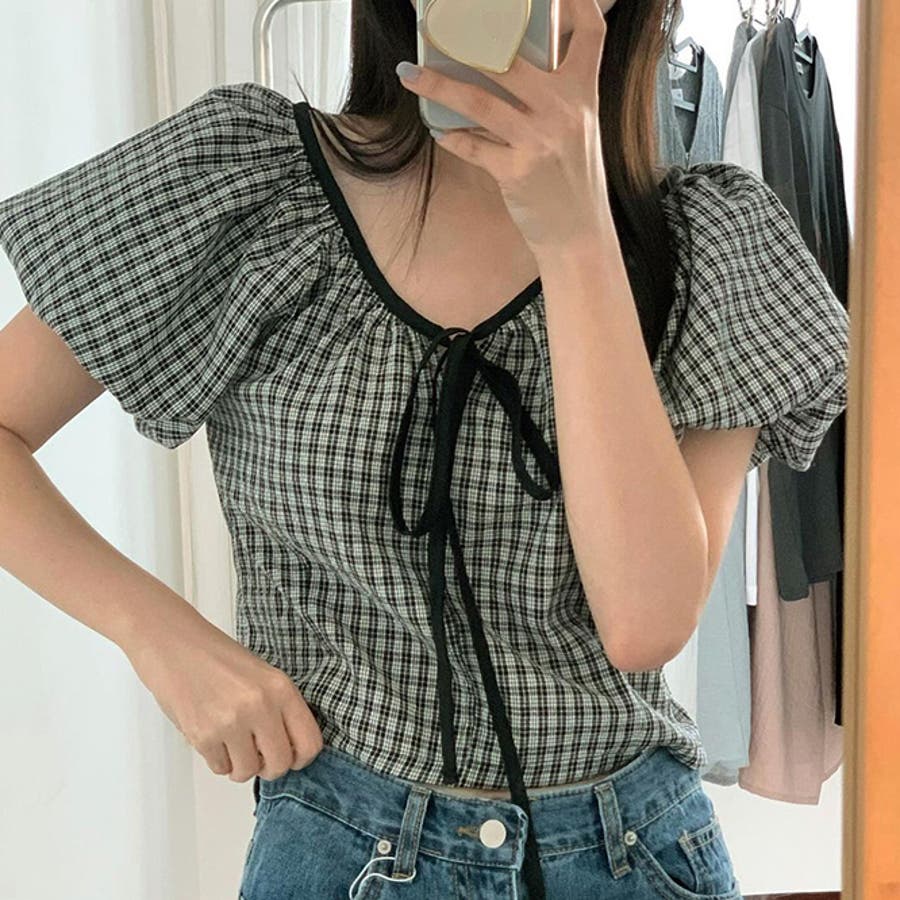ミレニアル学園風 ゆるカワコーデ☆チェック Vネック リボンタイ シャツ