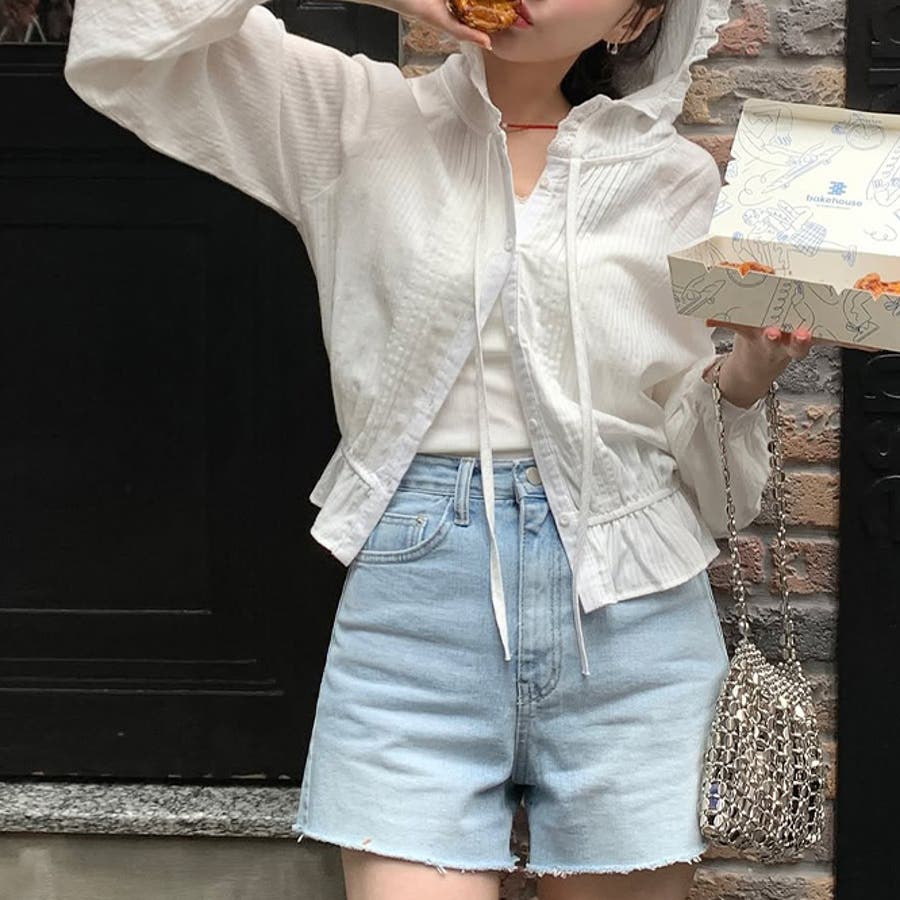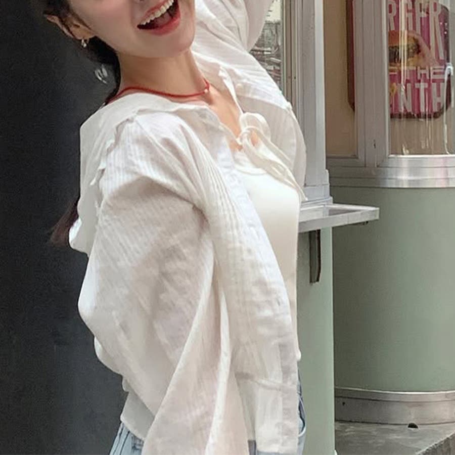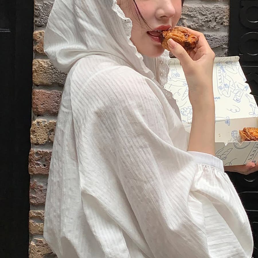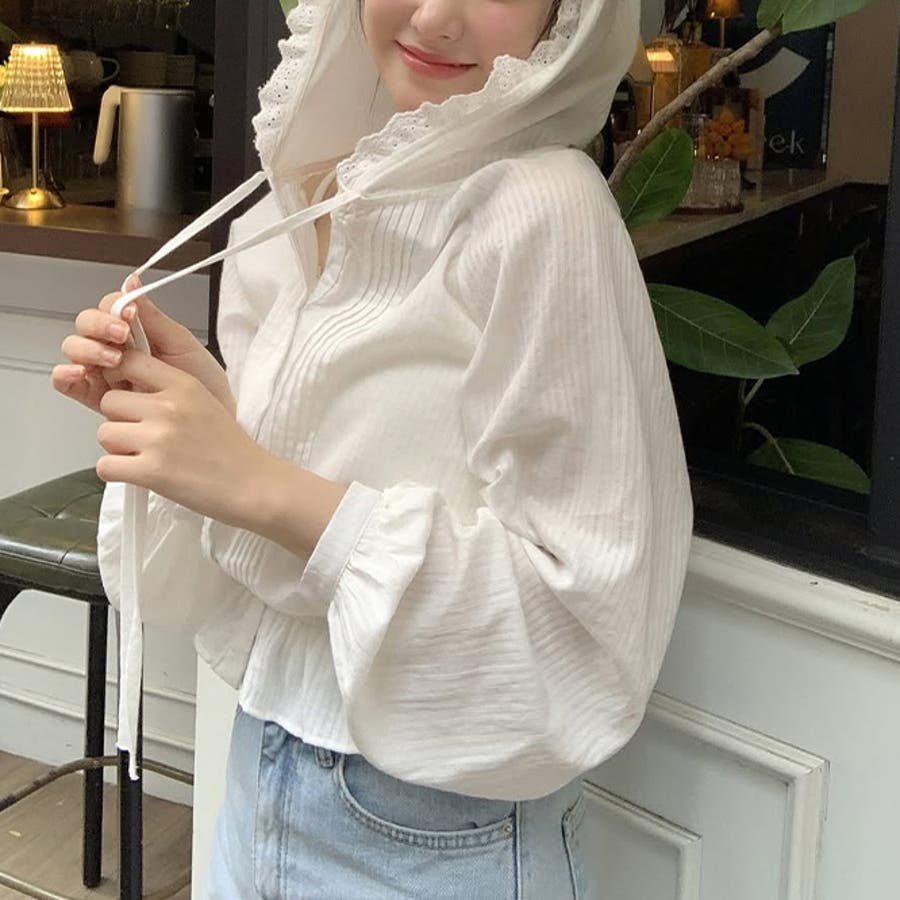 ミレニアル学園風 ゆるカワコーデ☆ピコット フード付き ジャカード サンシャツ