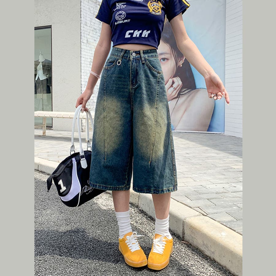 ミレニアル学園風 ゆるカワコーデ ビンテージ感ディストレス加工