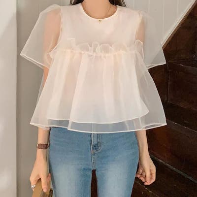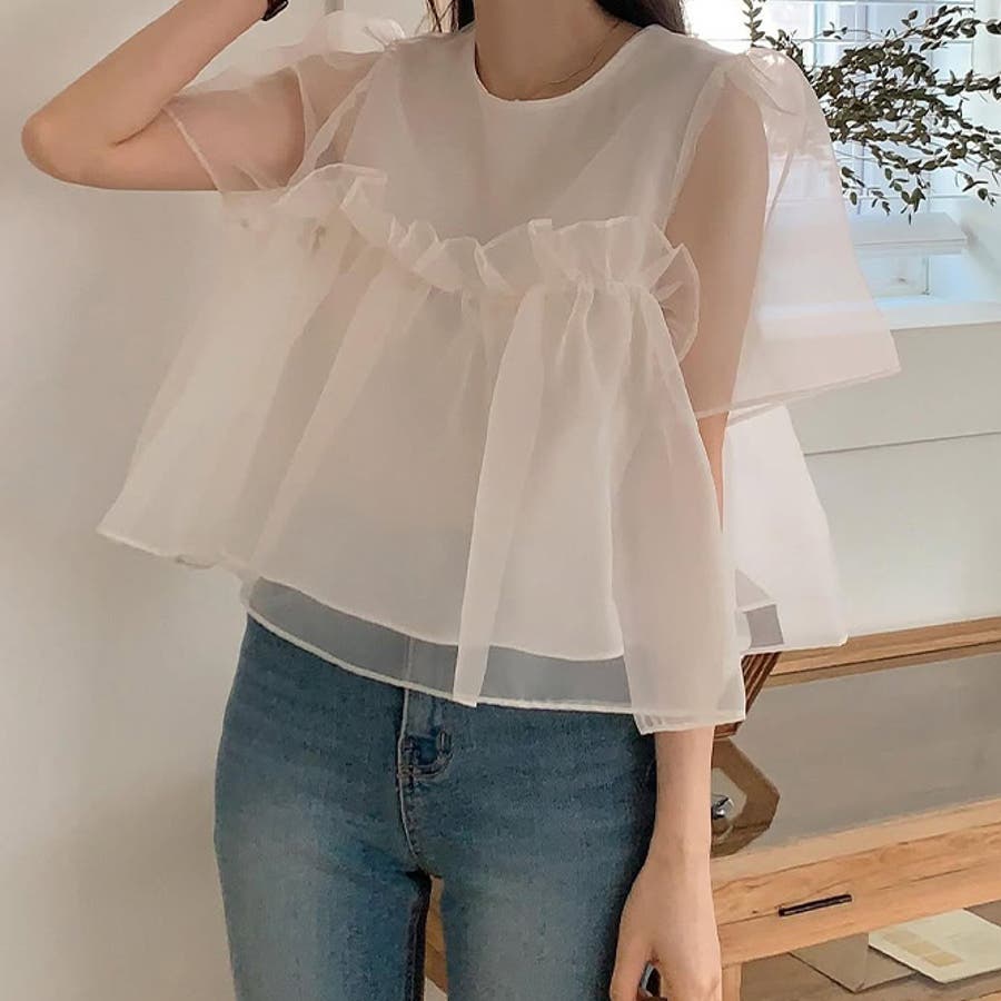 ミレニアル学園風 ゆるカワコーデ☆ふんわりチュール シルエット半袖Tシャツ