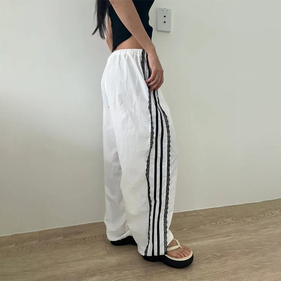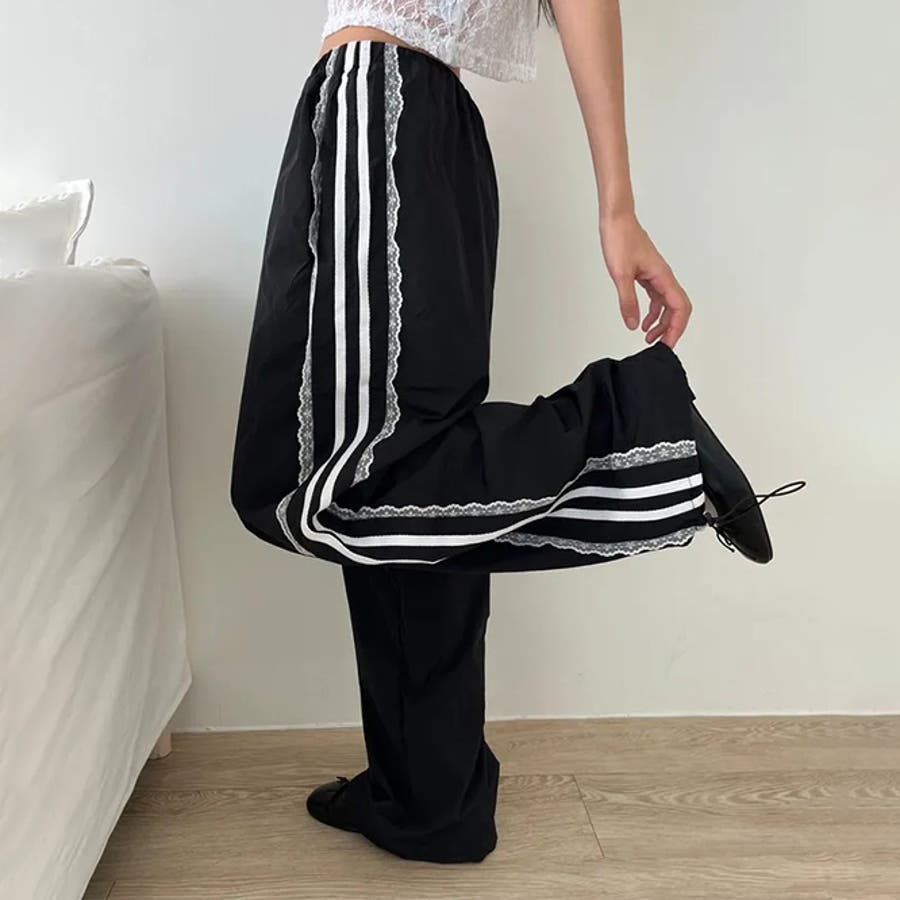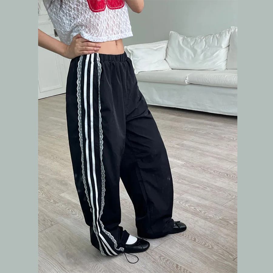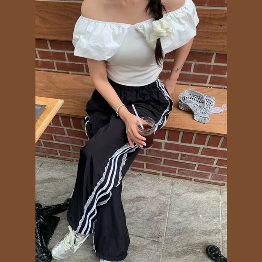 ミレニアル学園風 ゆるカワコーデ インスタ映えサイドレース&テープデコールナイロ…