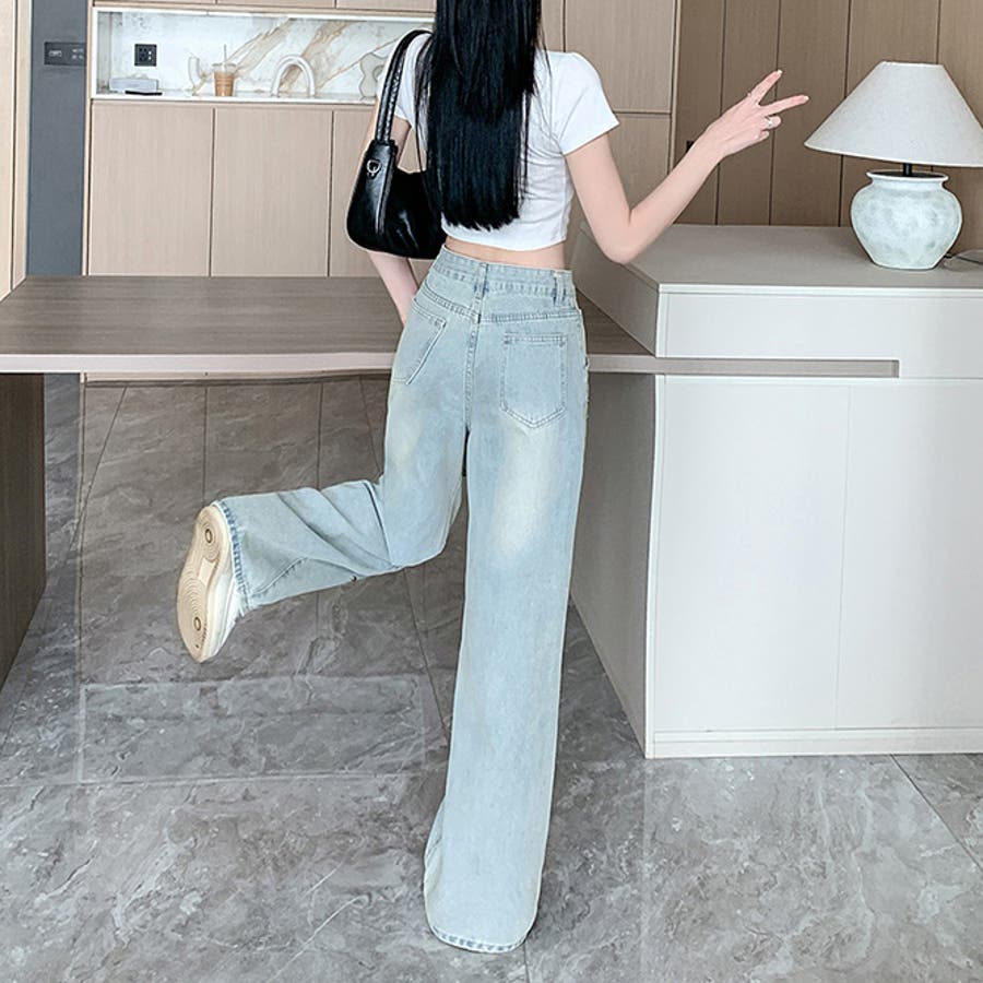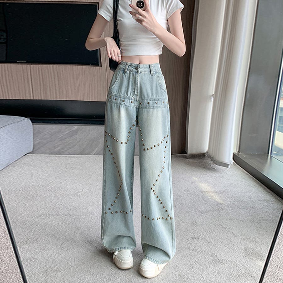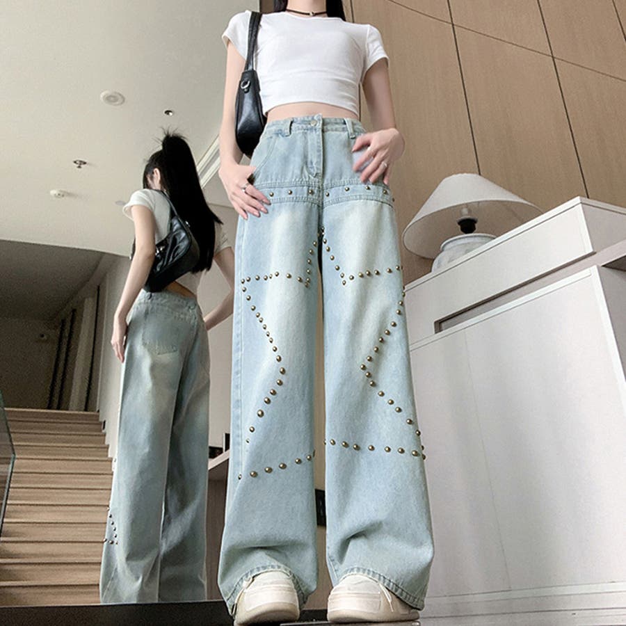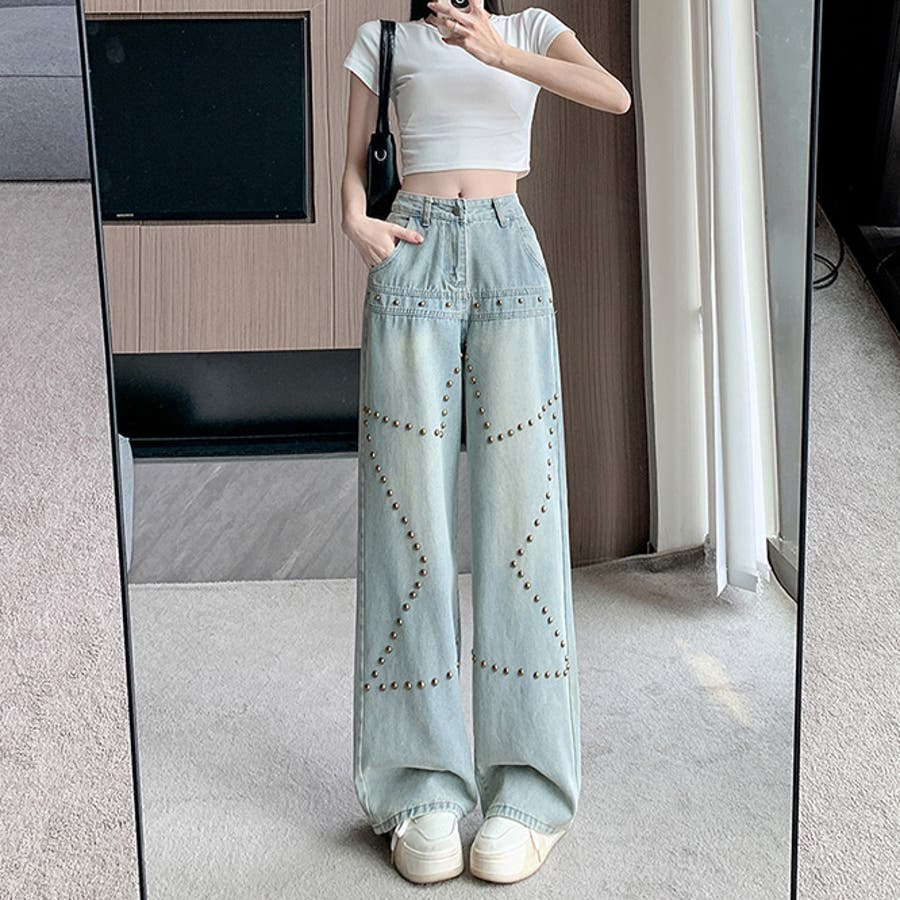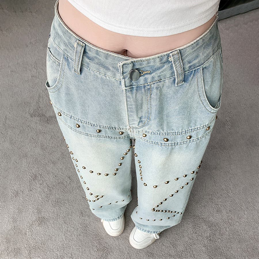 ミレニアル学園風 ゆるカワコーデ☆スタースタッド ストレートデニムパンツ