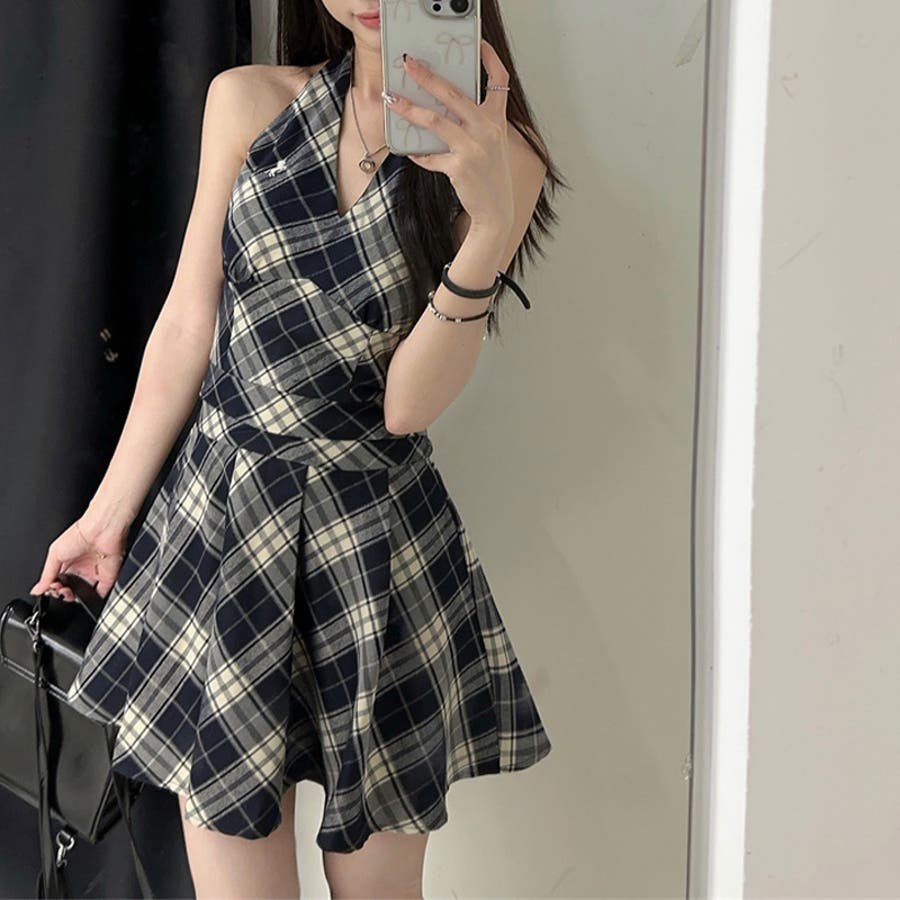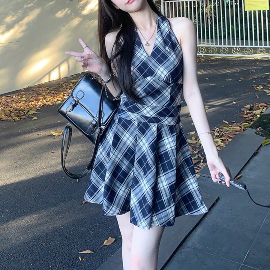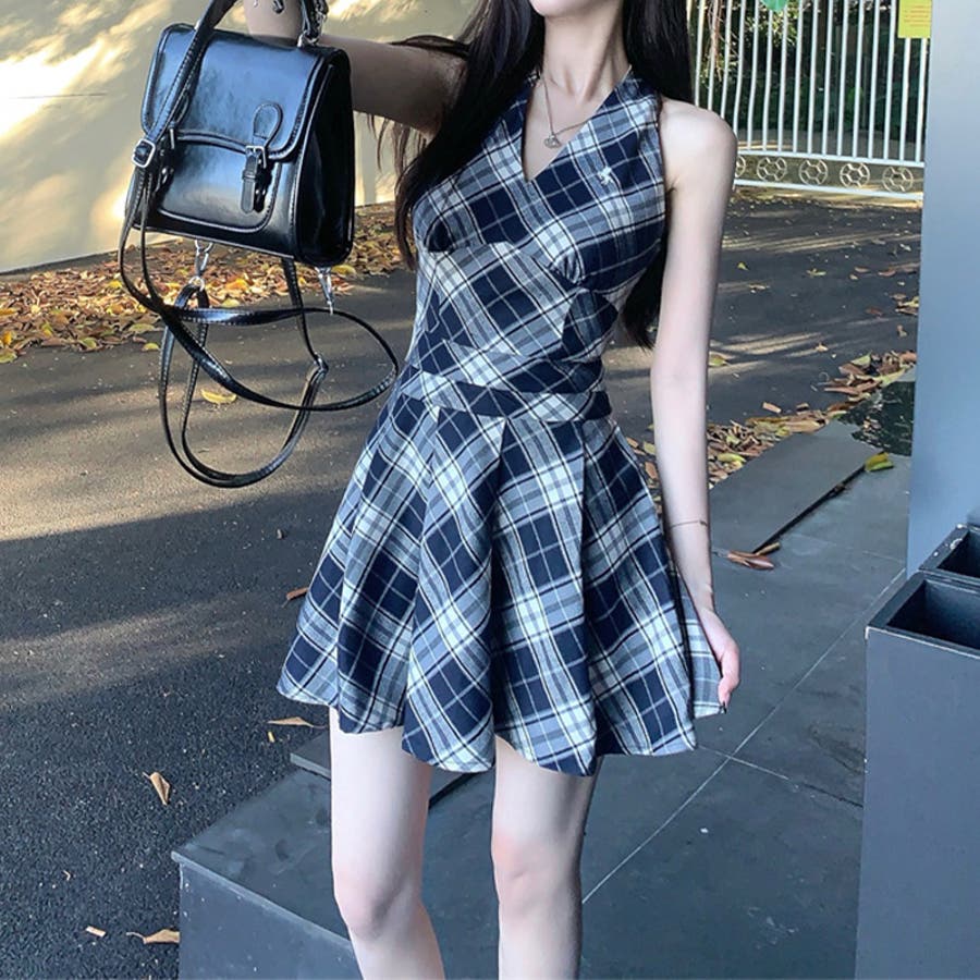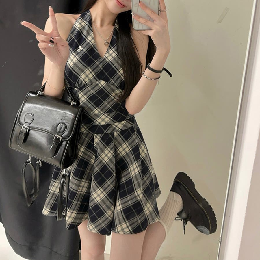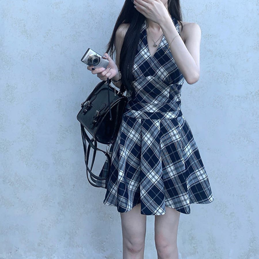 ミレニアル学園風 ゆるカワコーデ☆ビンテージ感ウエストシェイプギンガムワンピ