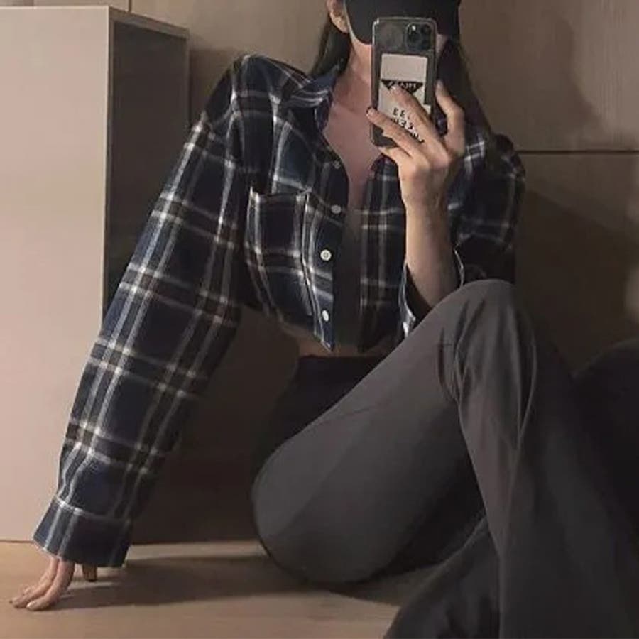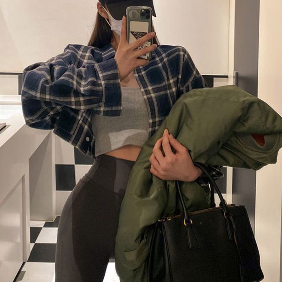 ミレニアル学園風 ゆるカワコーデ ビンテージ感薄手チェック