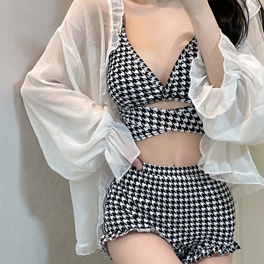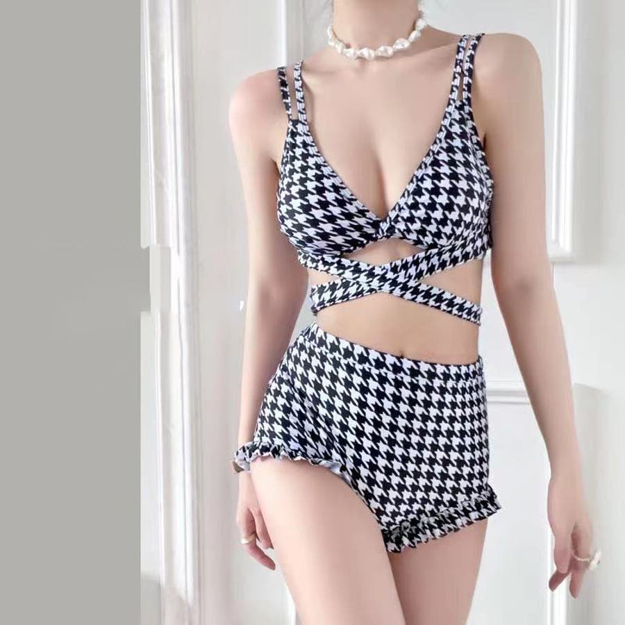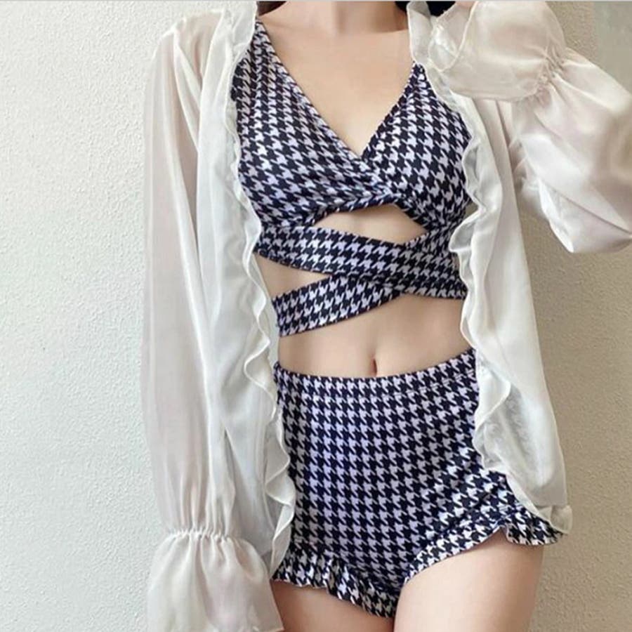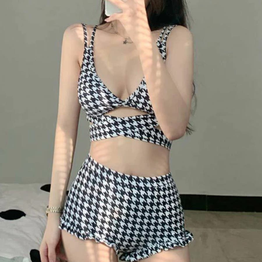 ゆるカワコーデ セクシー千鳥格柄スイムウェア ハイウエスト