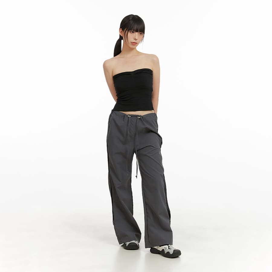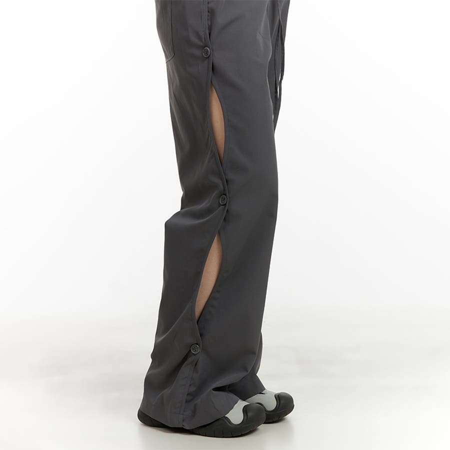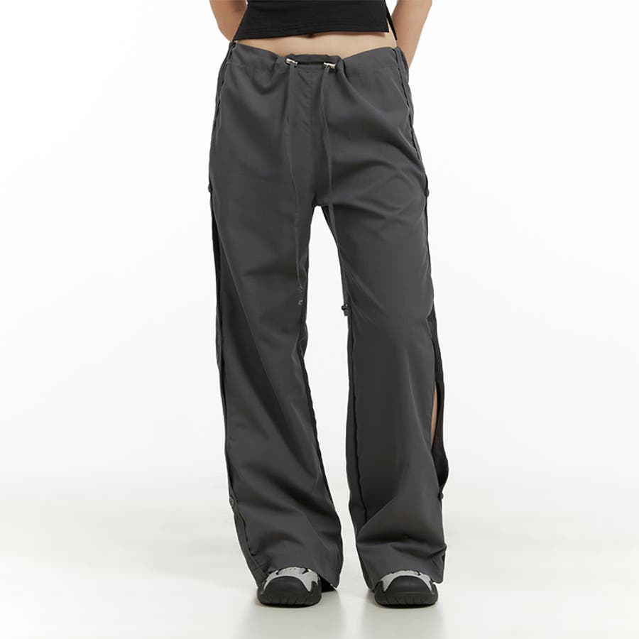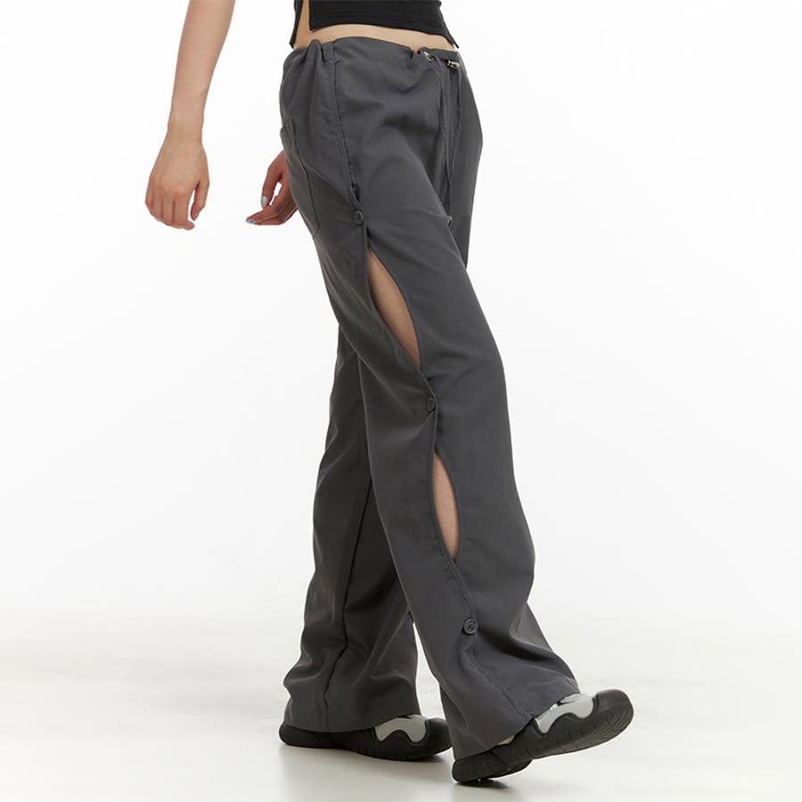 ゆるカワコーデ ユニセックス サイドくり抜きボタン付きドローストリングパンツ